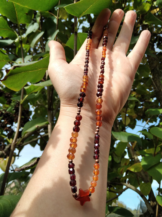 Collier court en grenat almandin, grenat hessonite et cornaline "Chaleur"