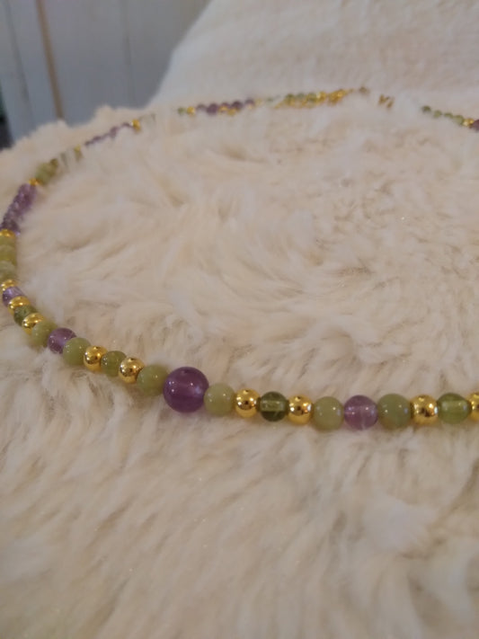 Collier en grenat hessonite et grenat vert "Bruissement"