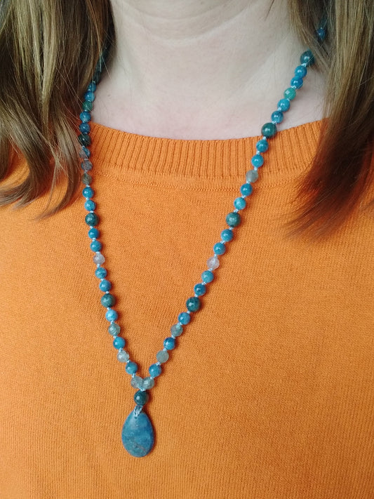 Collier en apatite bleue et pierre de soleil "Réconfort"