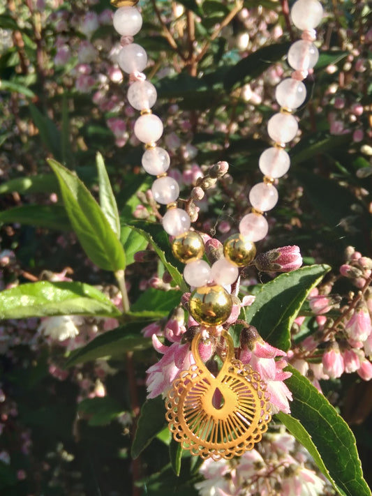 Collier en quartz rose, agate fleur de cerisier et pierre de soleil "Tendresse"