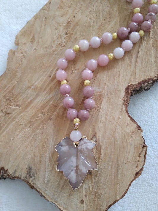 Mala "Je me choisis" en opale rose, rhodonite et fleur de cerisier