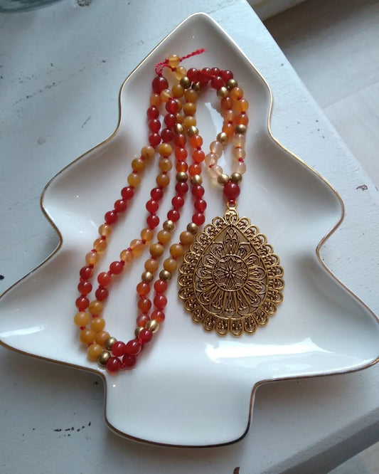 Mala "Prêtresse" en cornaline et aventurine jaune
