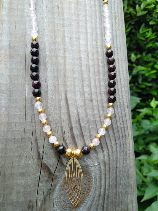 Mala en quartz rose, quartz fraise, kunzite "Amour"