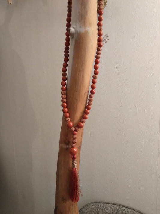 Mala en jaspe rouge et graines de rudraksha "Ancrage"