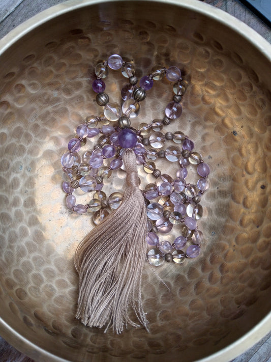 Mala en amétrine, quartz citron et améthyste "Inspiration"