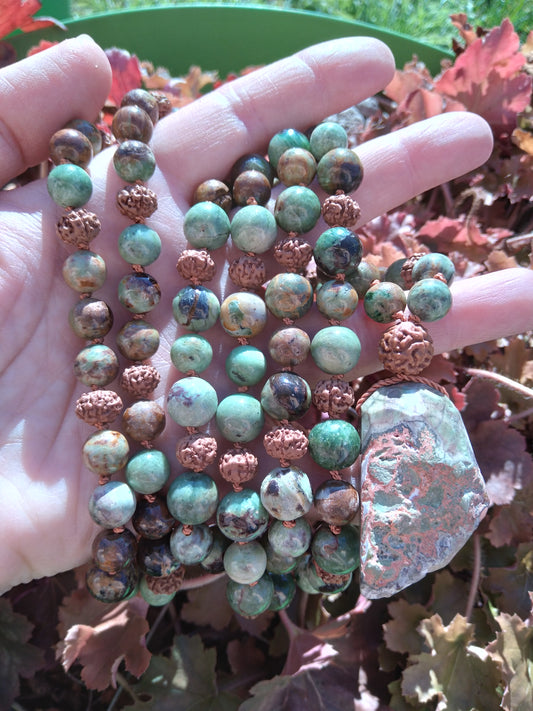 Mala en quartz rutile et jaspe bourdon "Nouveau départ"