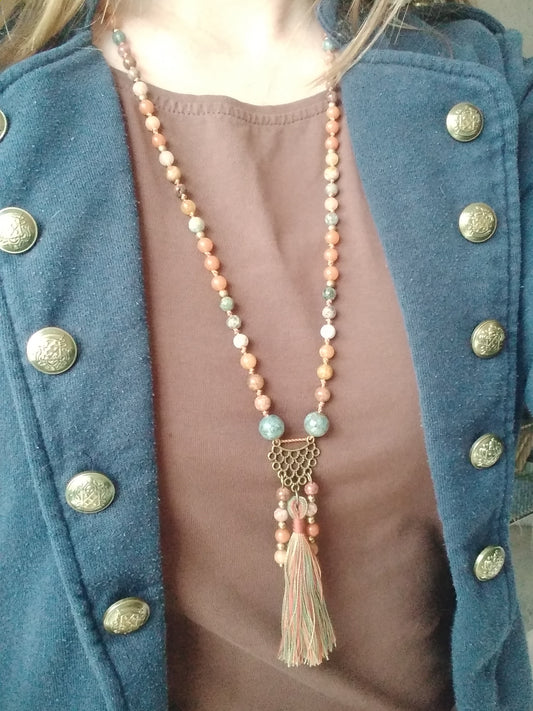 Mala en jaspe océan et aventurine orange "Carpe diem"