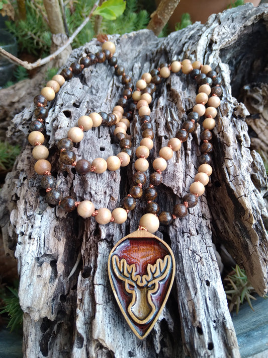 Mala en jaspe paysage et bois de santal "Ancrage"