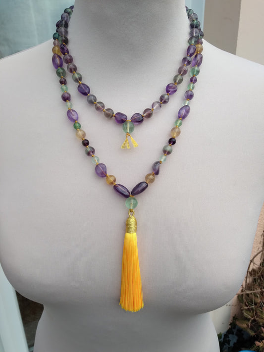 Mala en fluorite et améthyste "Rainbow"