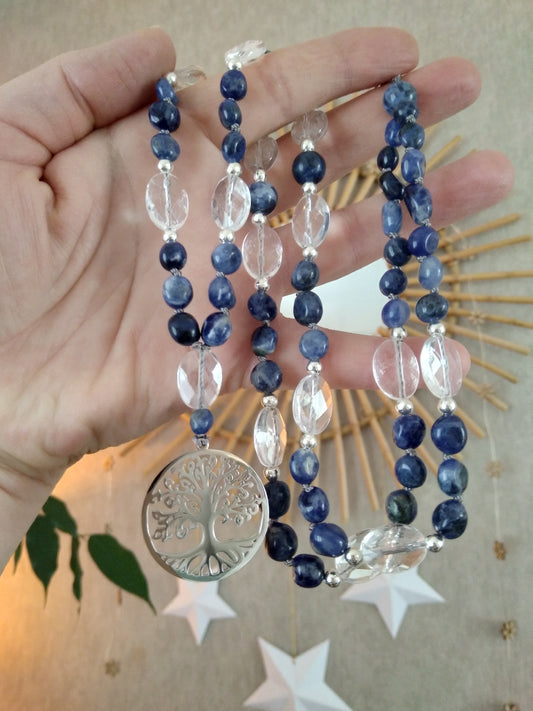 Mala arbre de vie en dumortiérite et cristal de roche "De la terre au ciel"
