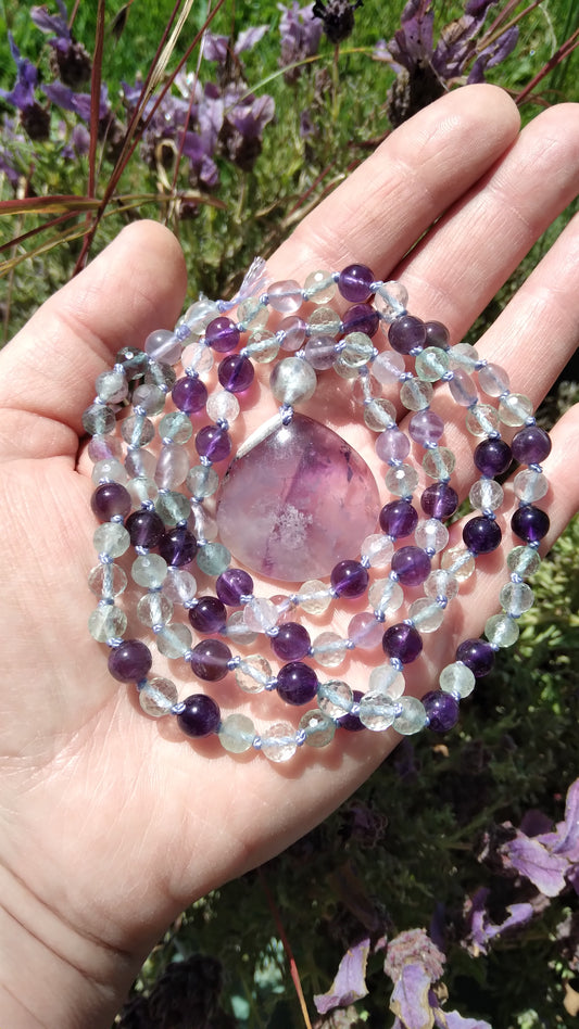 Mala en fluorite et améthyste "Clarté et équilibre"