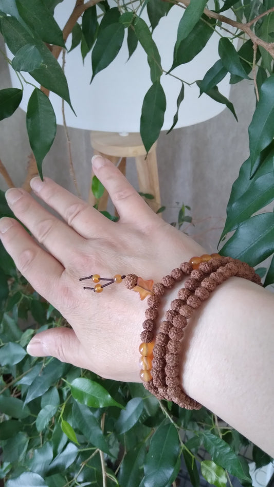 Bracelet mala en cornaline et graines de rudraksha "Vitalité"