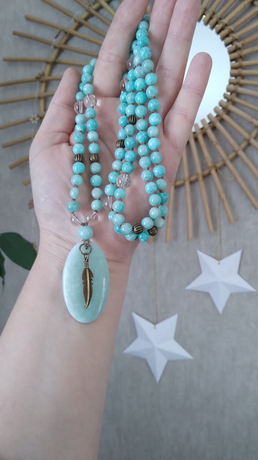 Mala en amazonite et cristal de roche "Alignement"