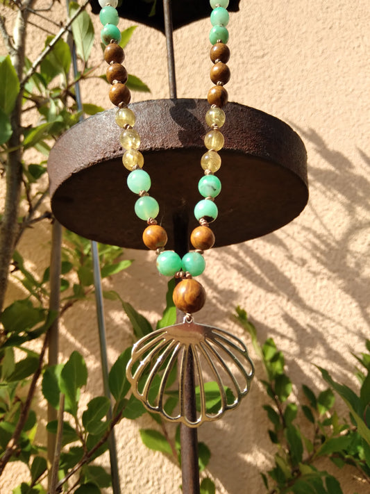 Mala en chrysoprase, apatite jaune et jaspe peau d'éléphant "Évasion"