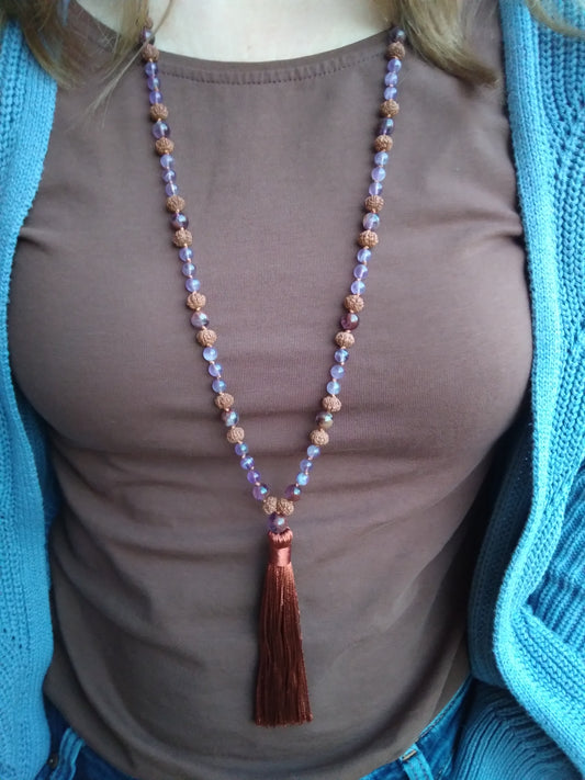 Mala en améthyste et graines de rudraksha "Spiritualité"