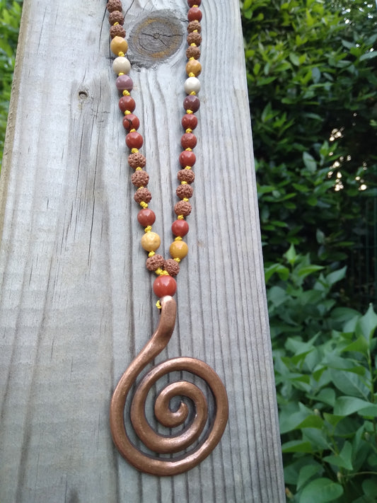 Mala en jaspe rouge, mokaite et graines de rudraksha "Origines"