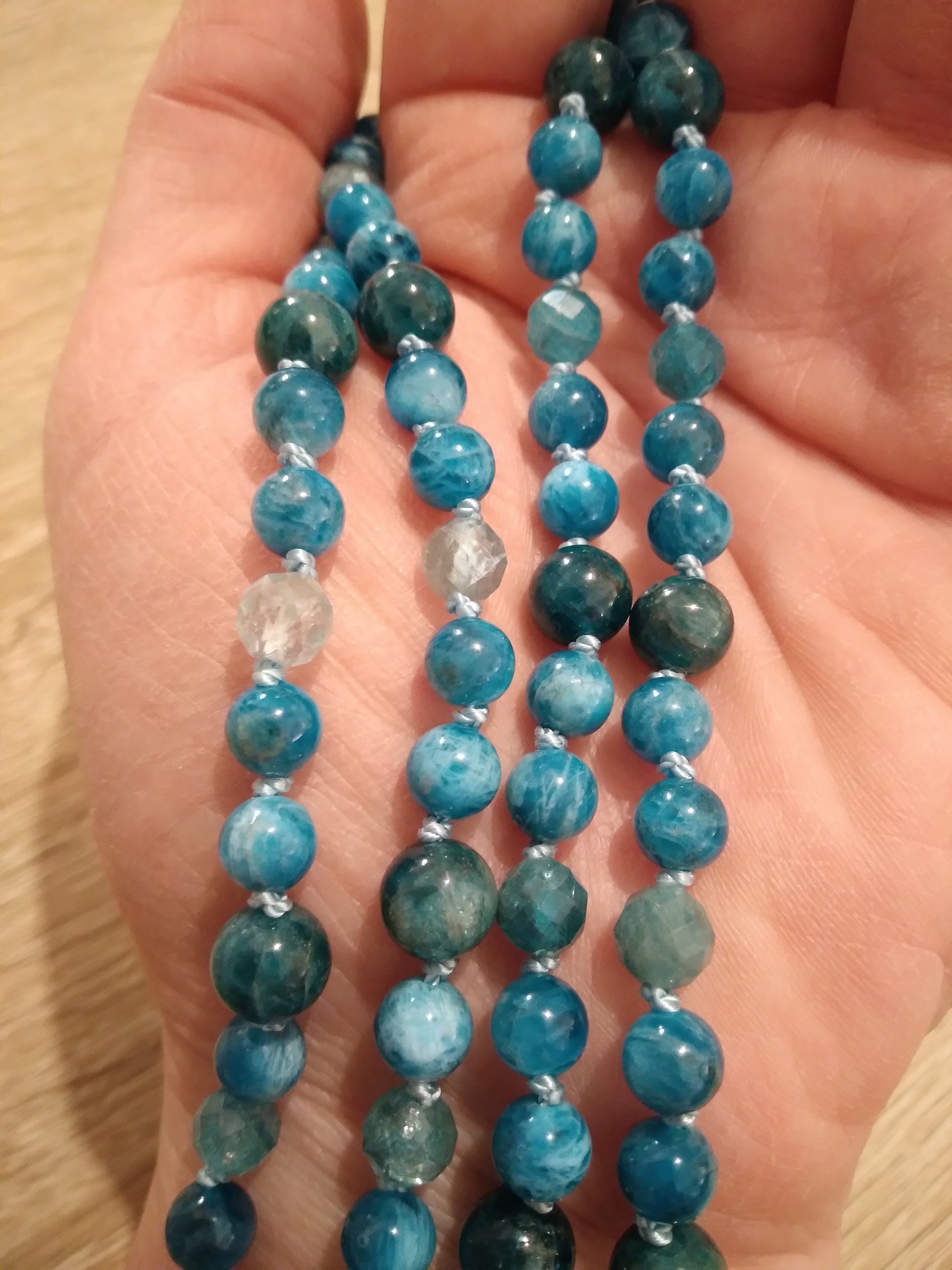 Perles rondes lisses et rondes facettées de 6 mm + perles de 8 mm en apatite bleue