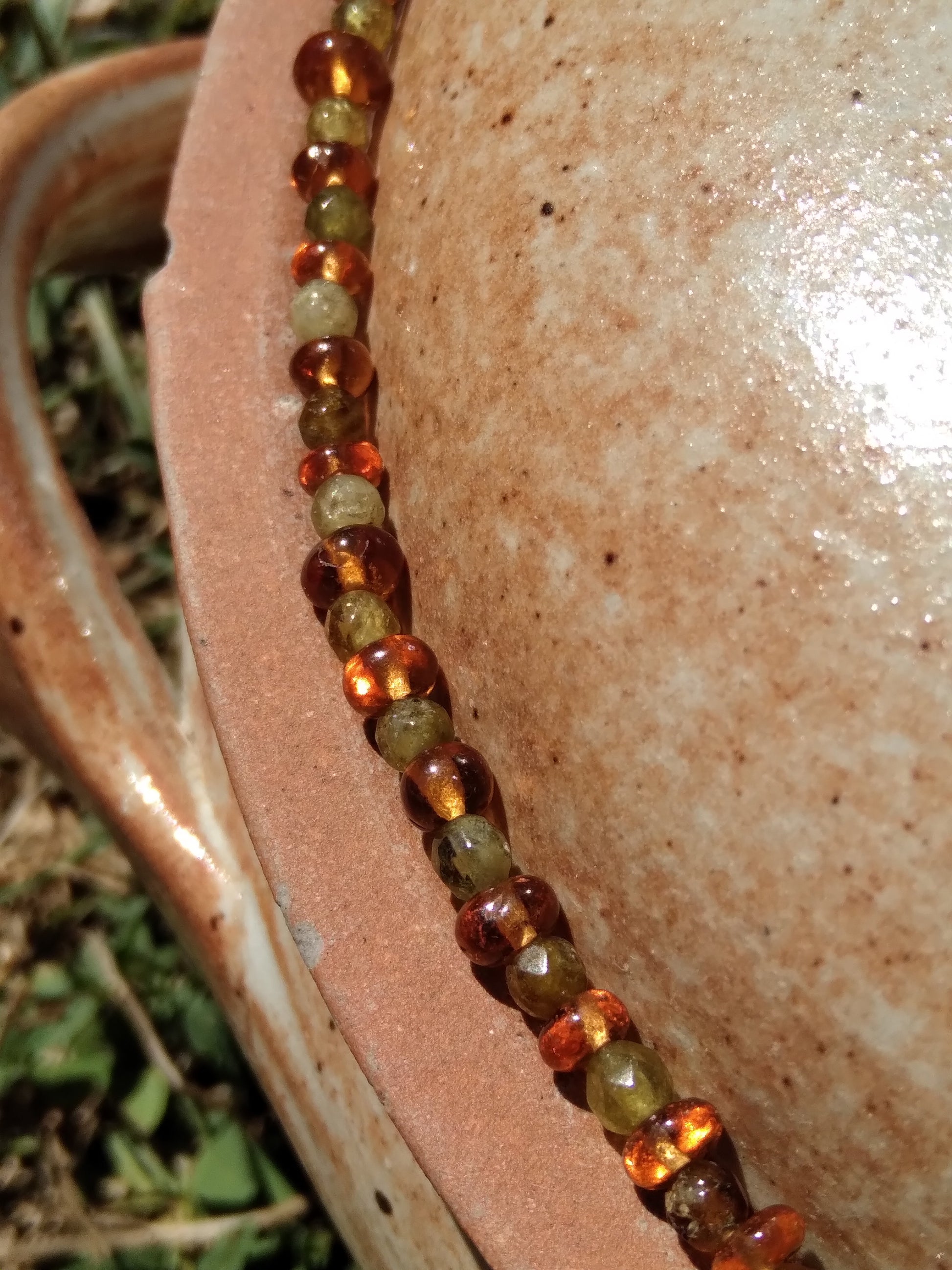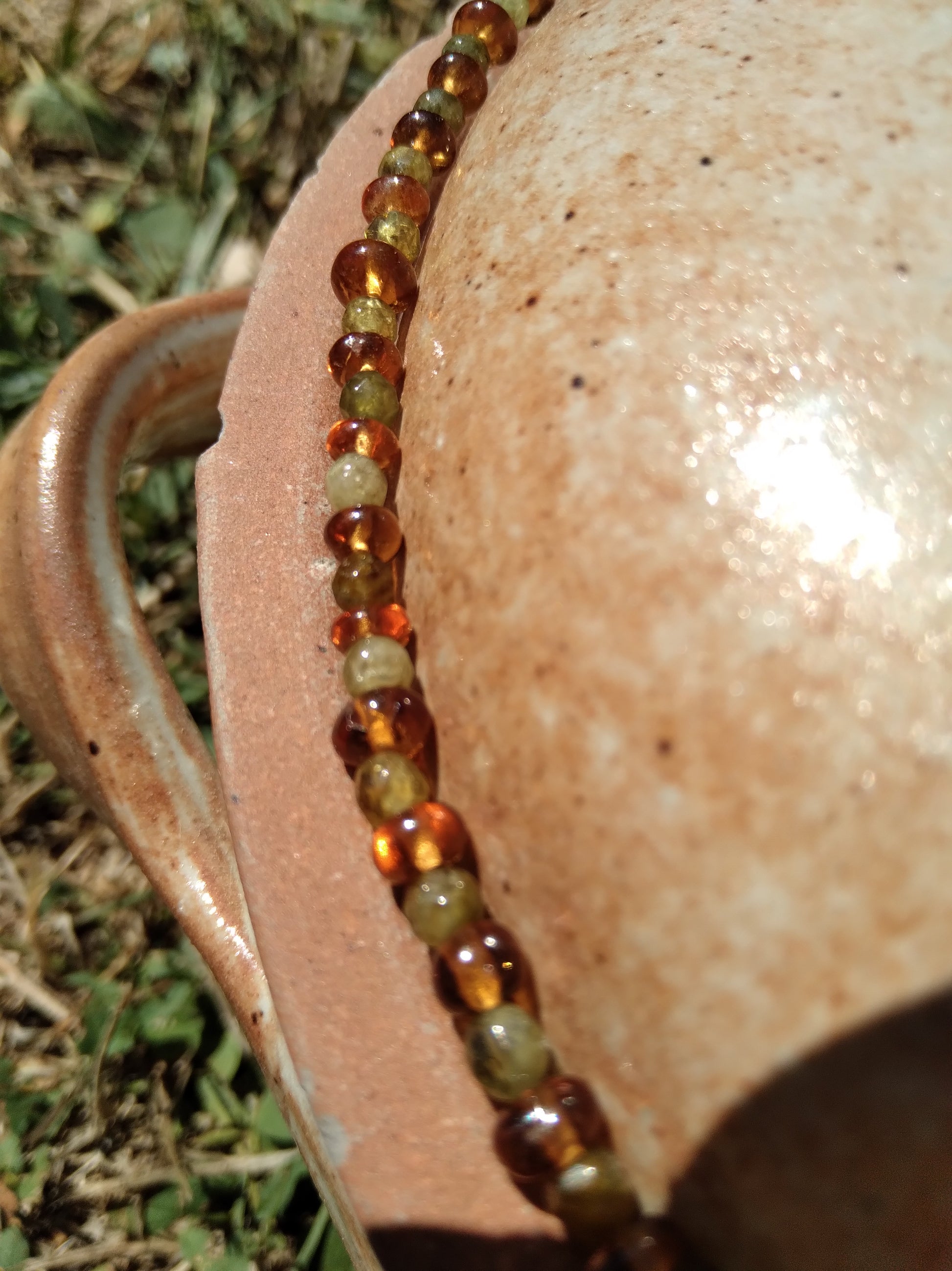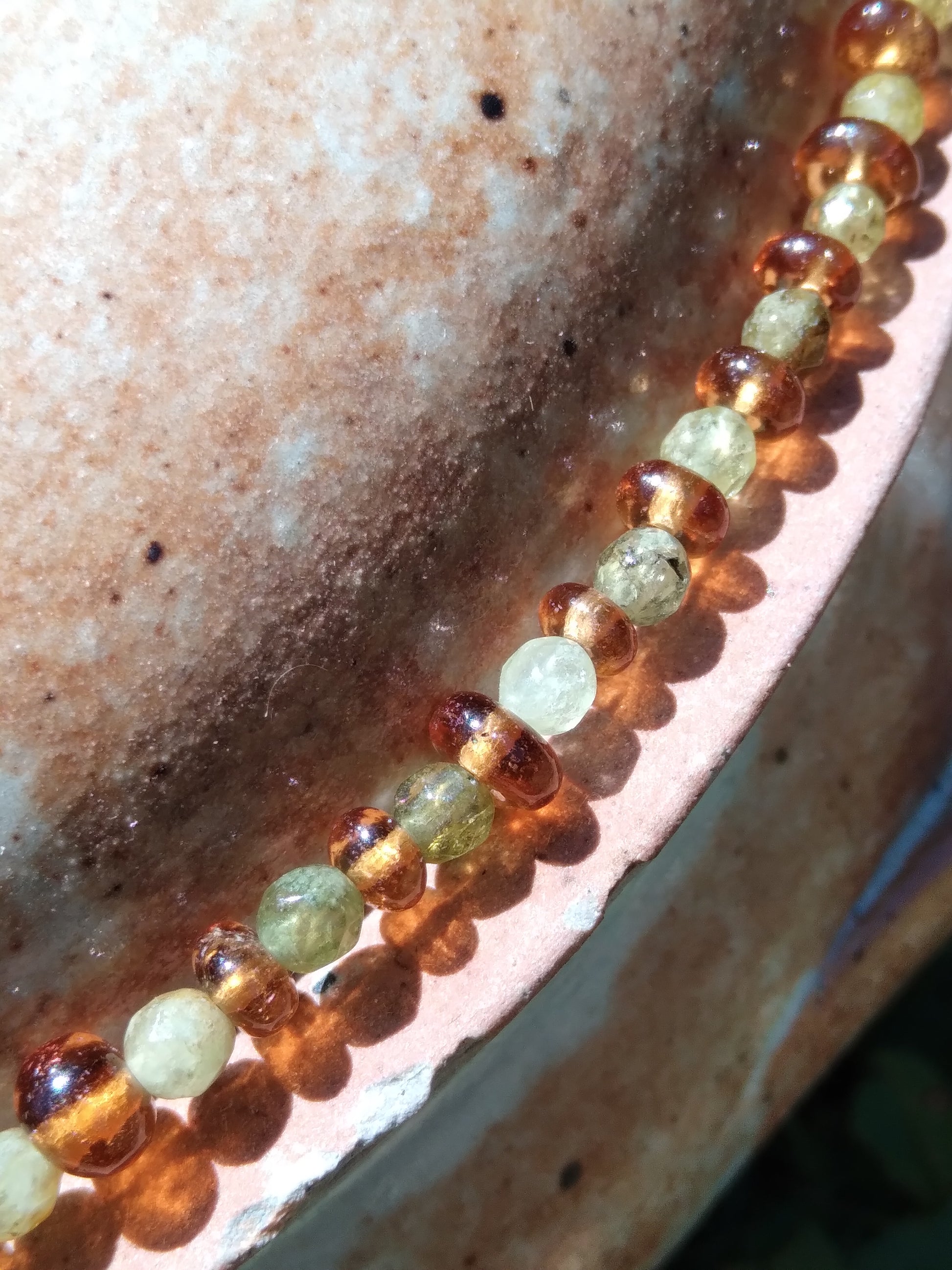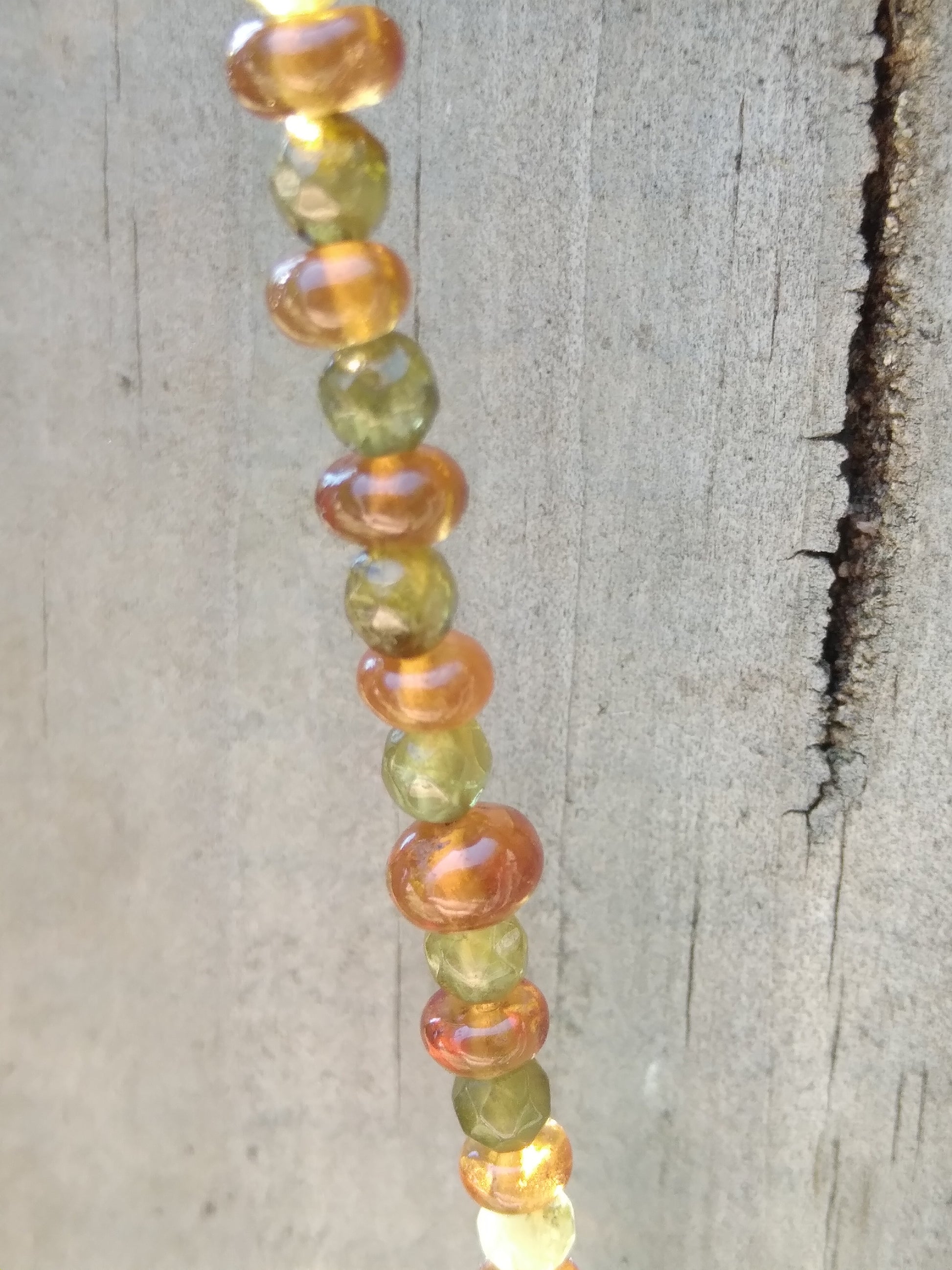 Green garnet and hessonite garnet marry wonderfully for a perfect balance.
