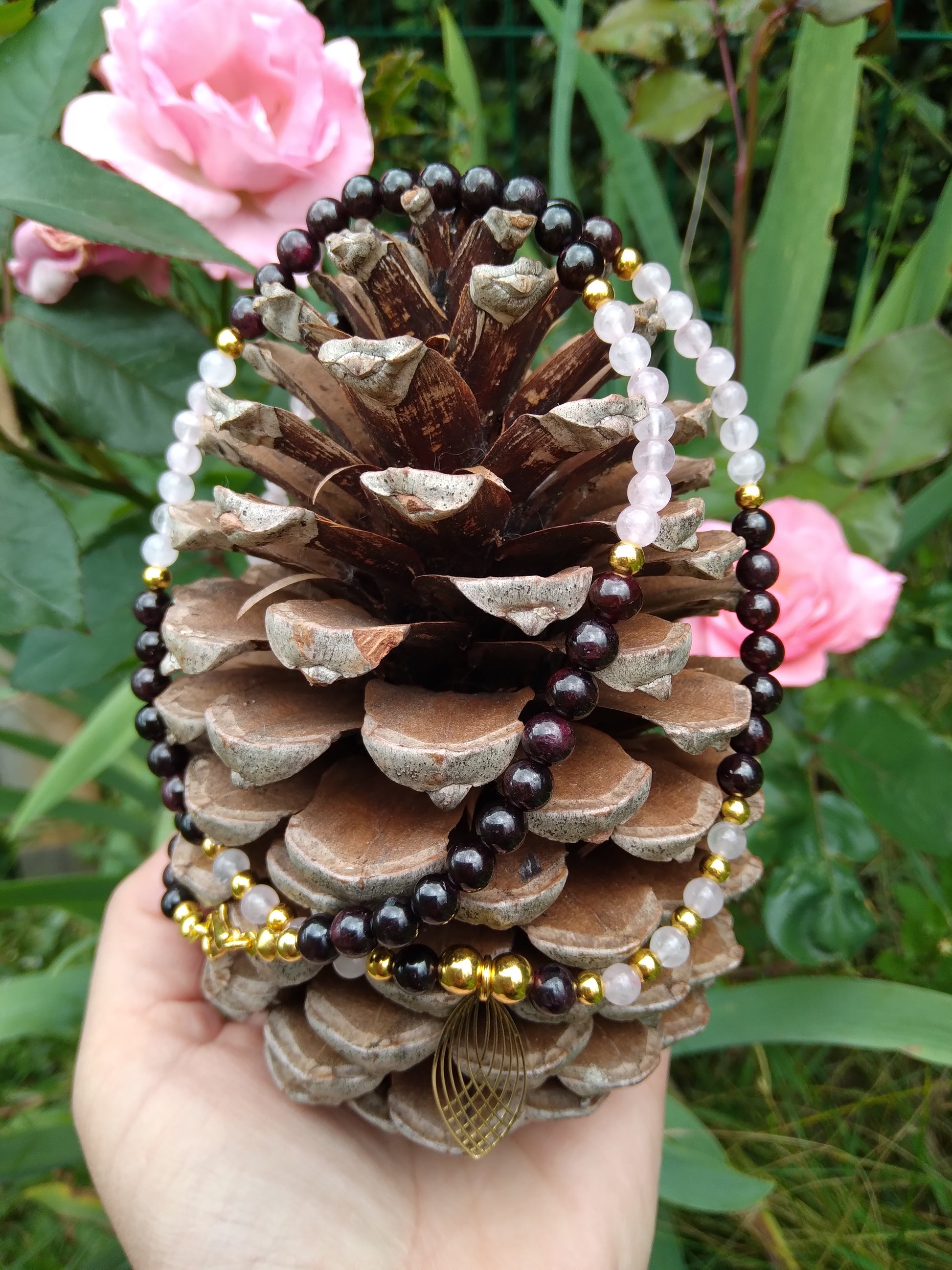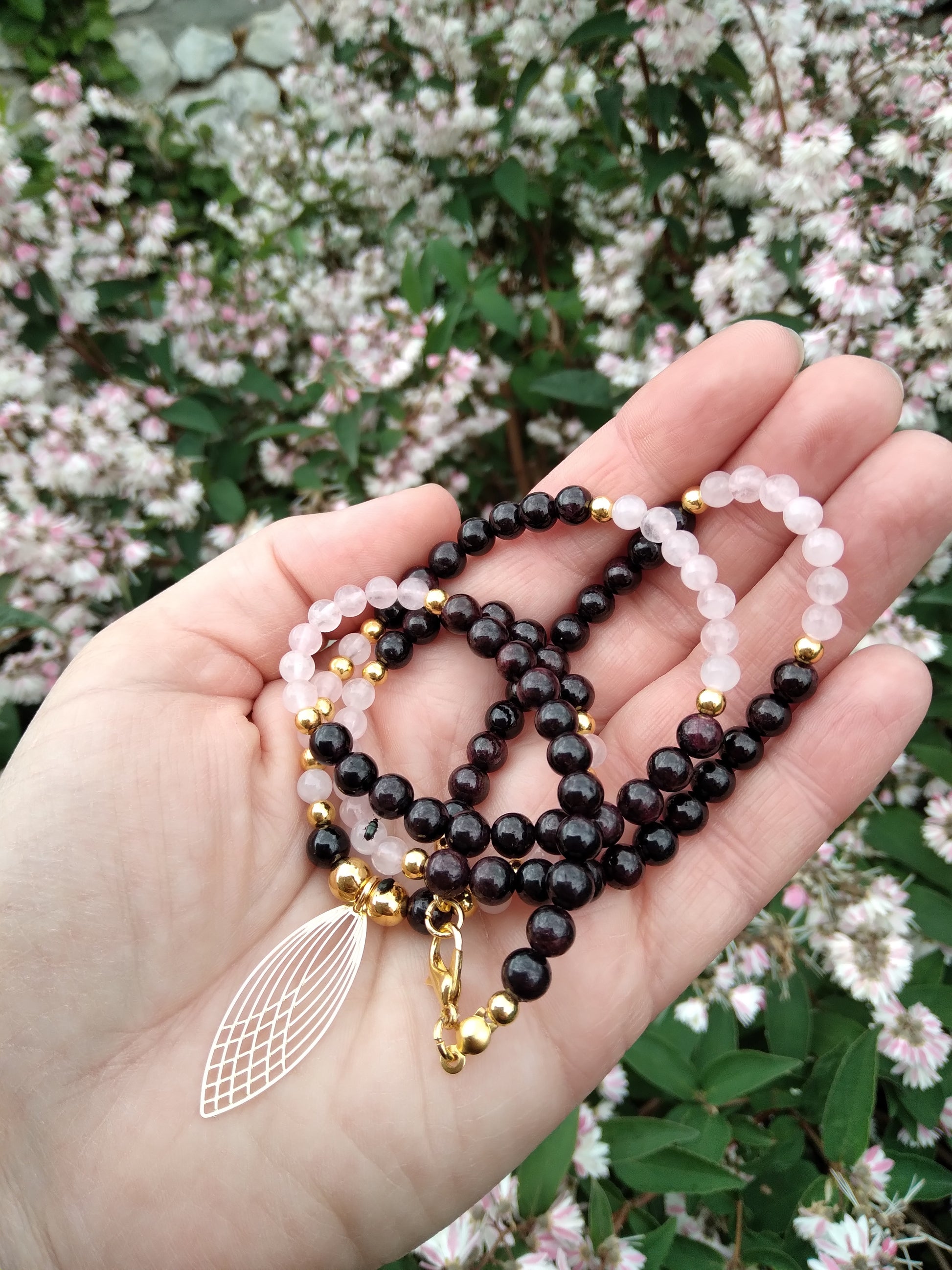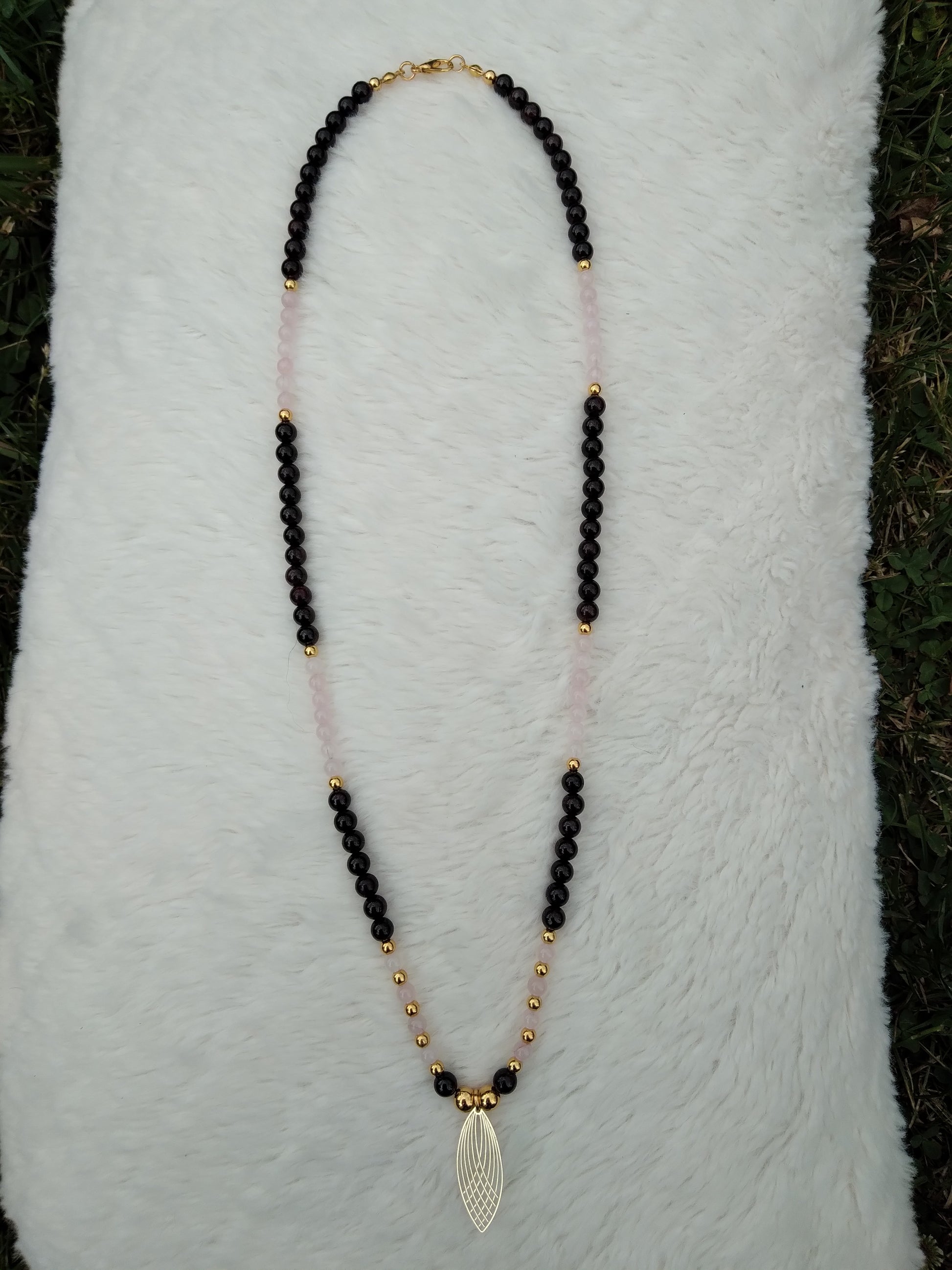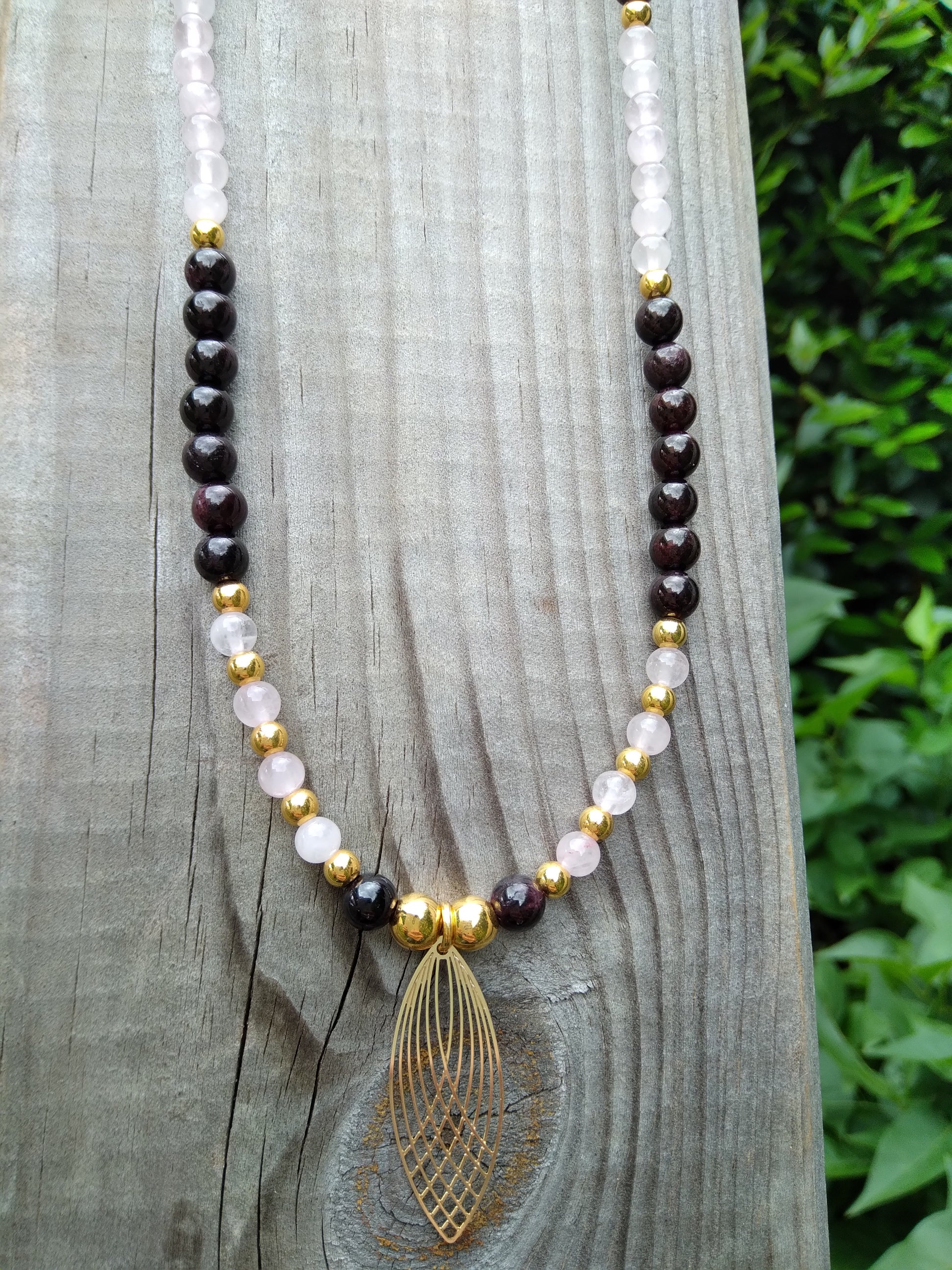 Collier en quartz rose et grenat "Équilibre"