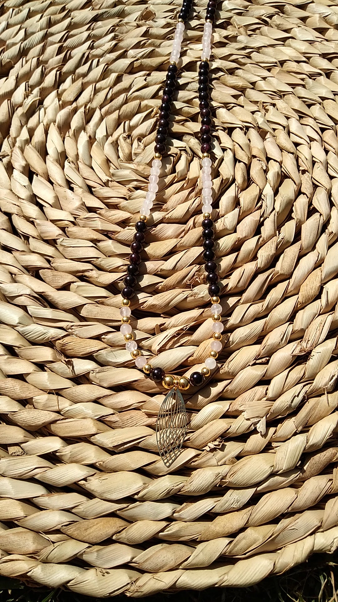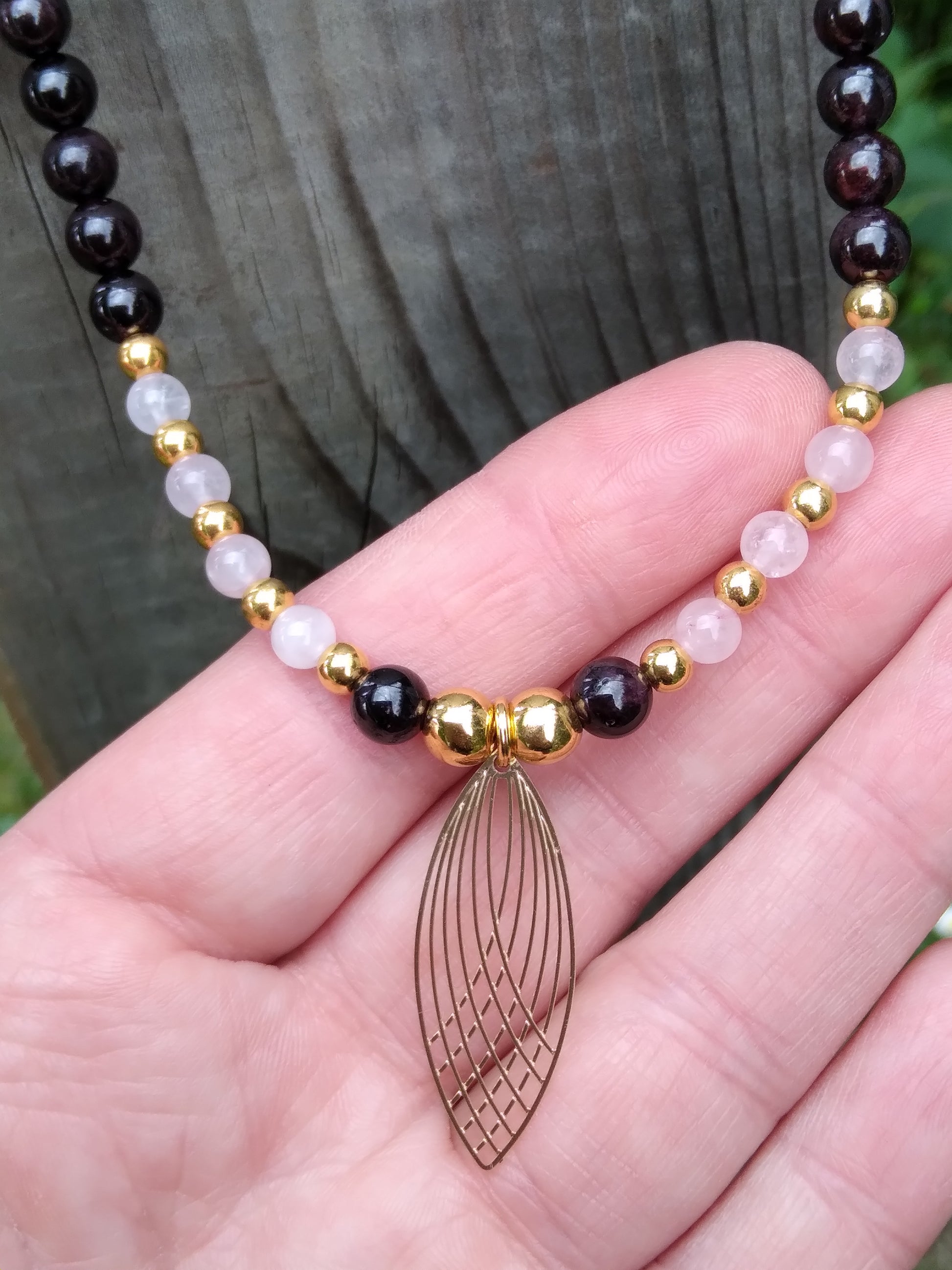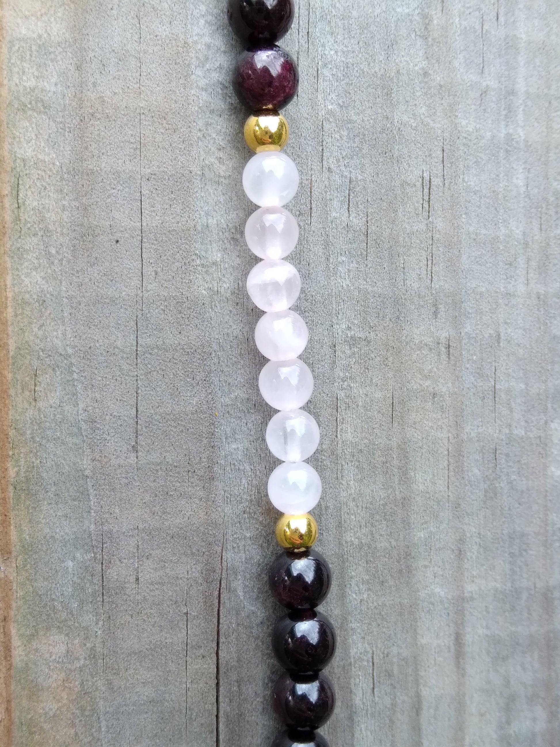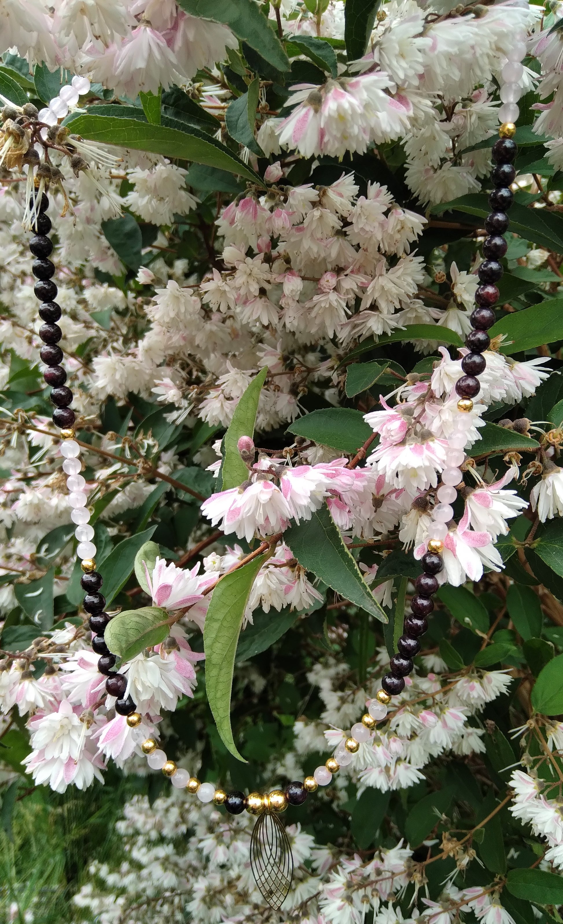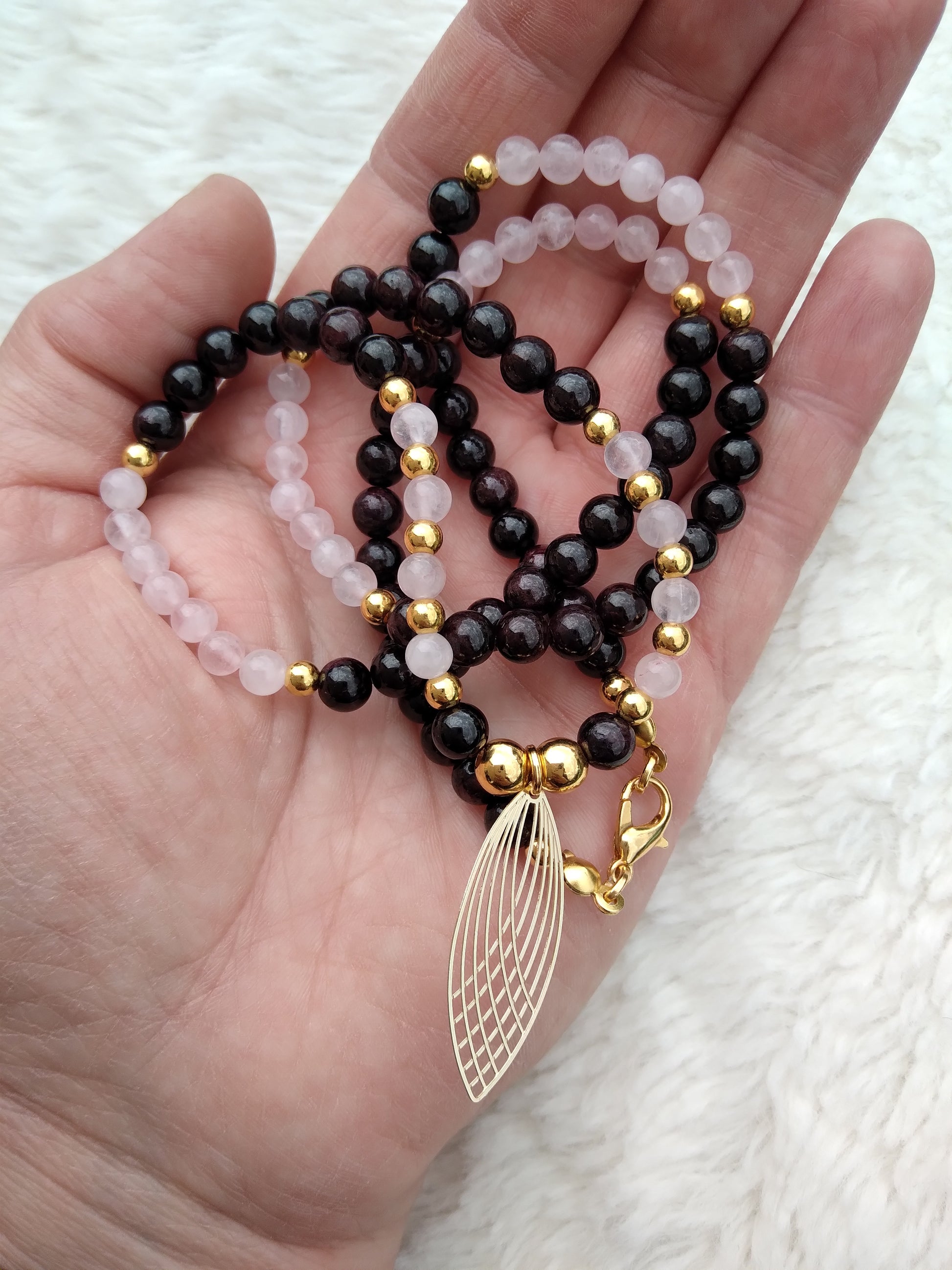 Collier en quartz rose et grenat "Équilibre"