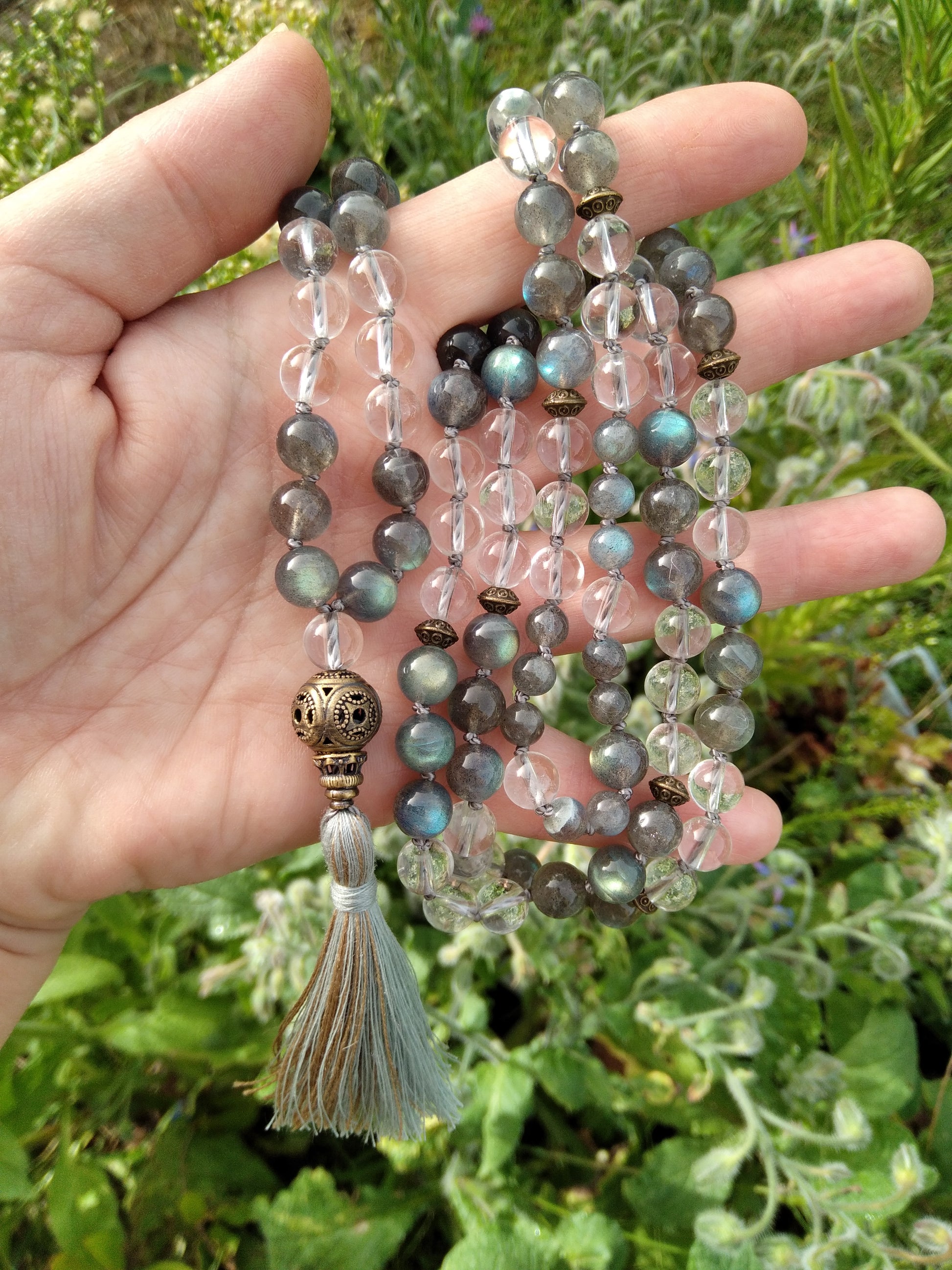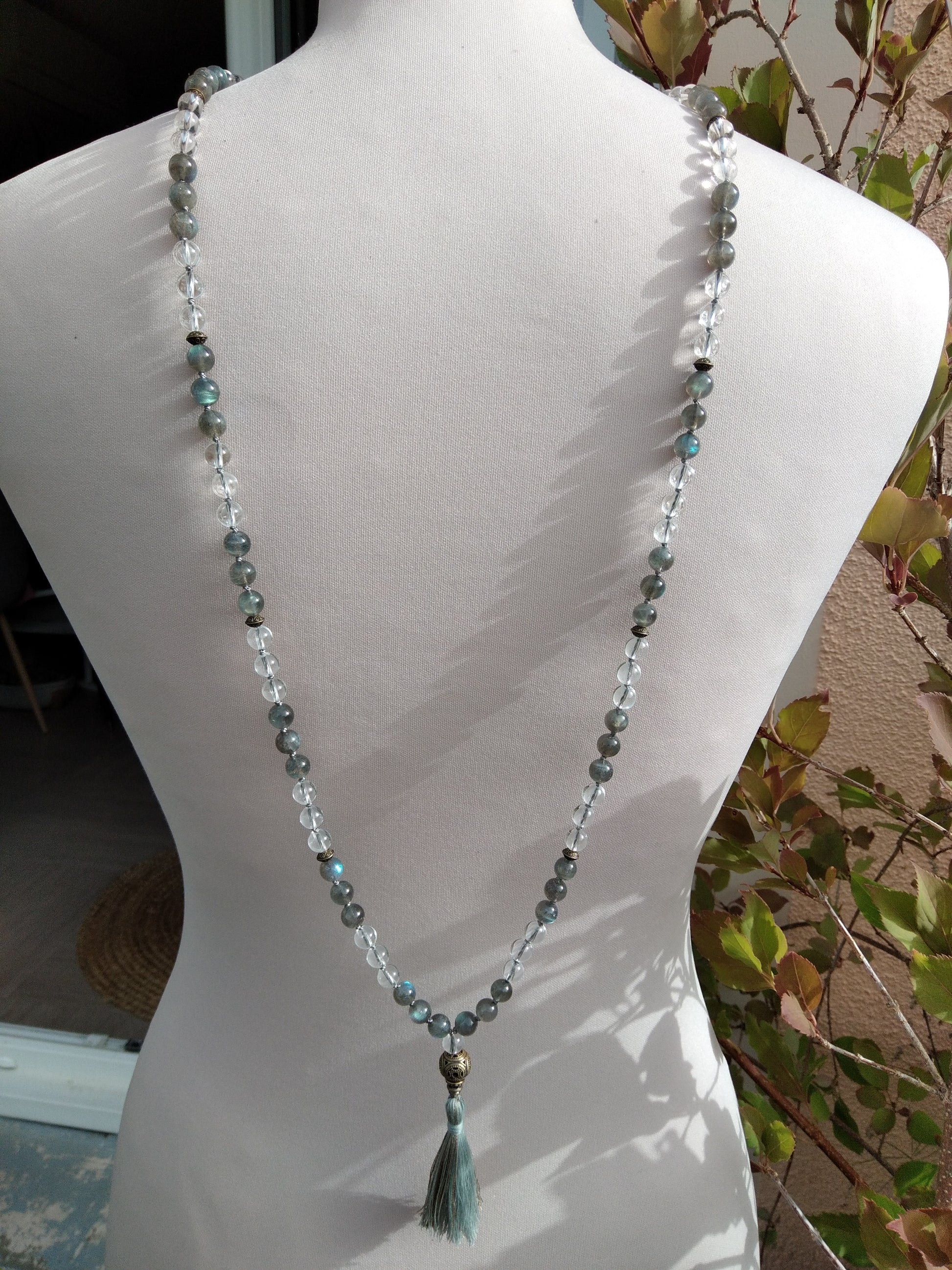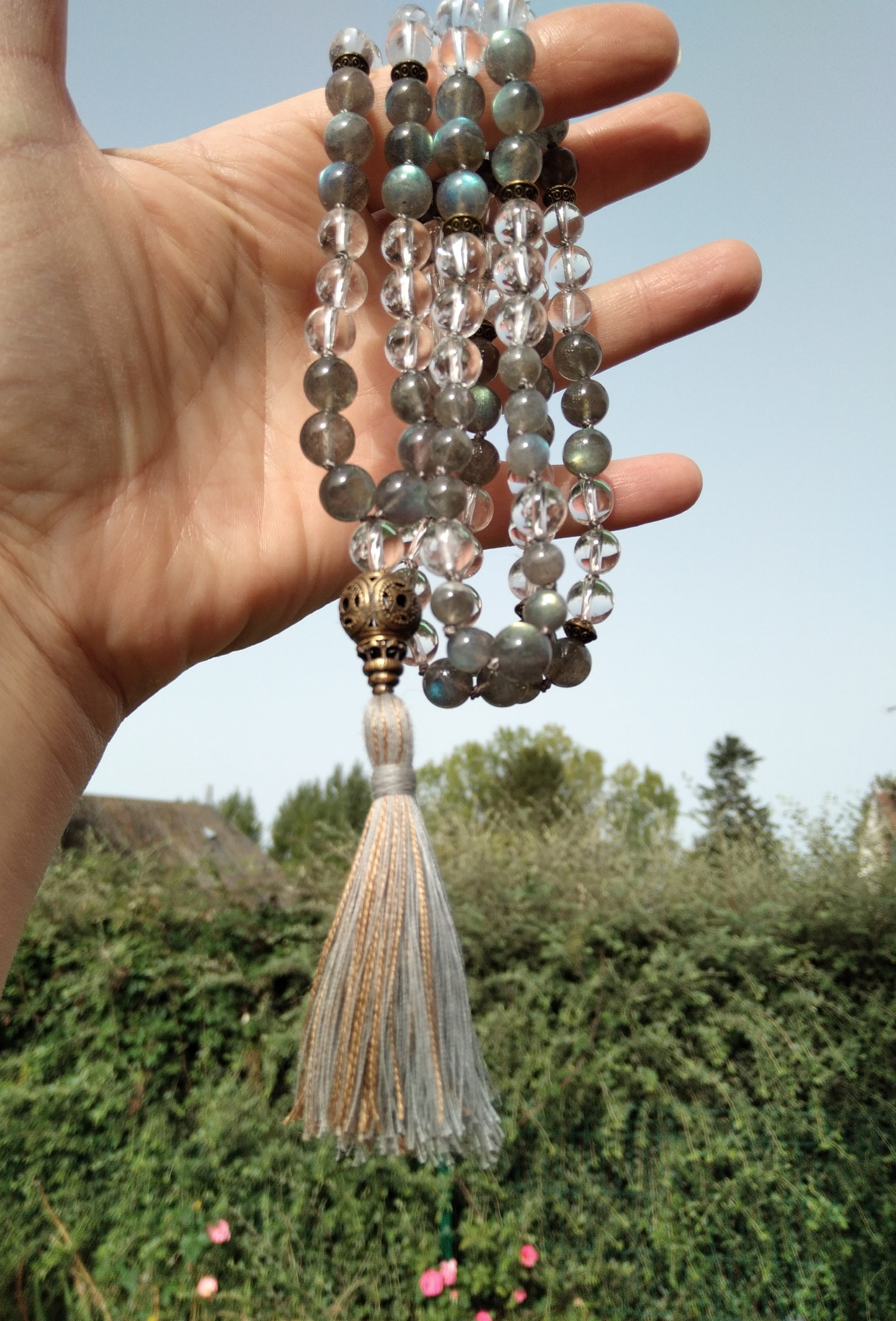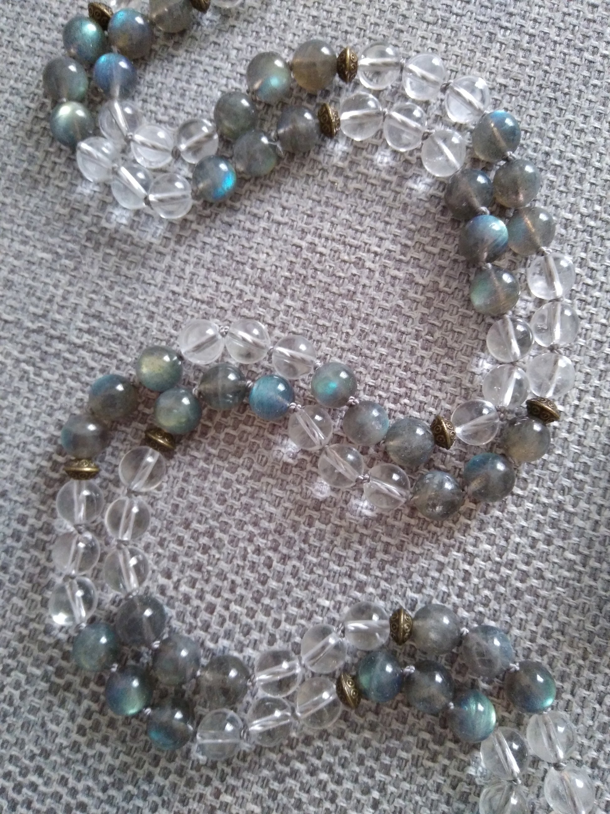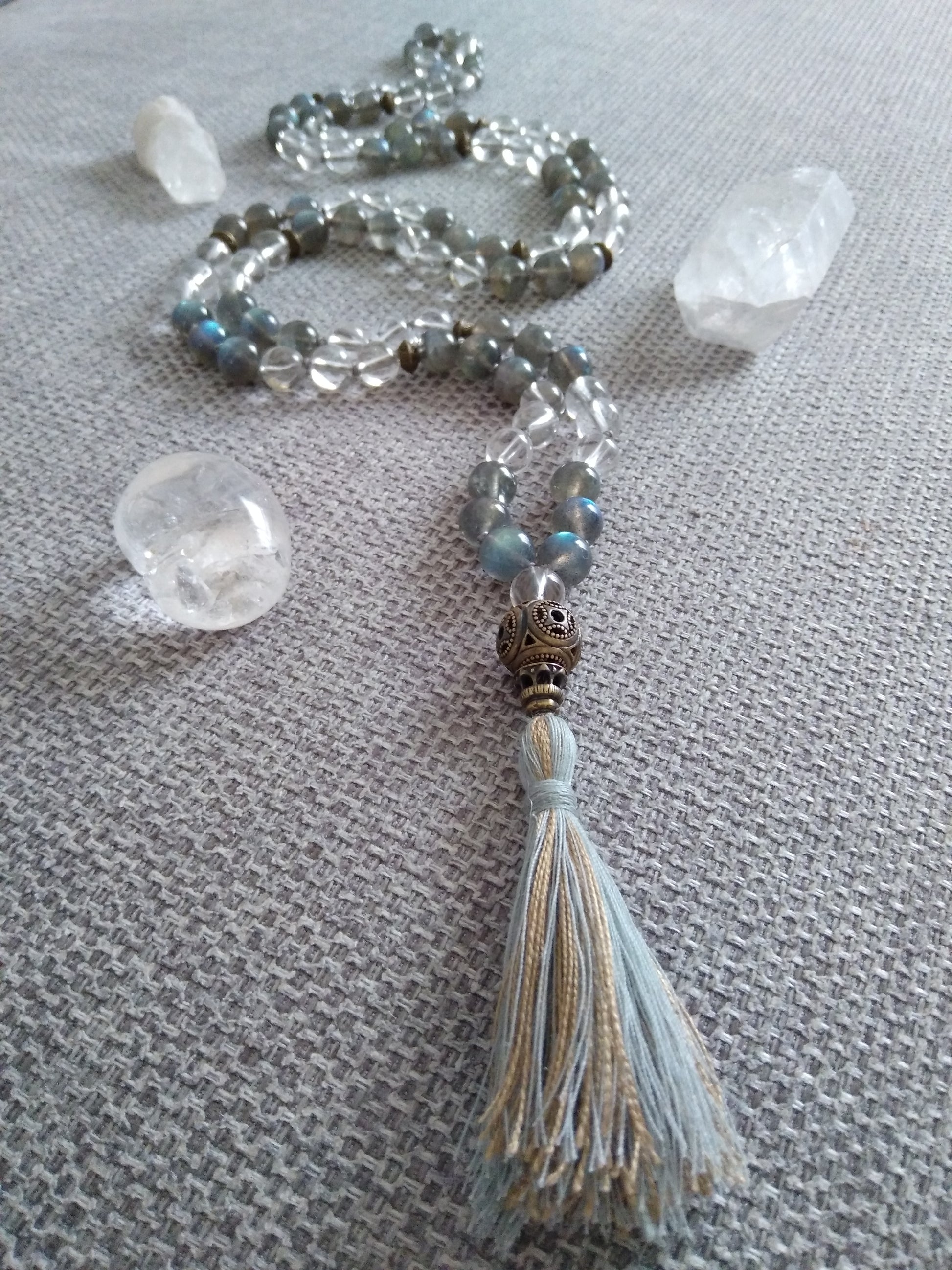 Mon client souhaitait faire réaliser un mala sur mesure qui comporterait du cristal de roche.