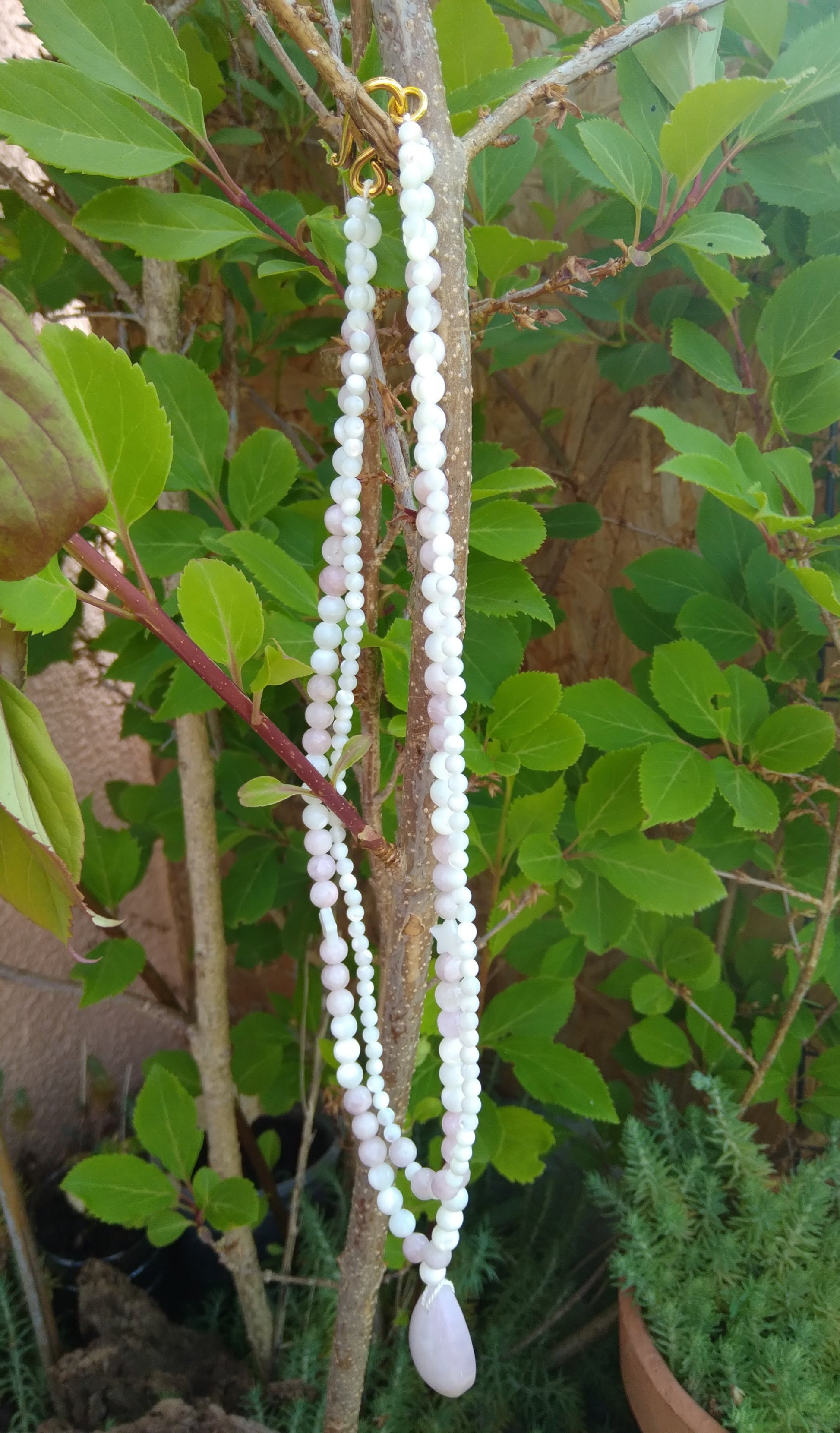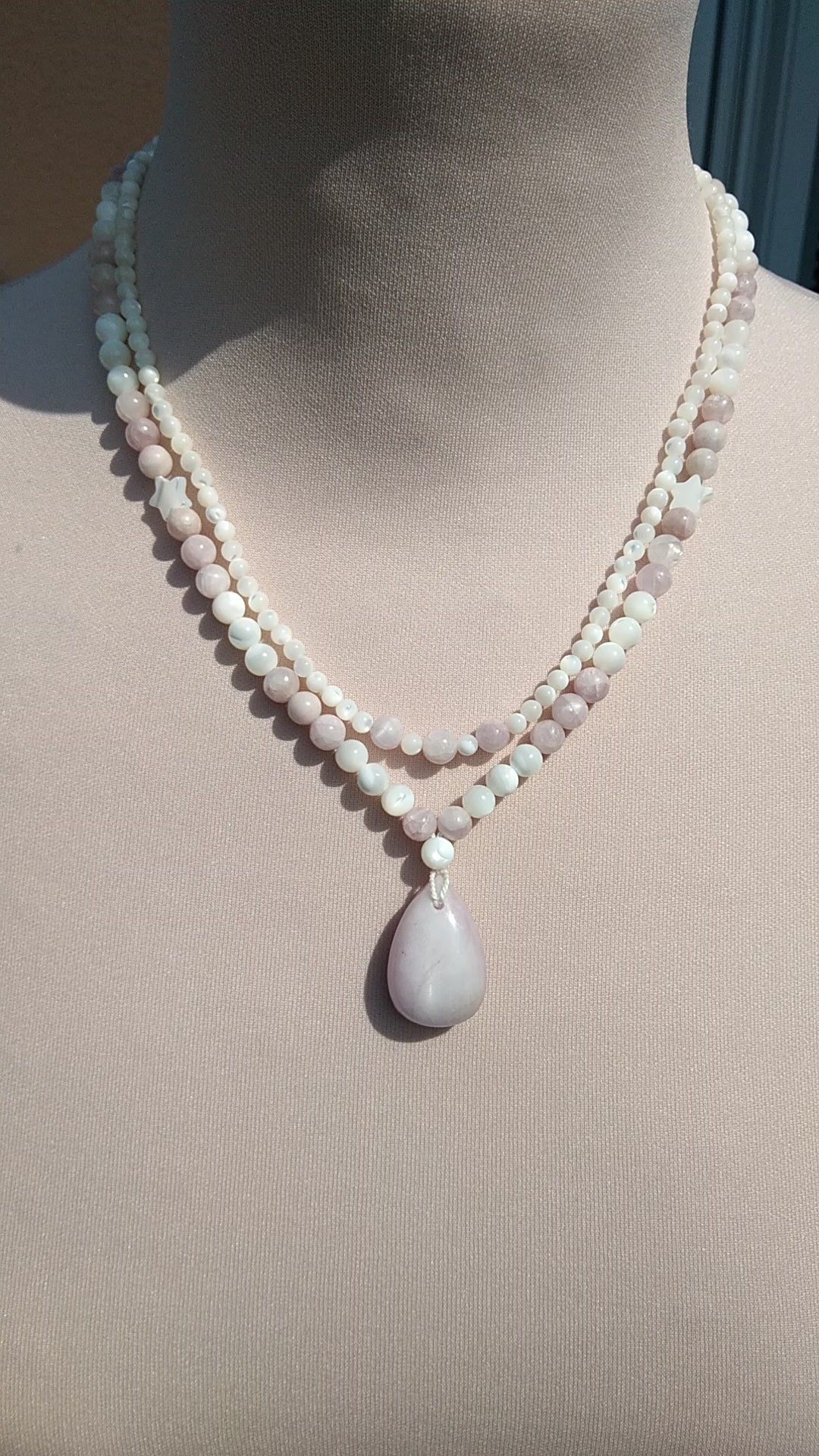 Double collier "Apaisement" en kunzite et nacre 🙏