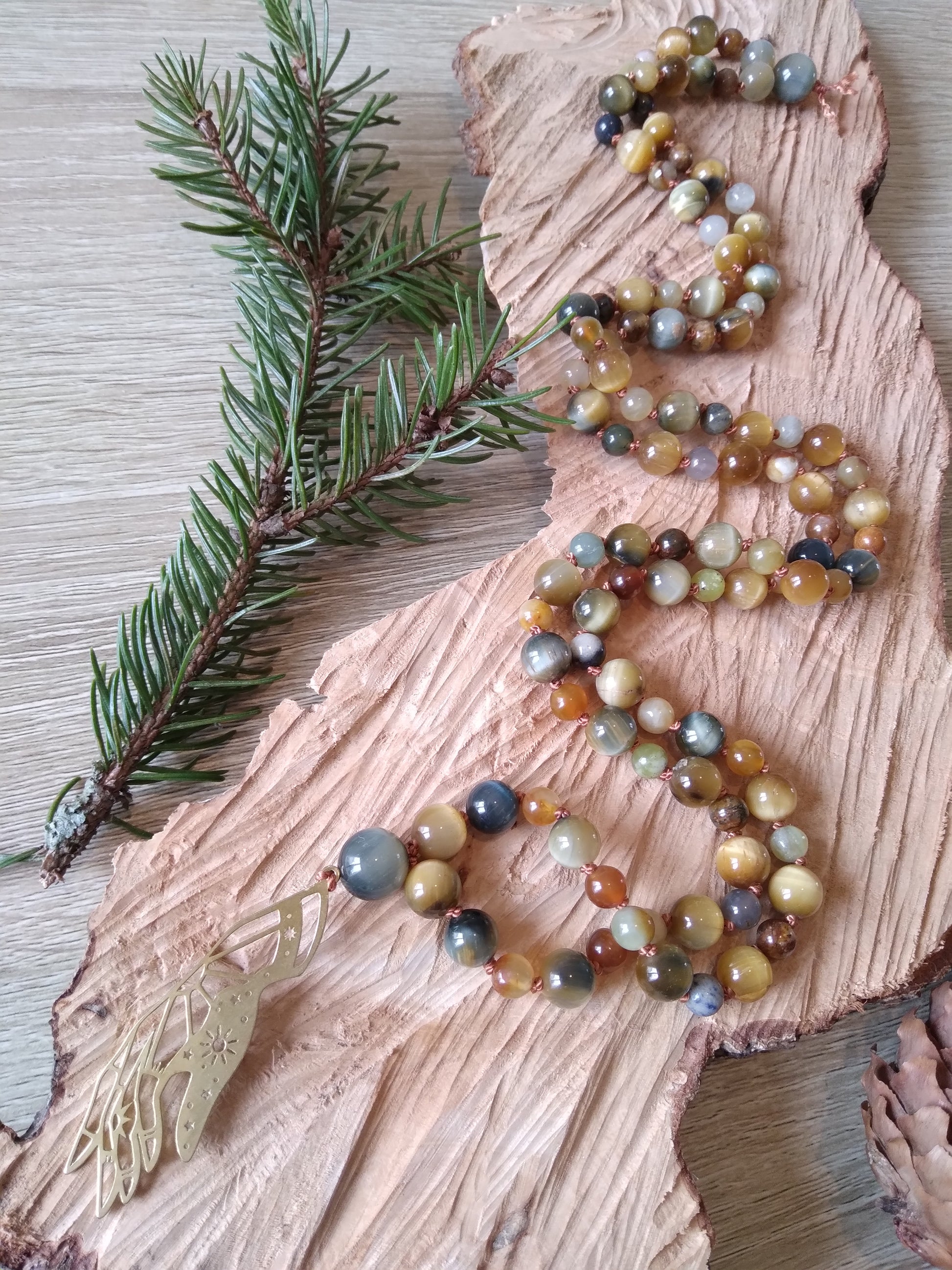 Ce mala en œil de tigre est idéal pour repousser les ondes négatives et avancer sereinement dans la vie !