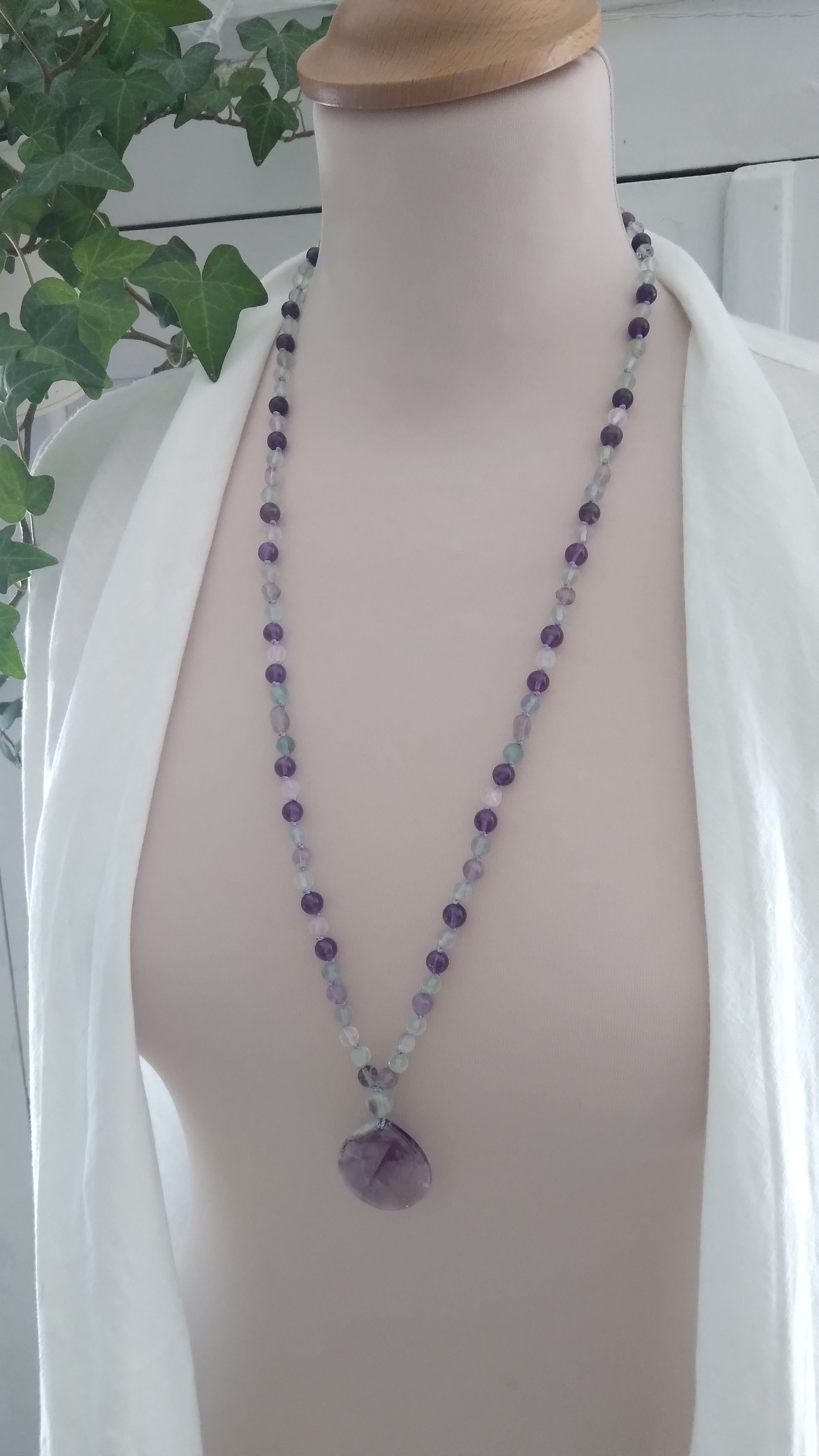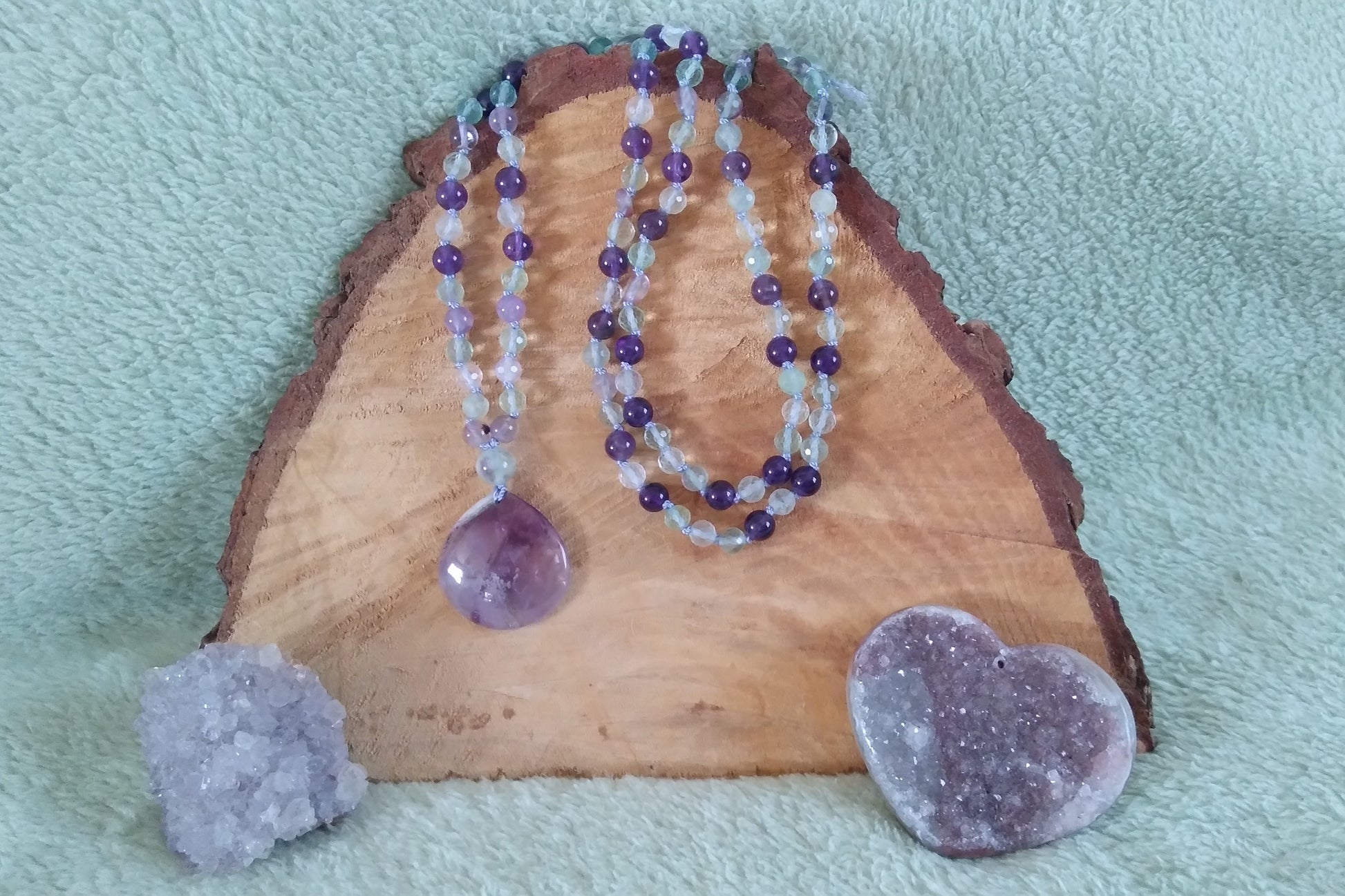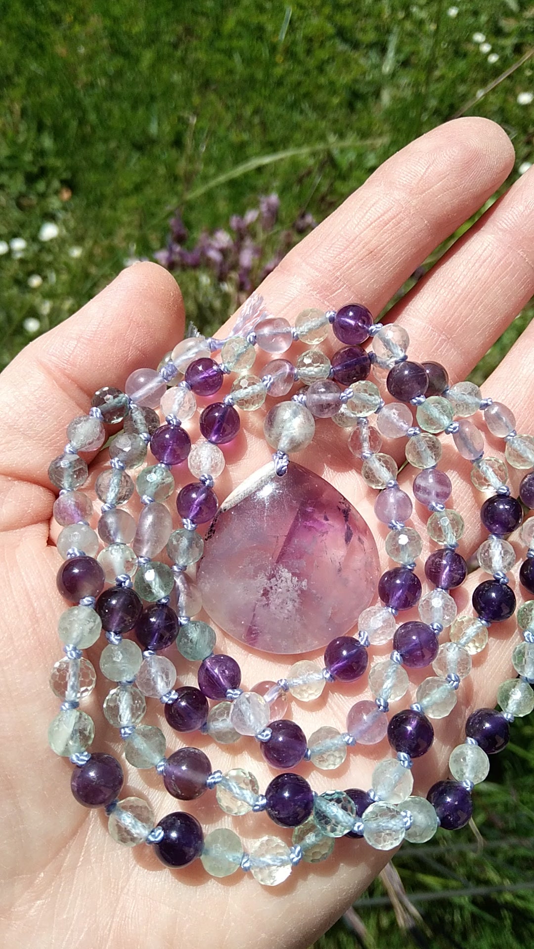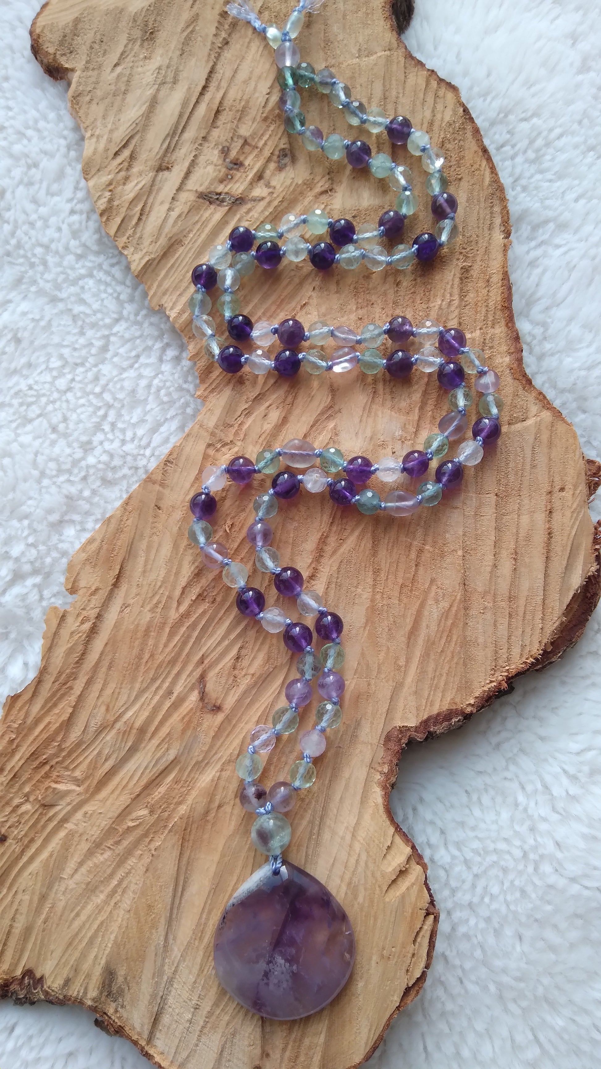 Mala en fluorite et améthyste "Clarté et équilibre"