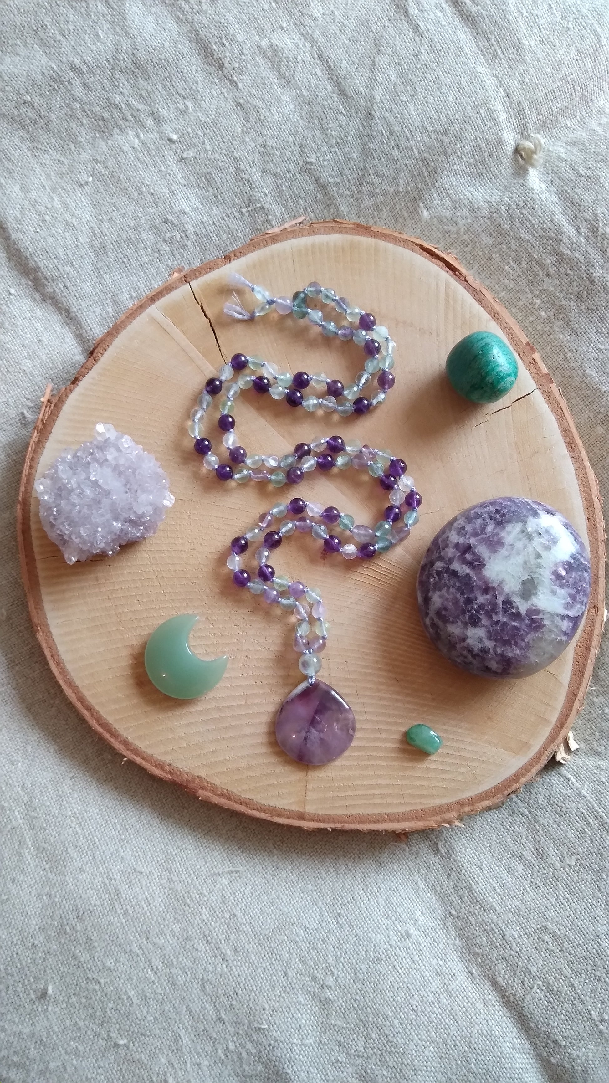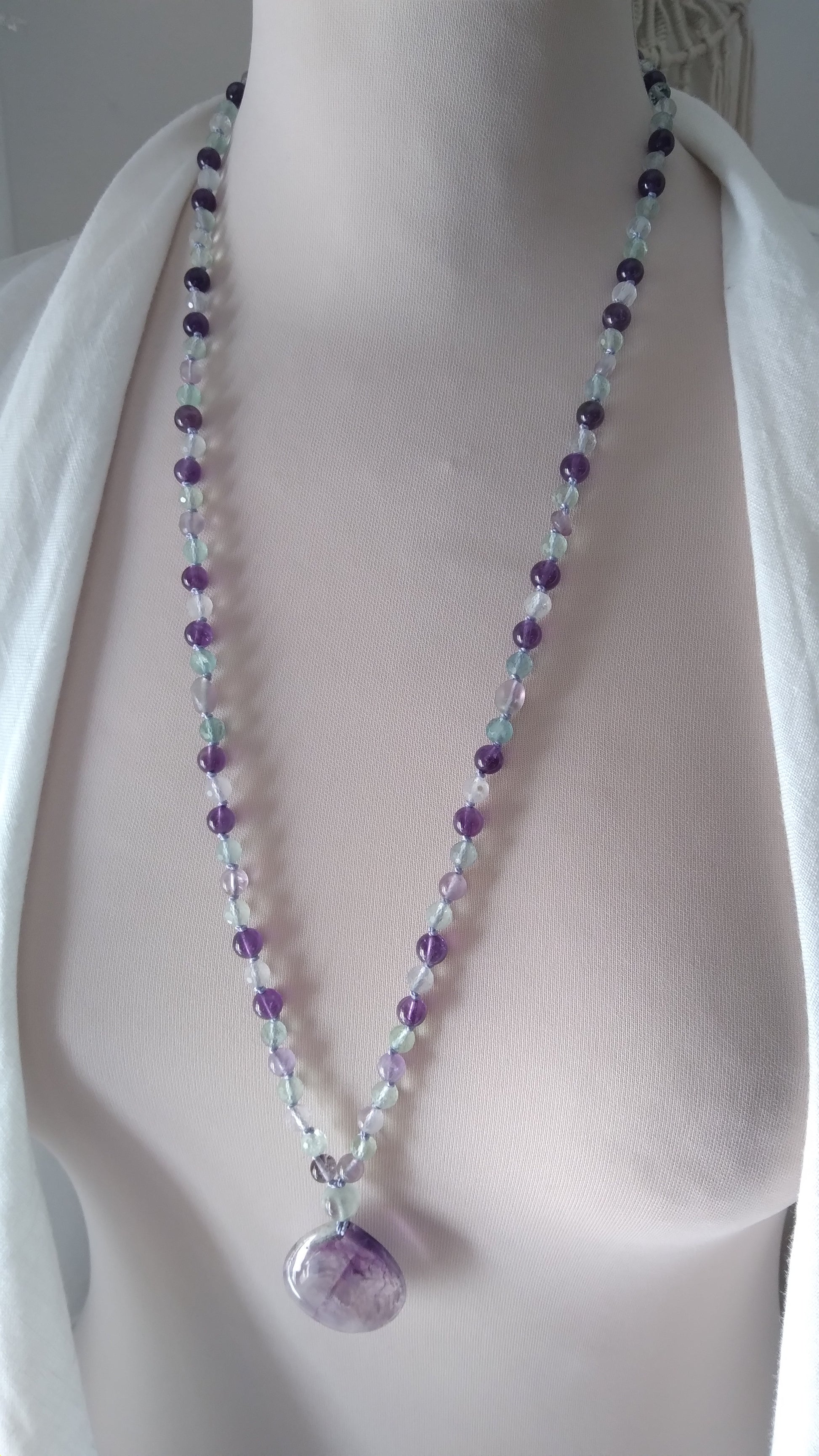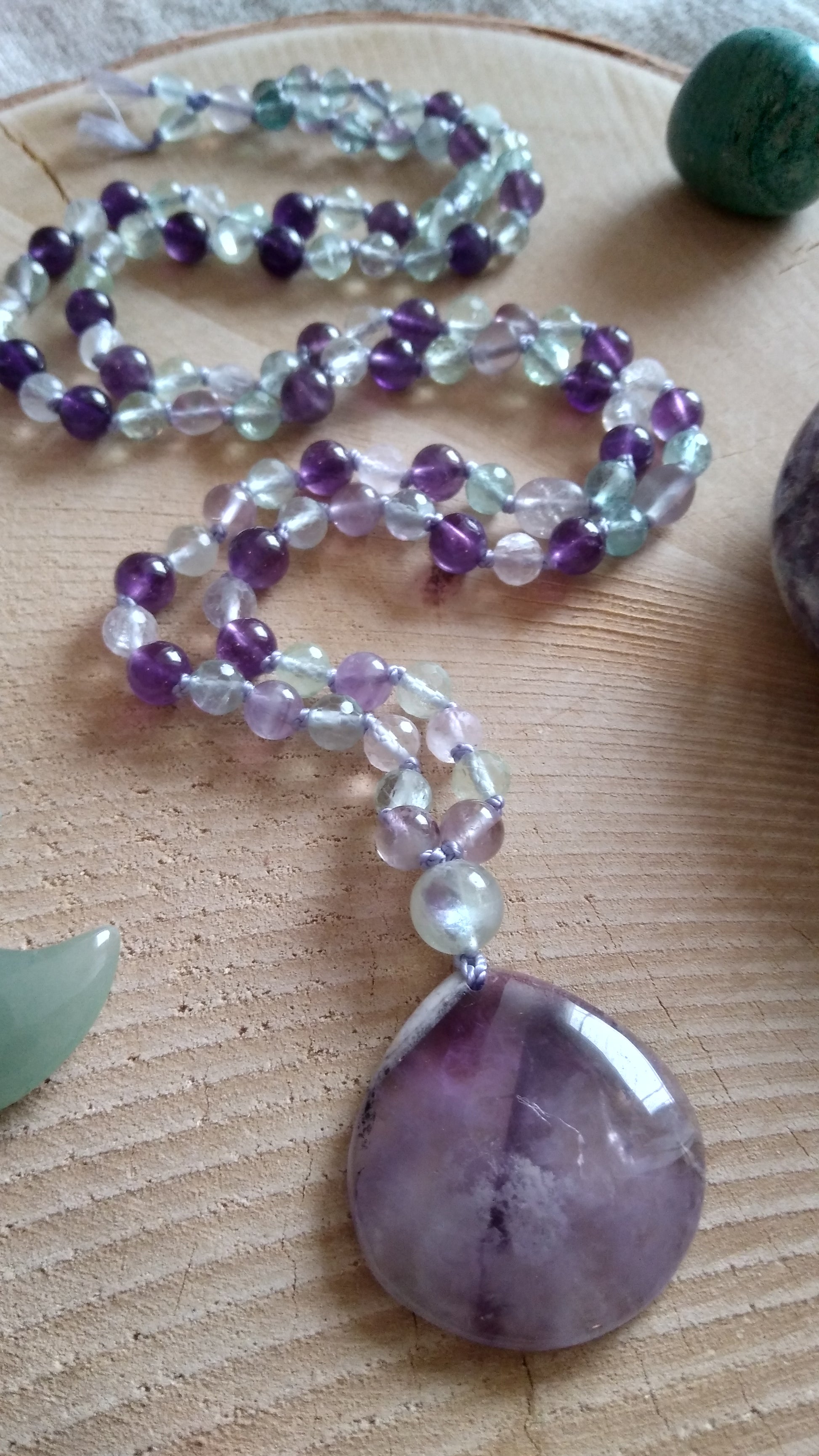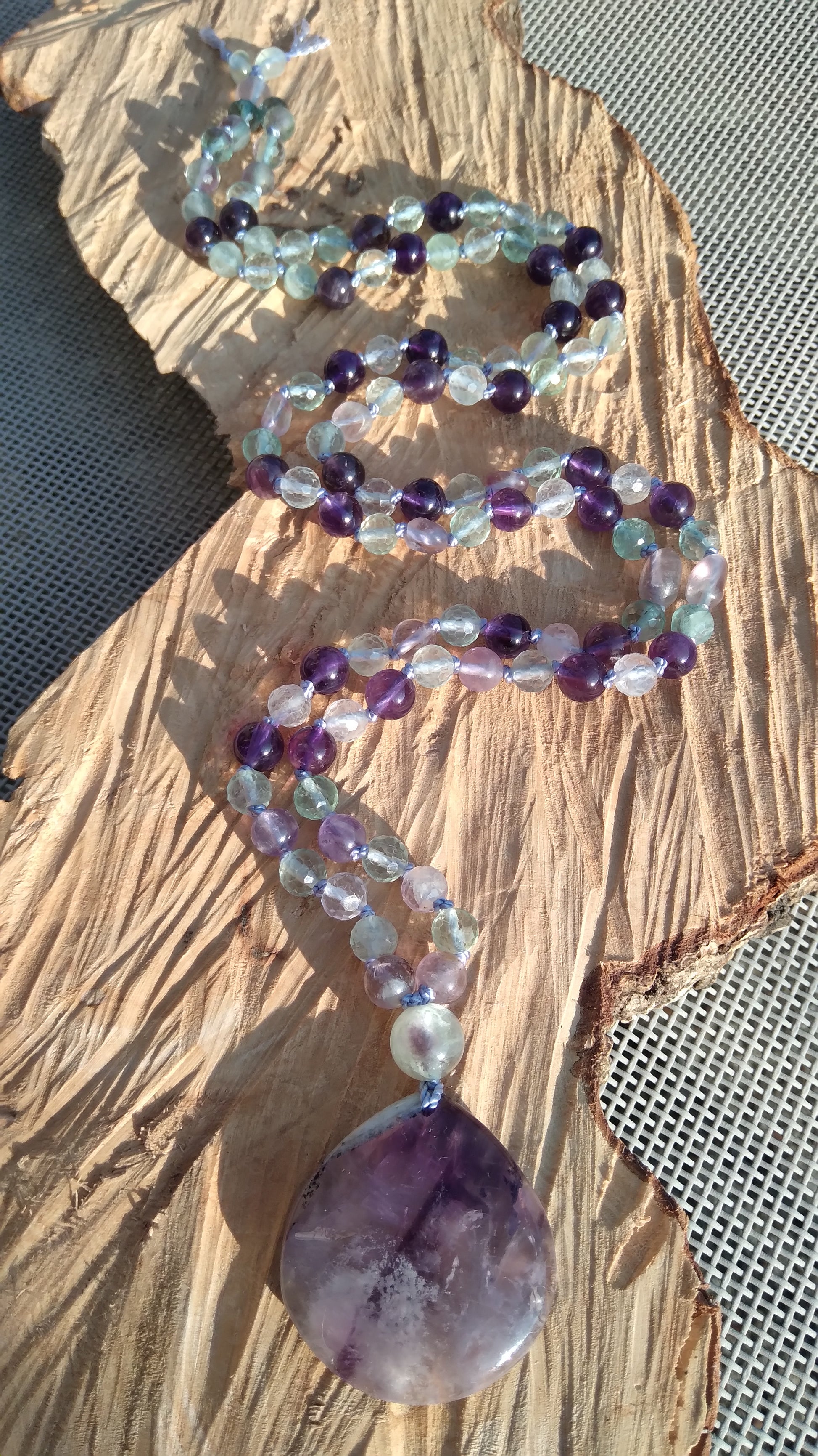 Mala en fluorite et améthyste "Clarté et équilibre"