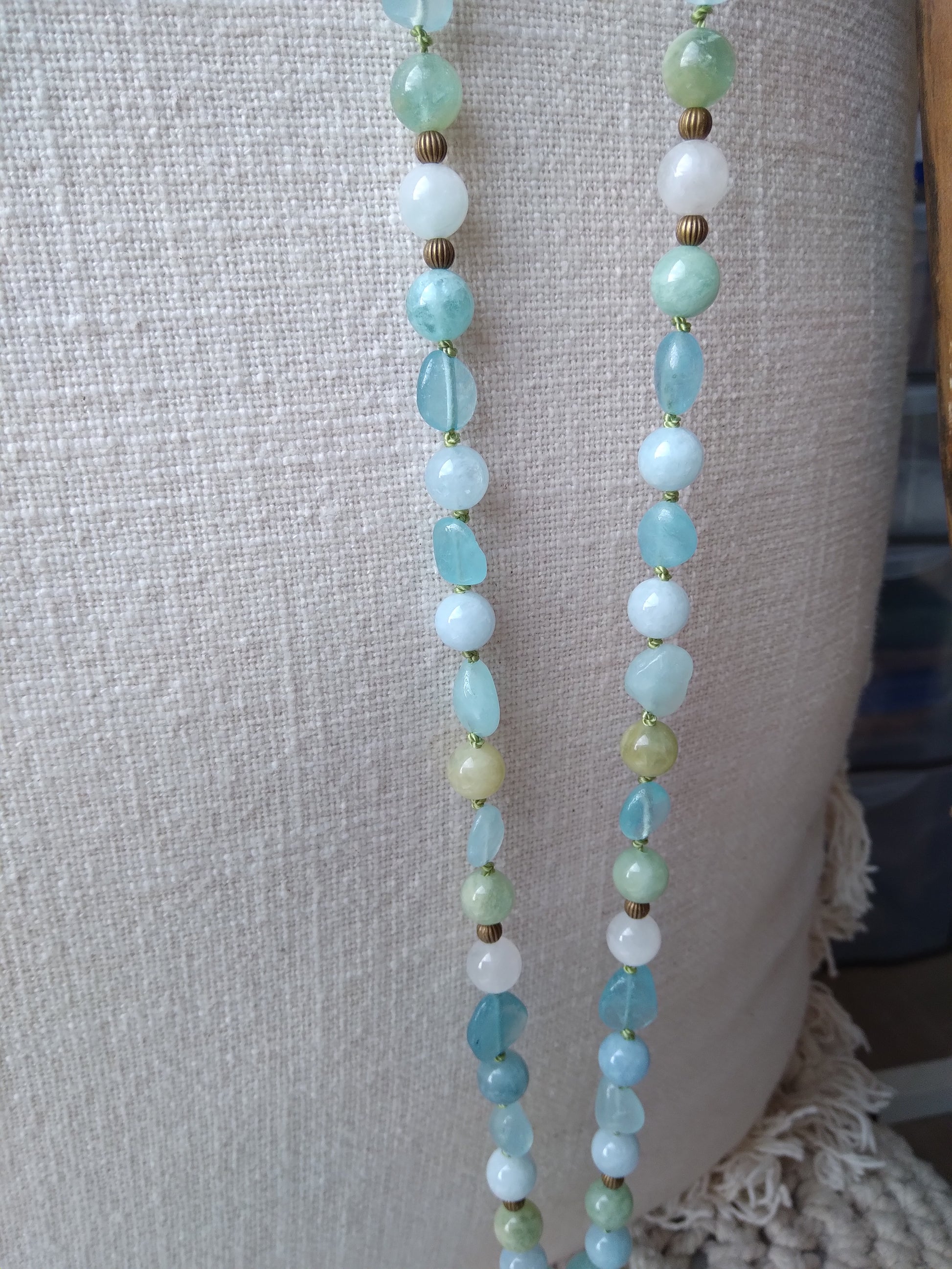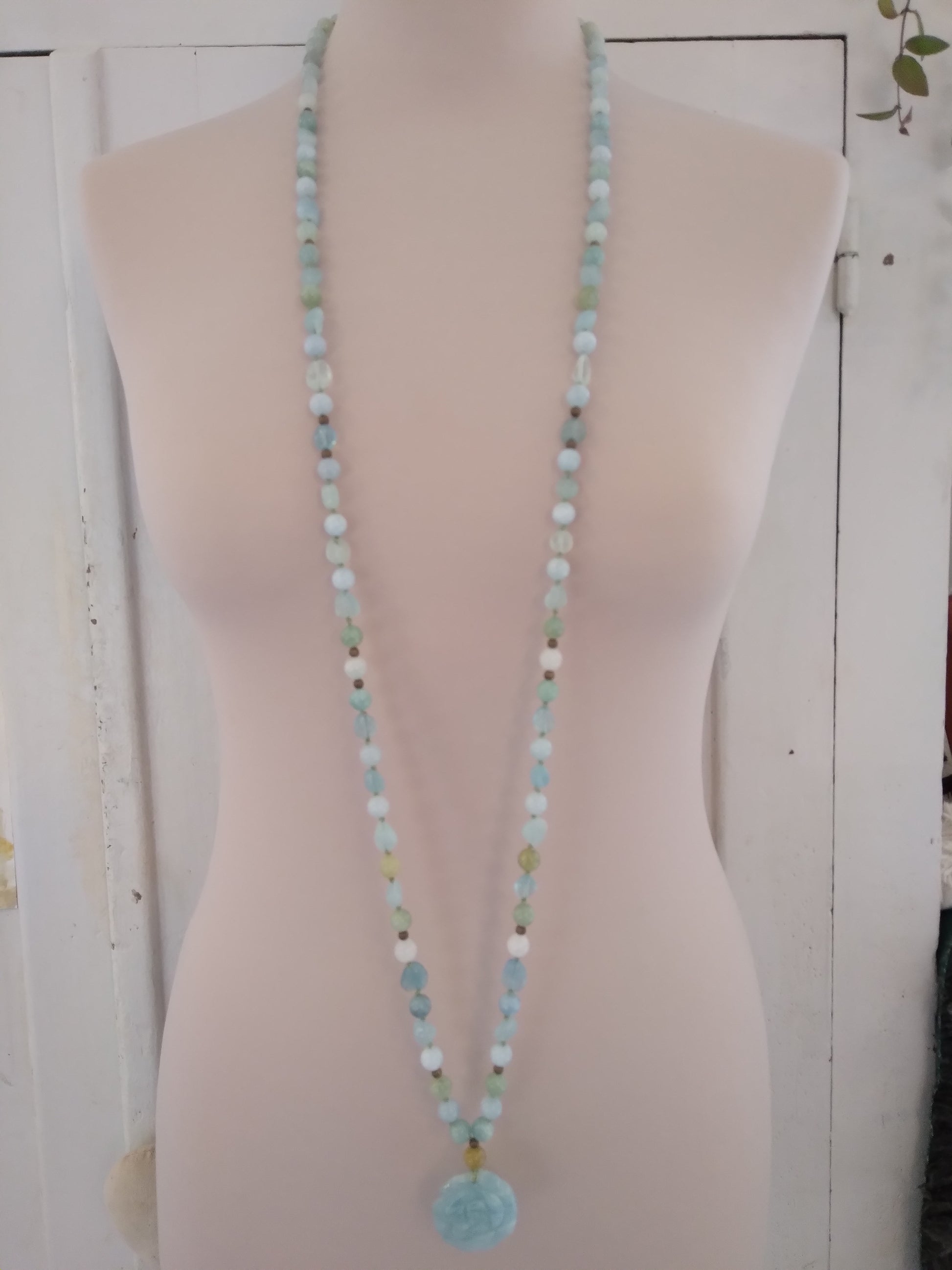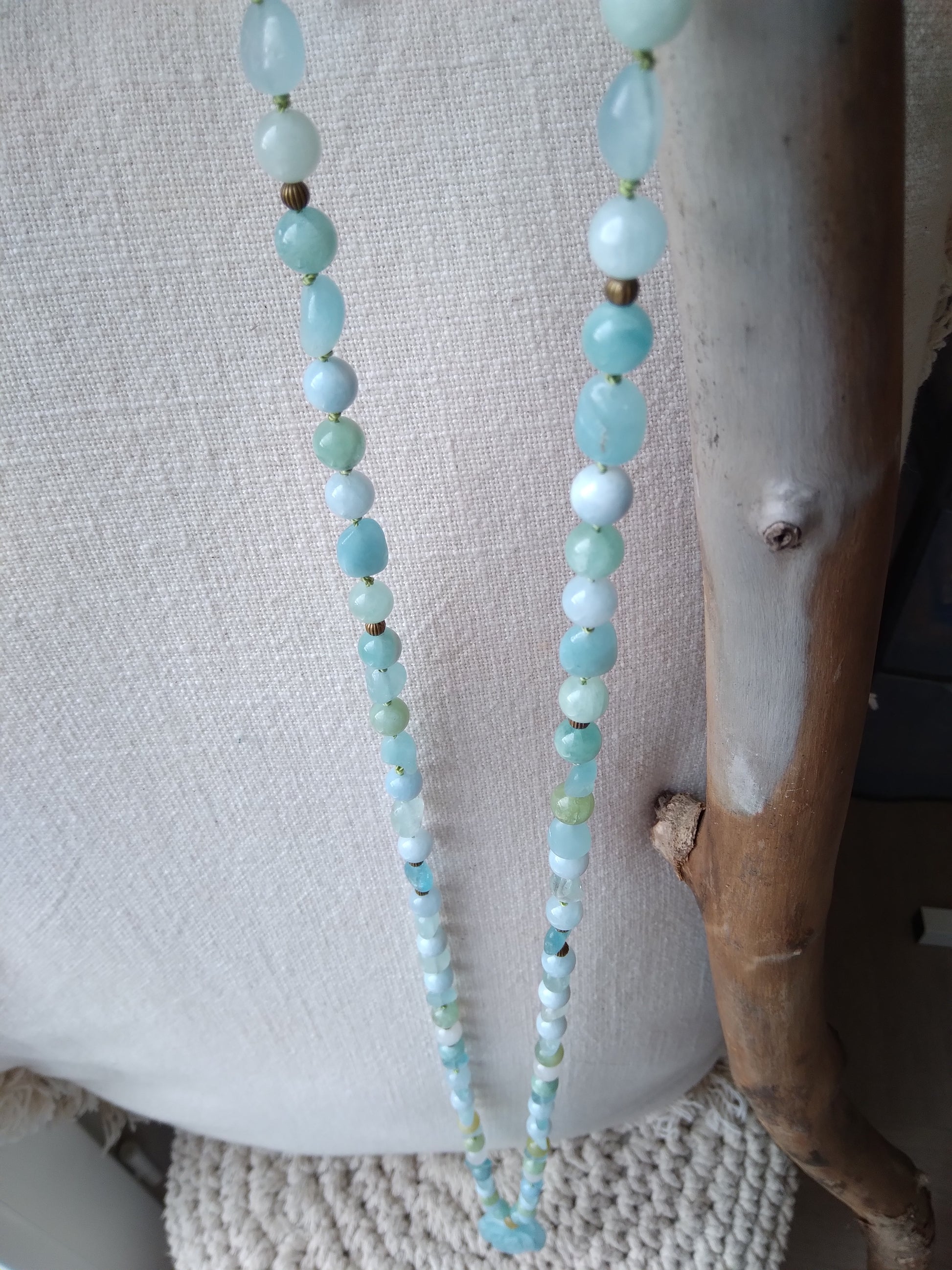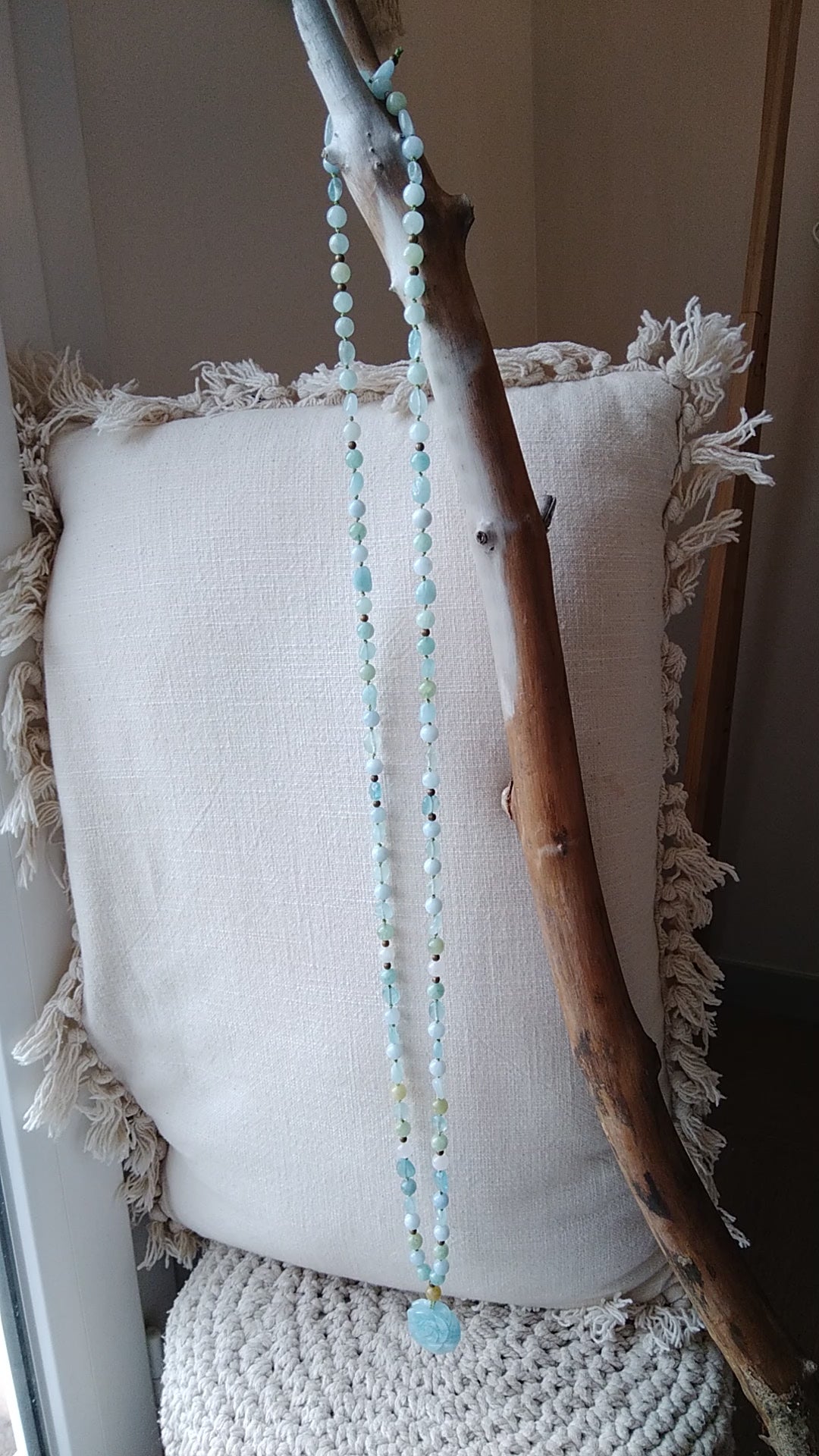 Traditional "Depths" mala composed of 108 natural aquamarine stone beads
