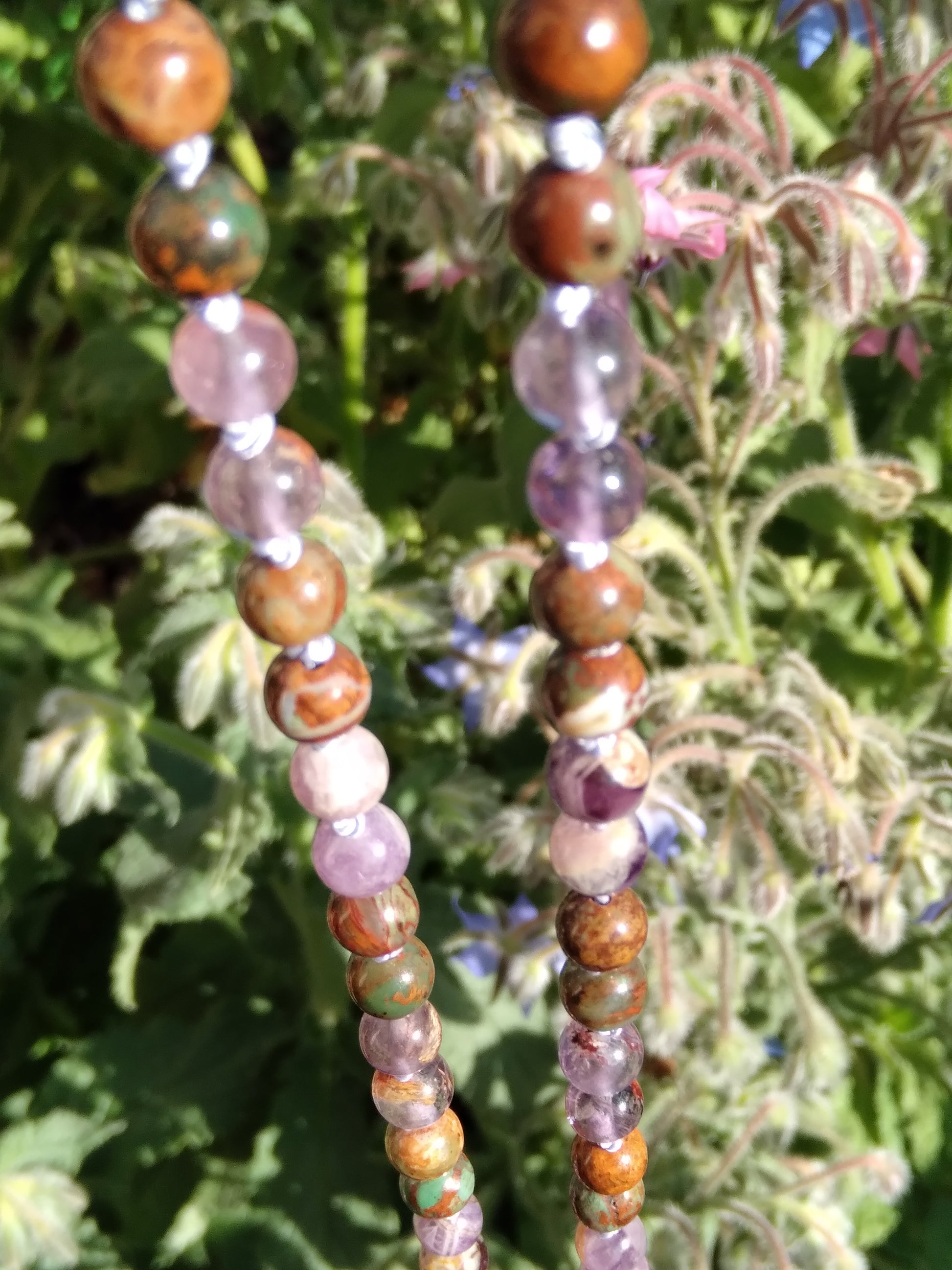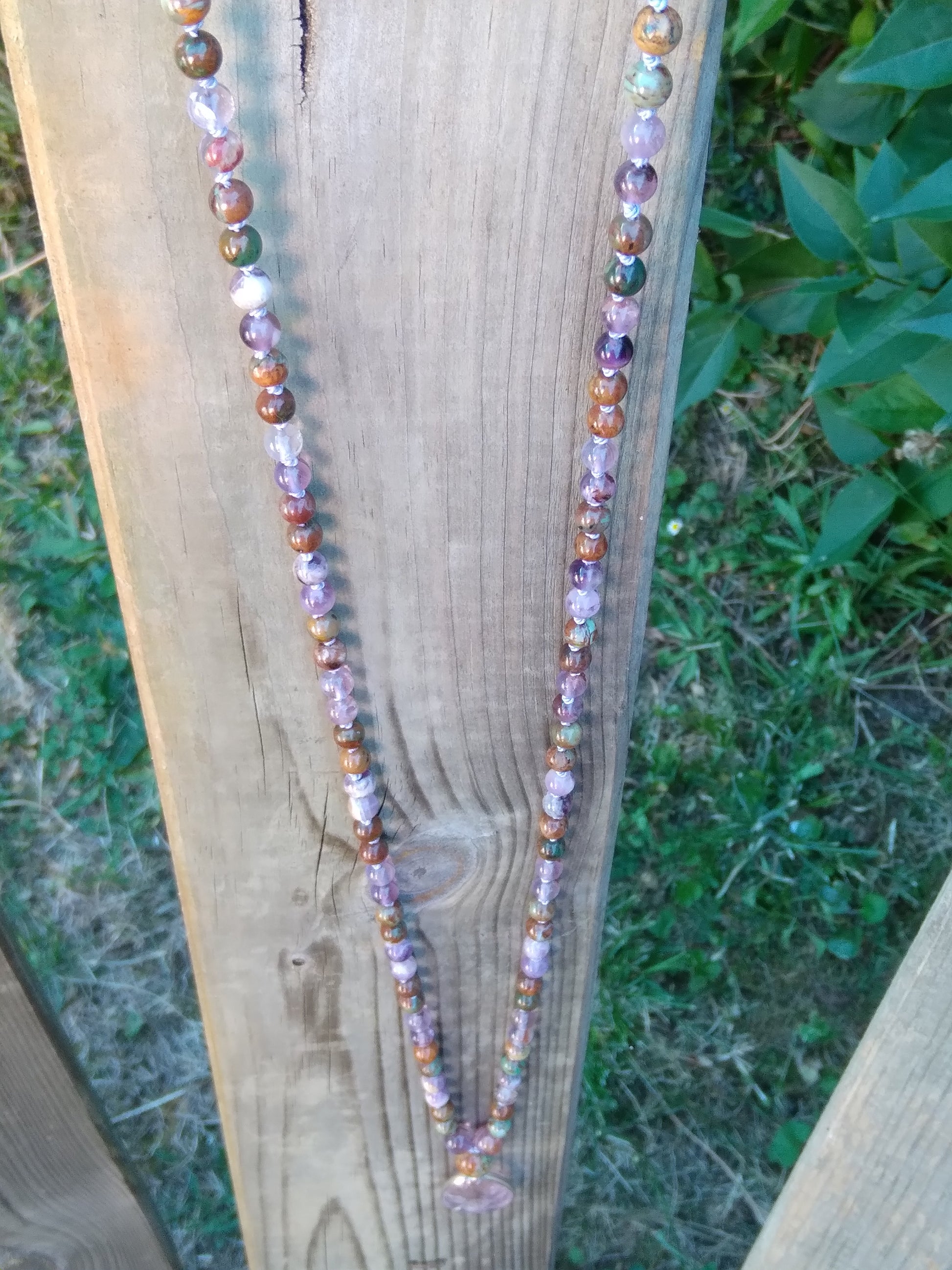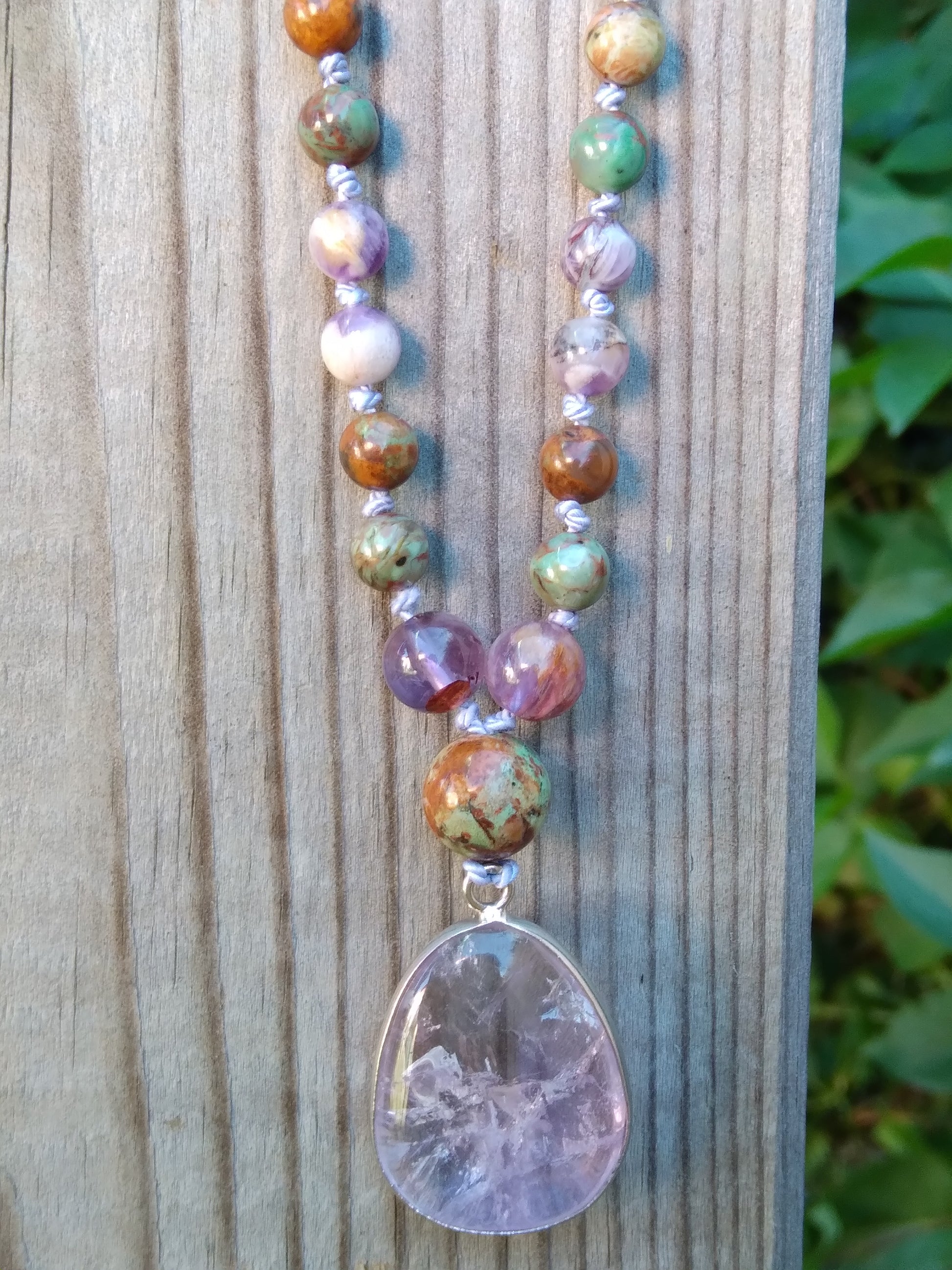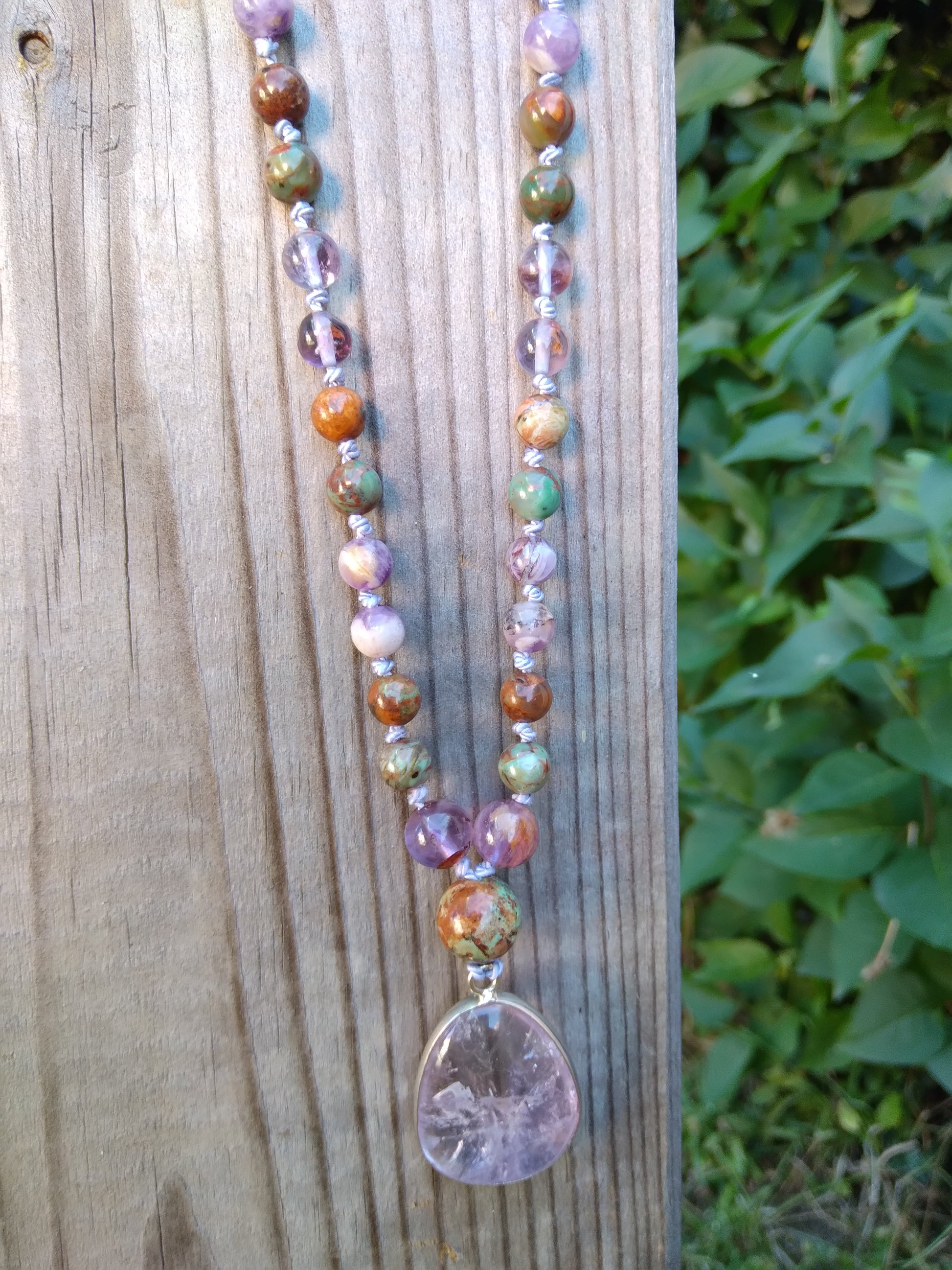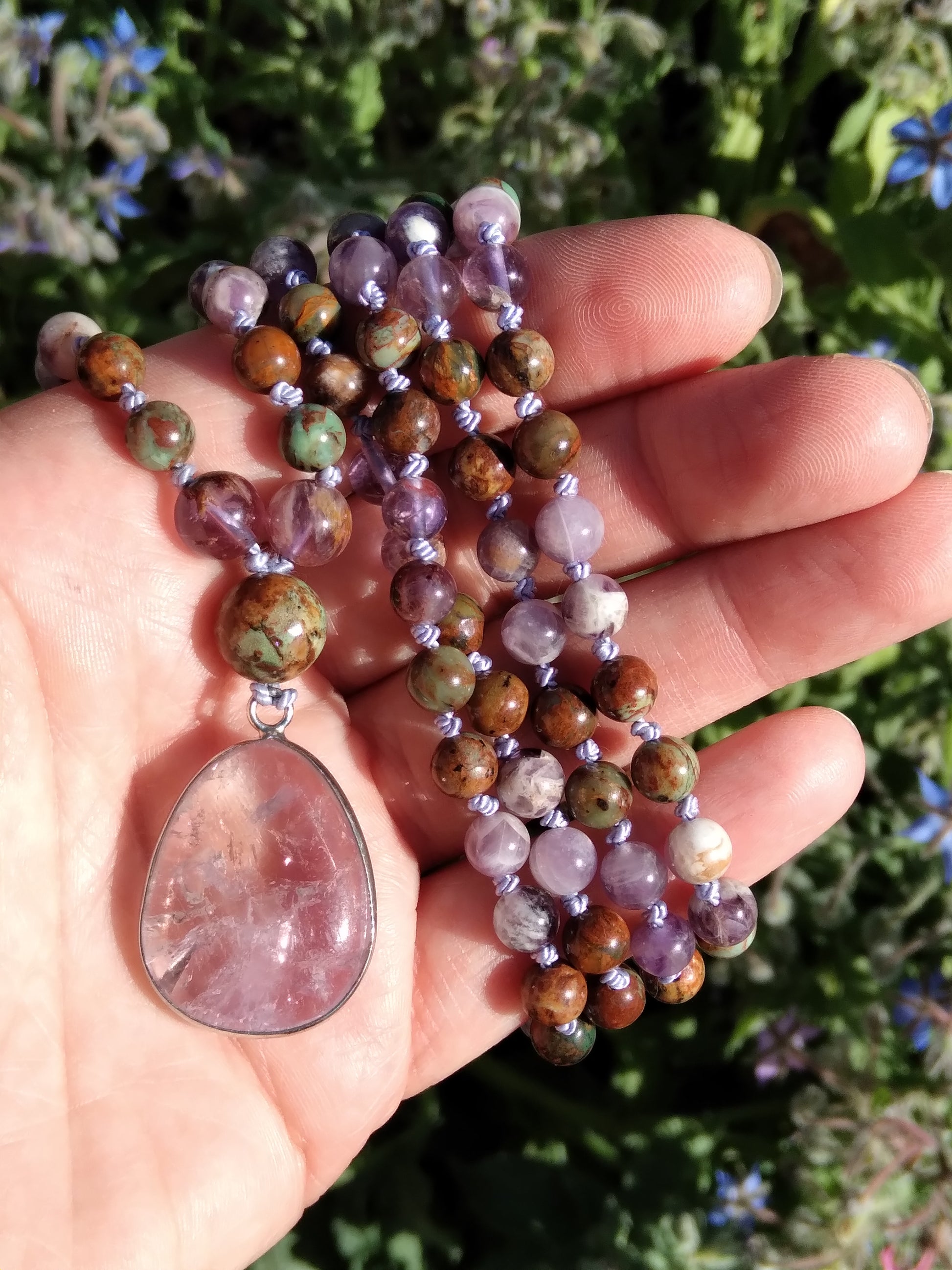 Union de l'améthyste et du jade quartzeux pour ce mala noué