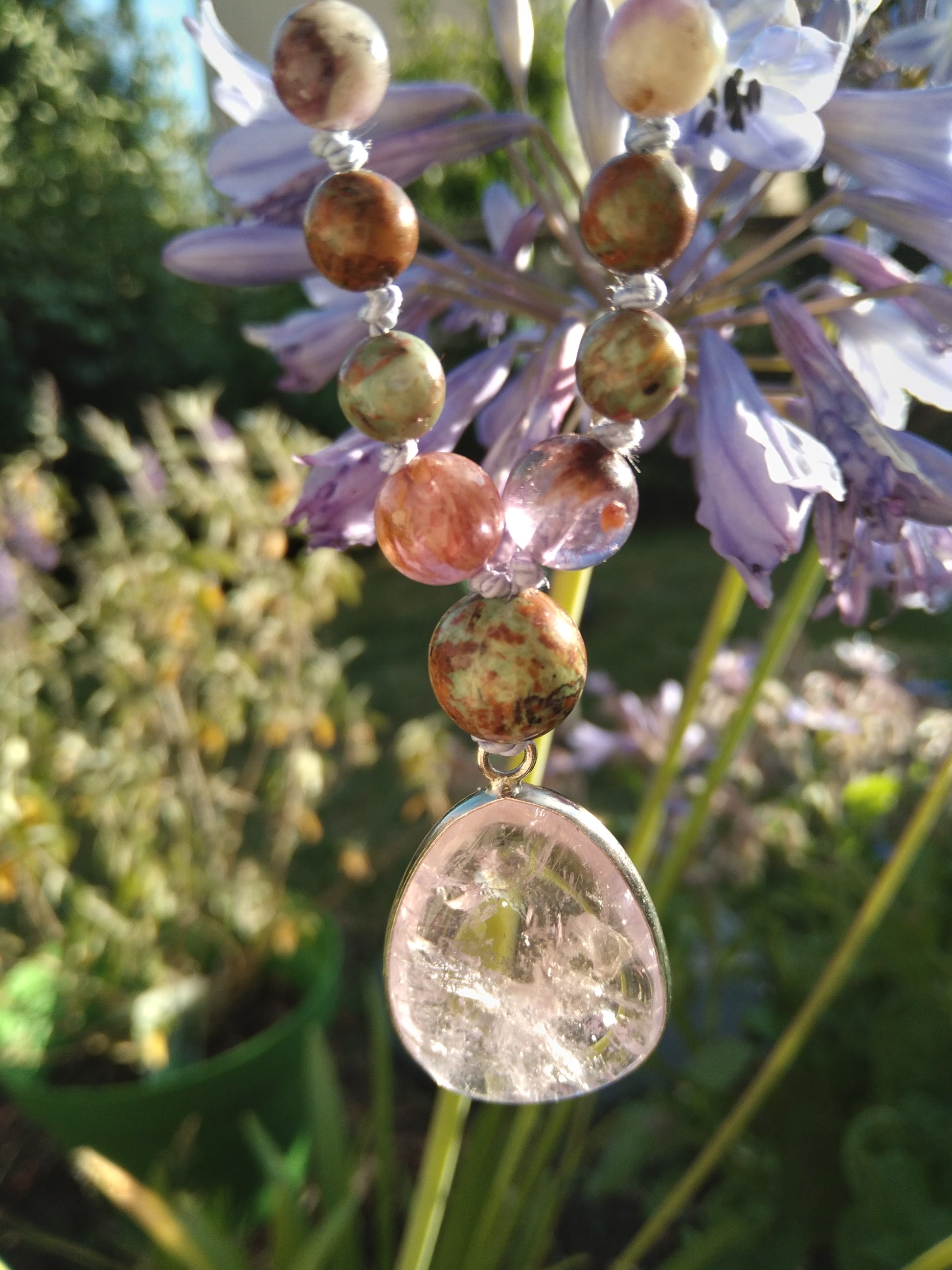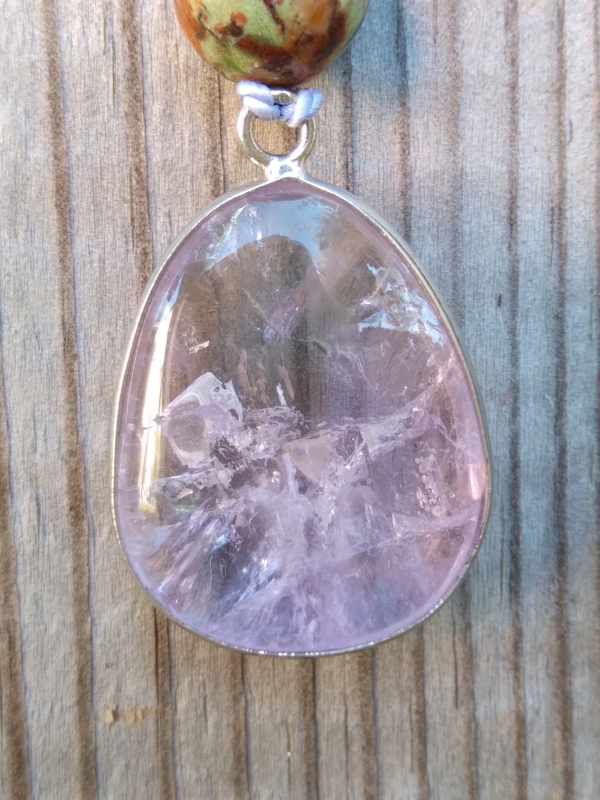 Un beau pendentif en amétrine achève cet ouvrage fait main avec amour.