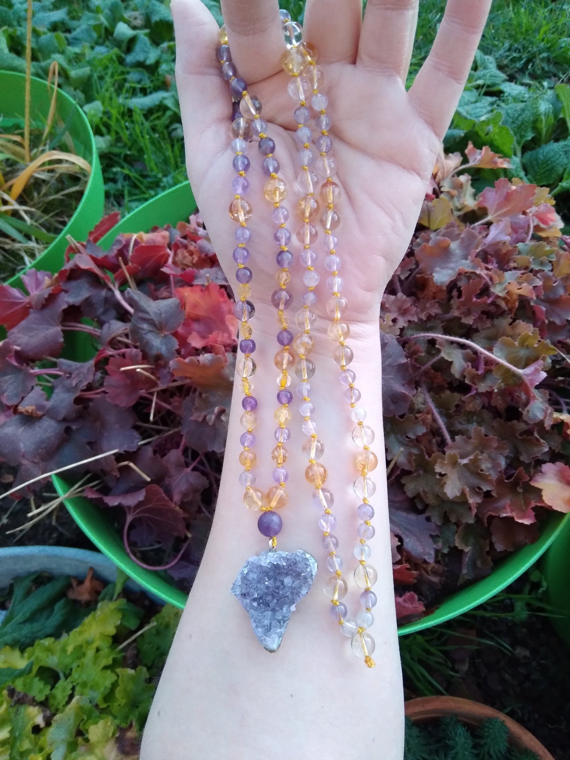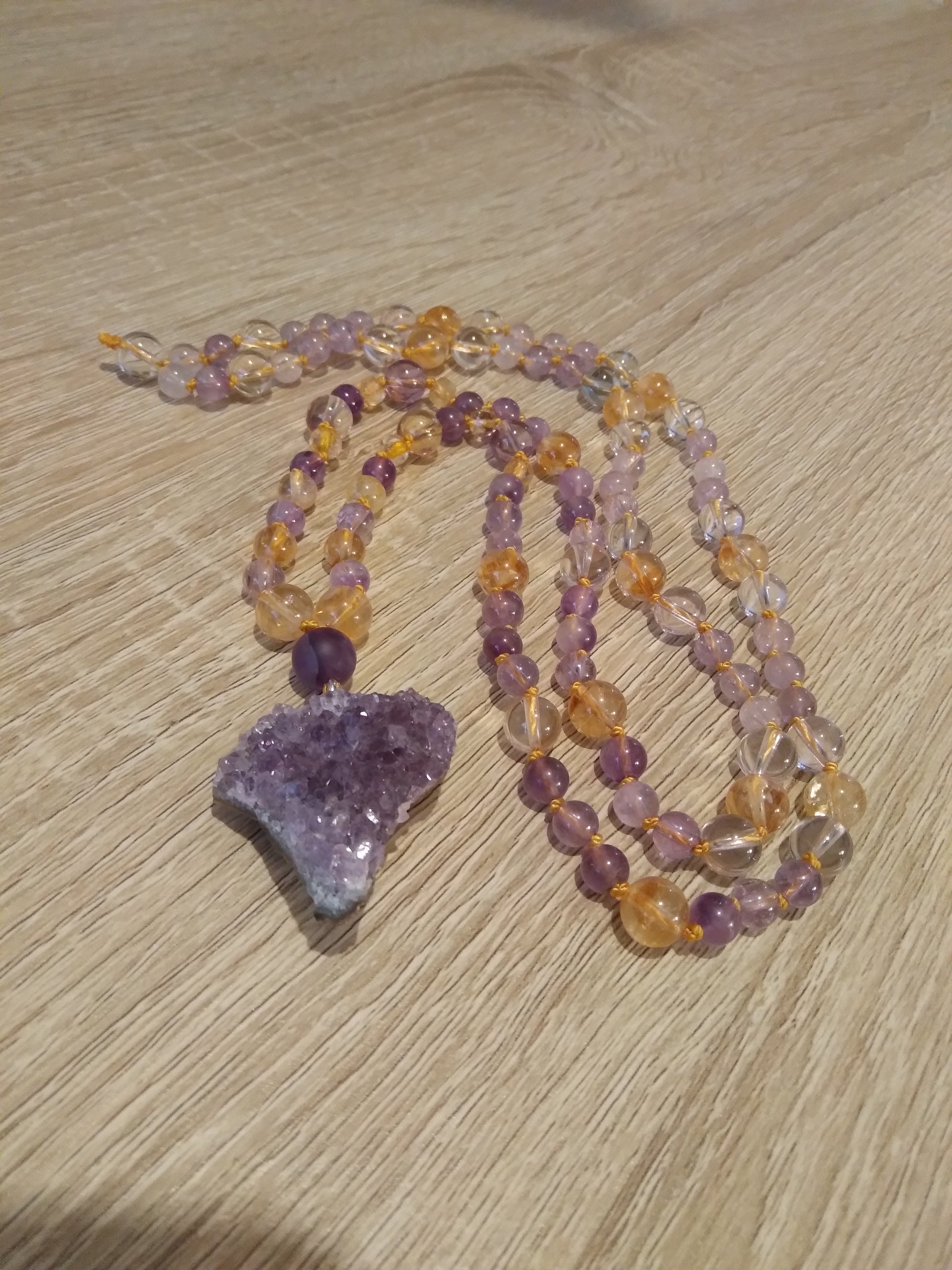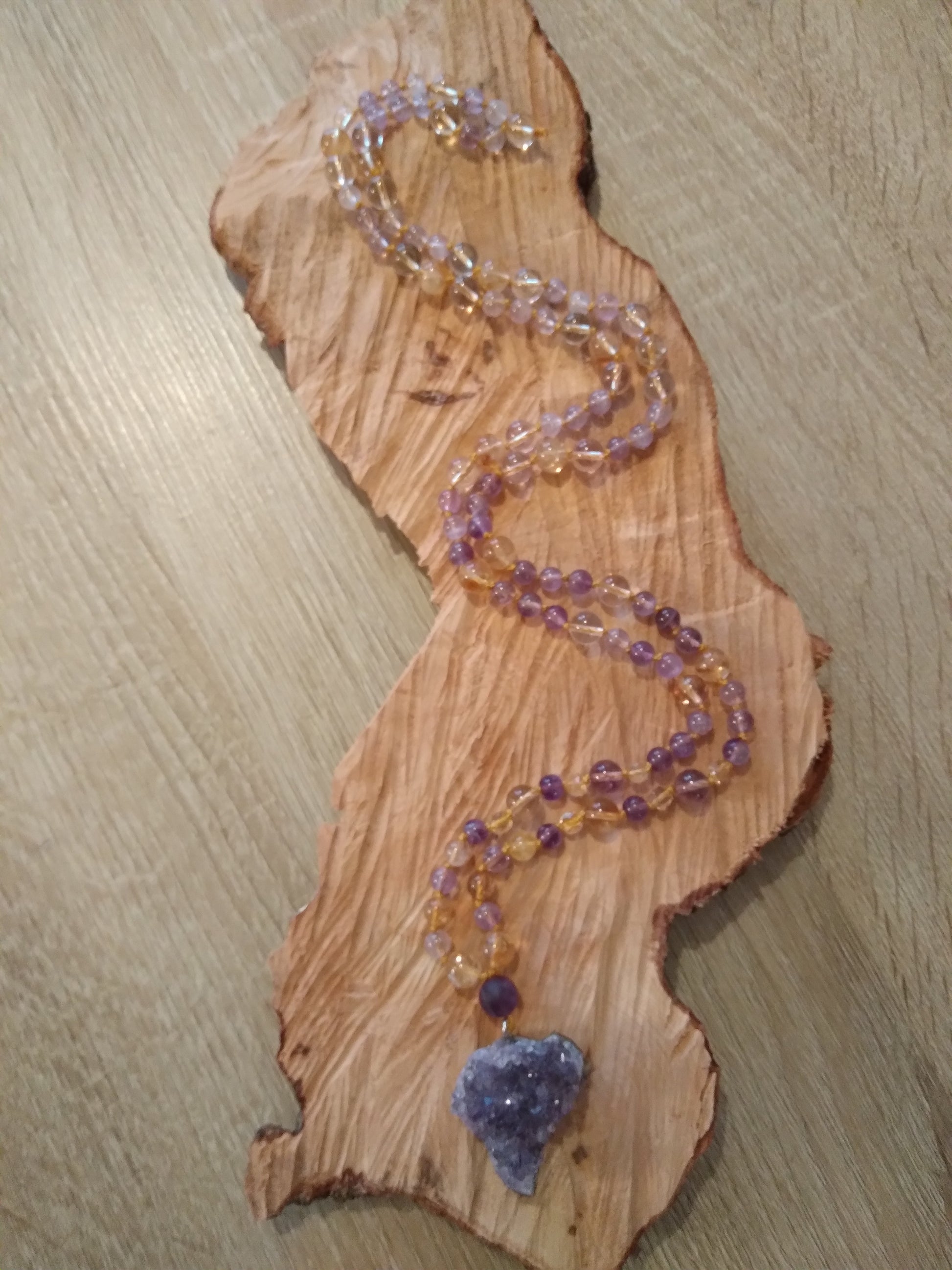 Mala "Aura" composé de 108 perles en pierre naturelle d'amétrine, de citrine et d'améthyste