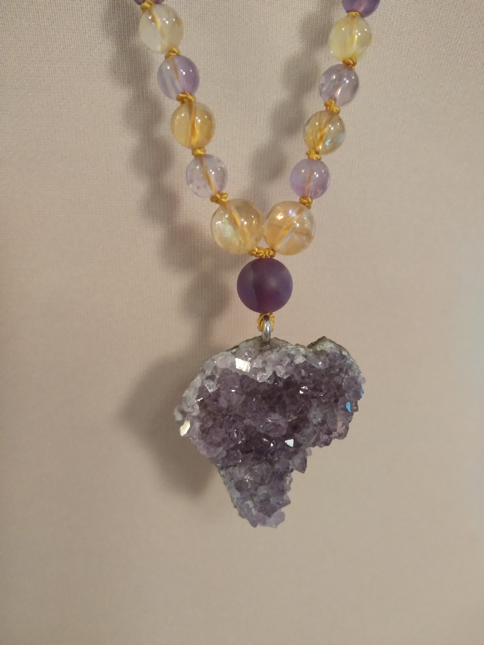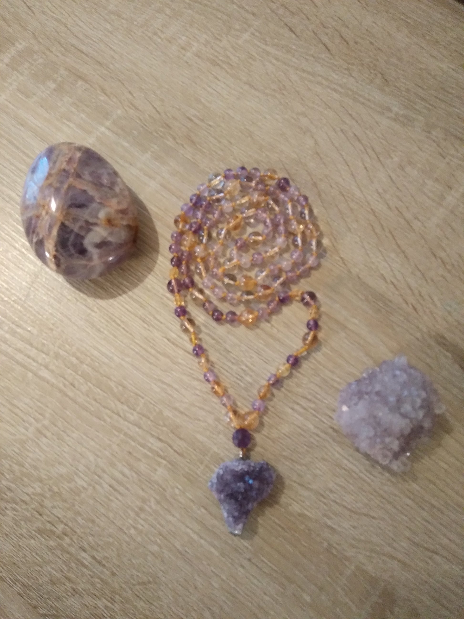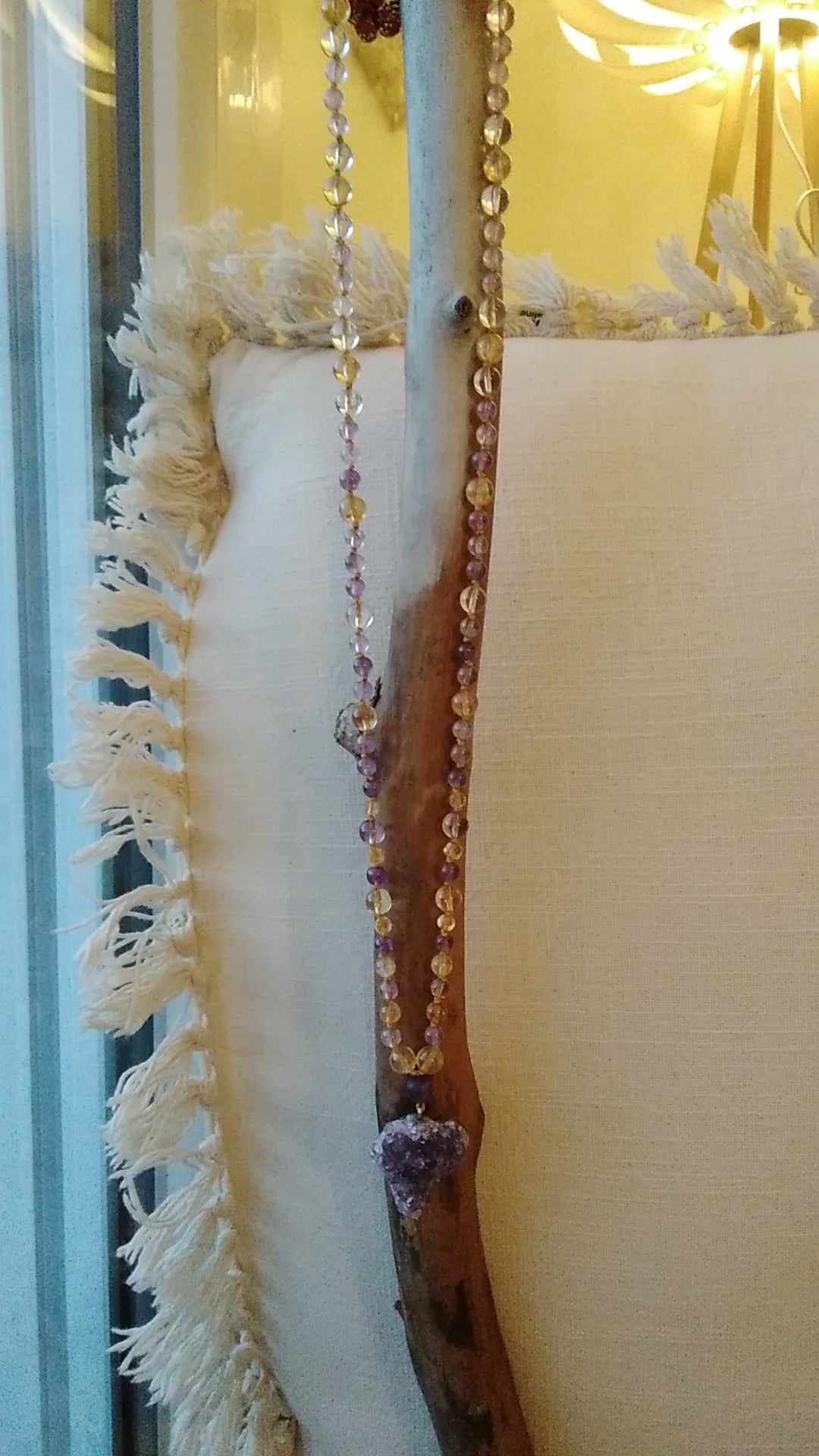 Mala "Aura" composé de 108 perles en pierre naturelle d'amétrine, de citrine et d'améthyste