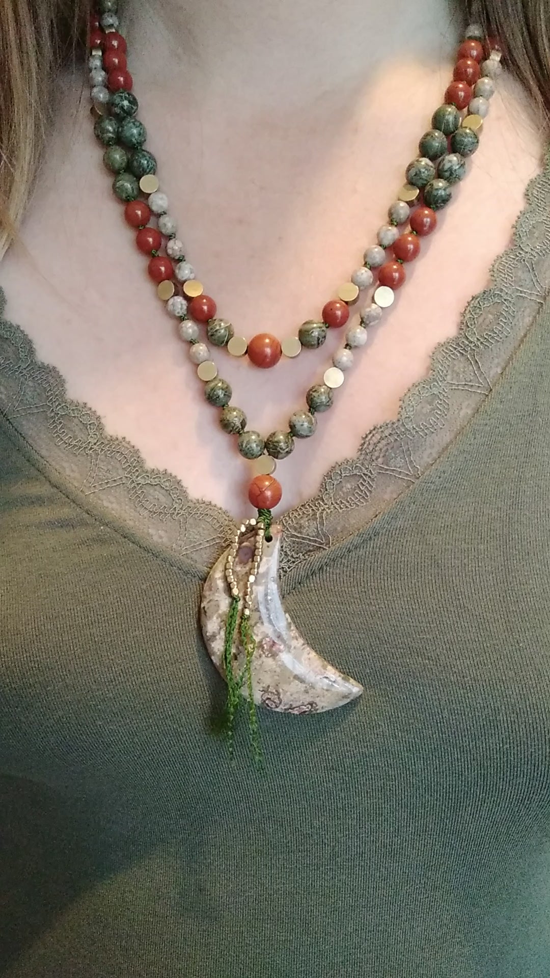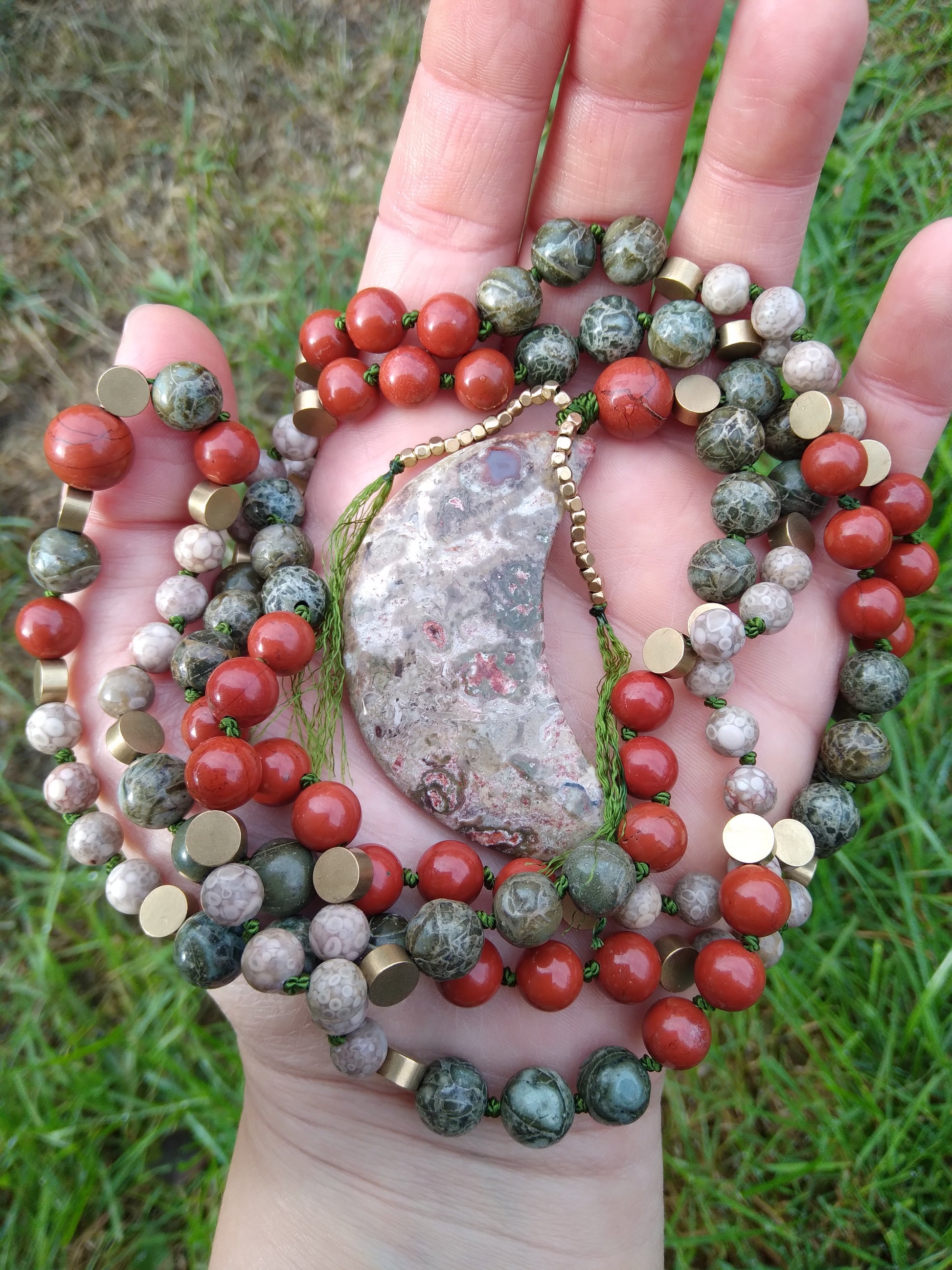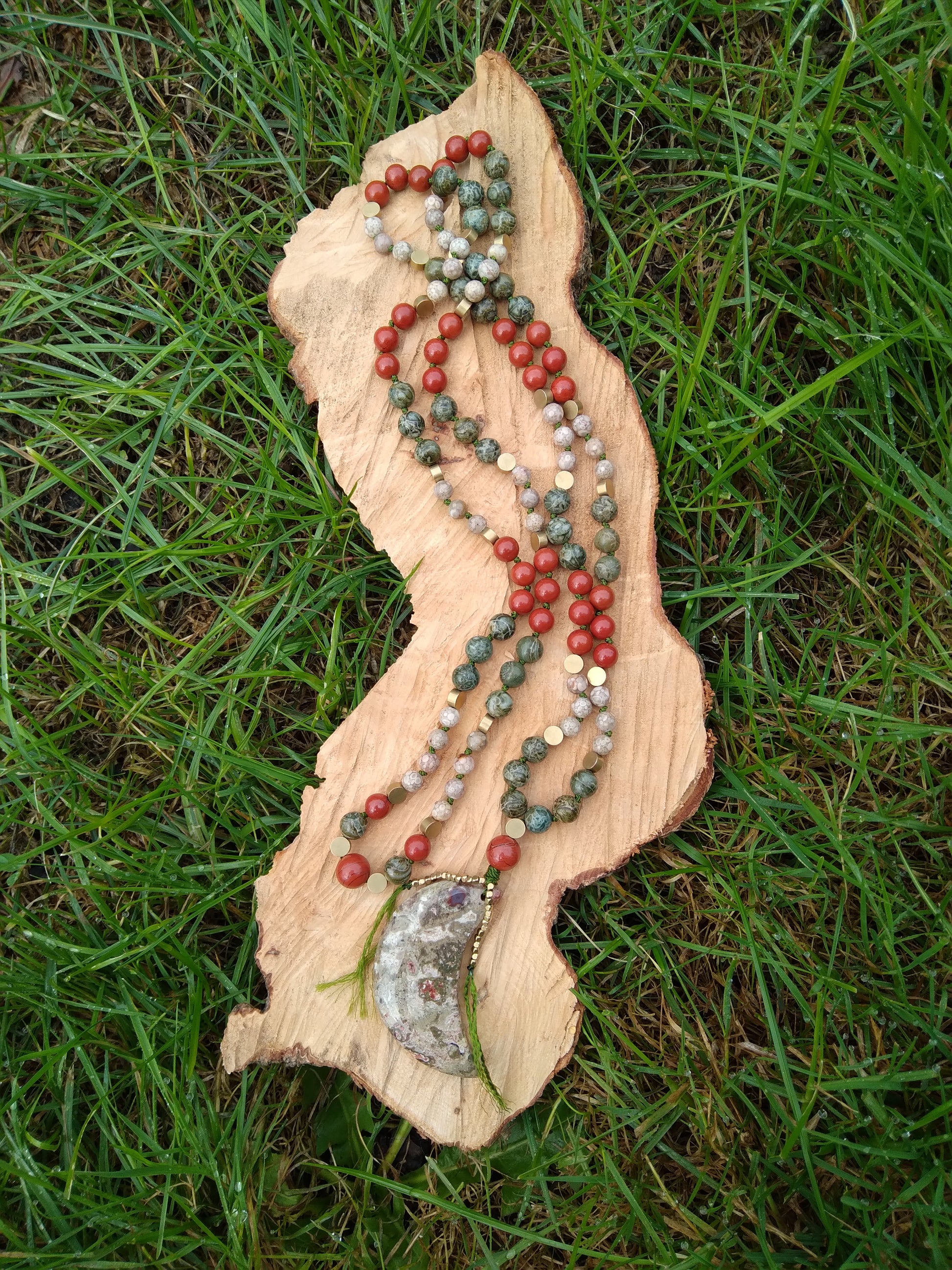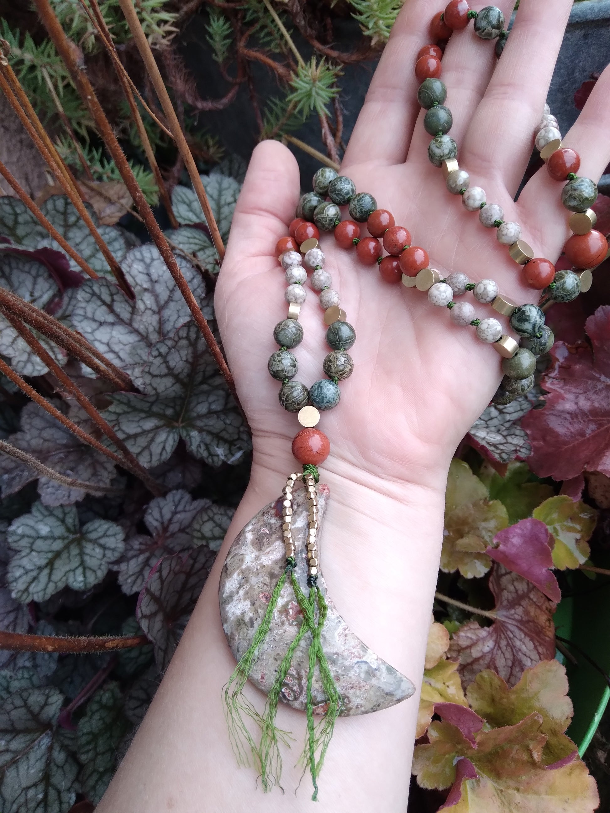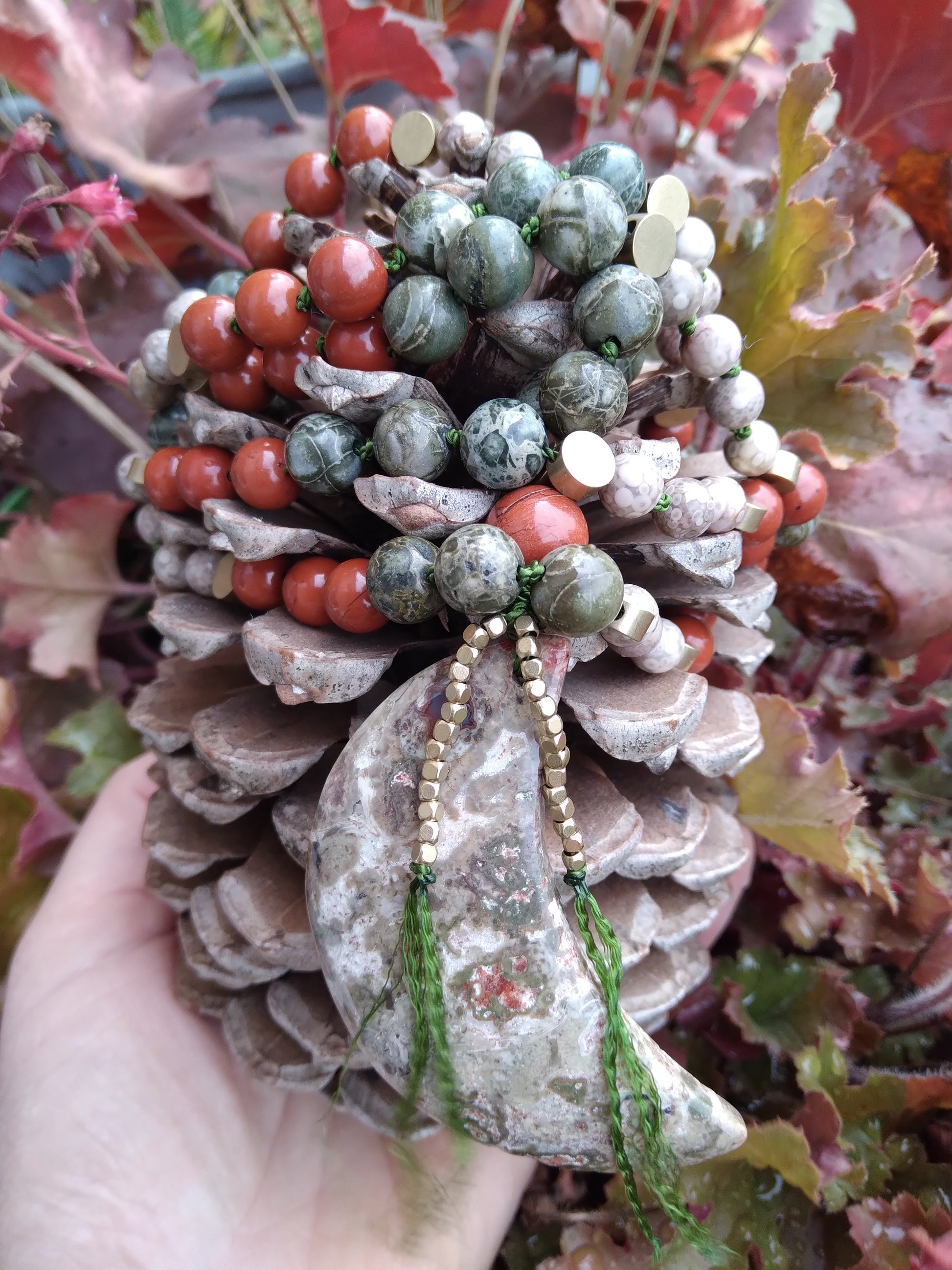 Mala "Ancrage et connexion" composé de 108 perles en pierre naturelle, allié d'un retour aux sources nécessaires, une pleine connexion à l'automne ❤️💚