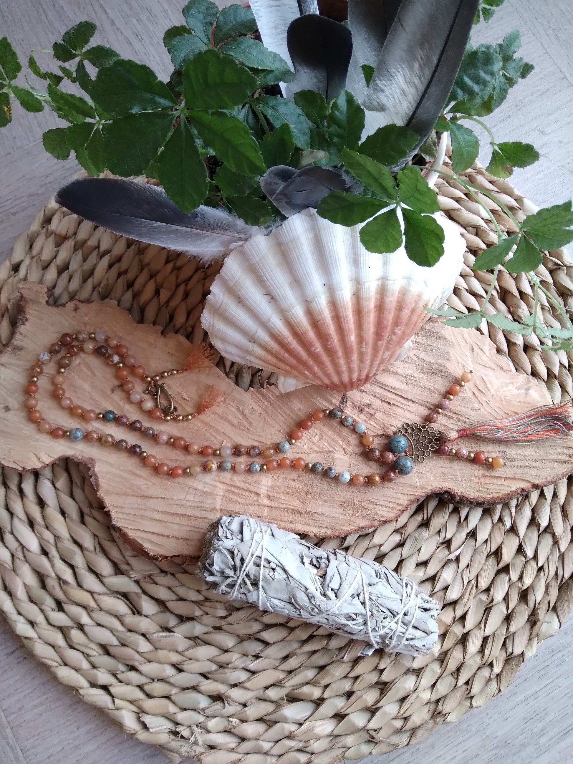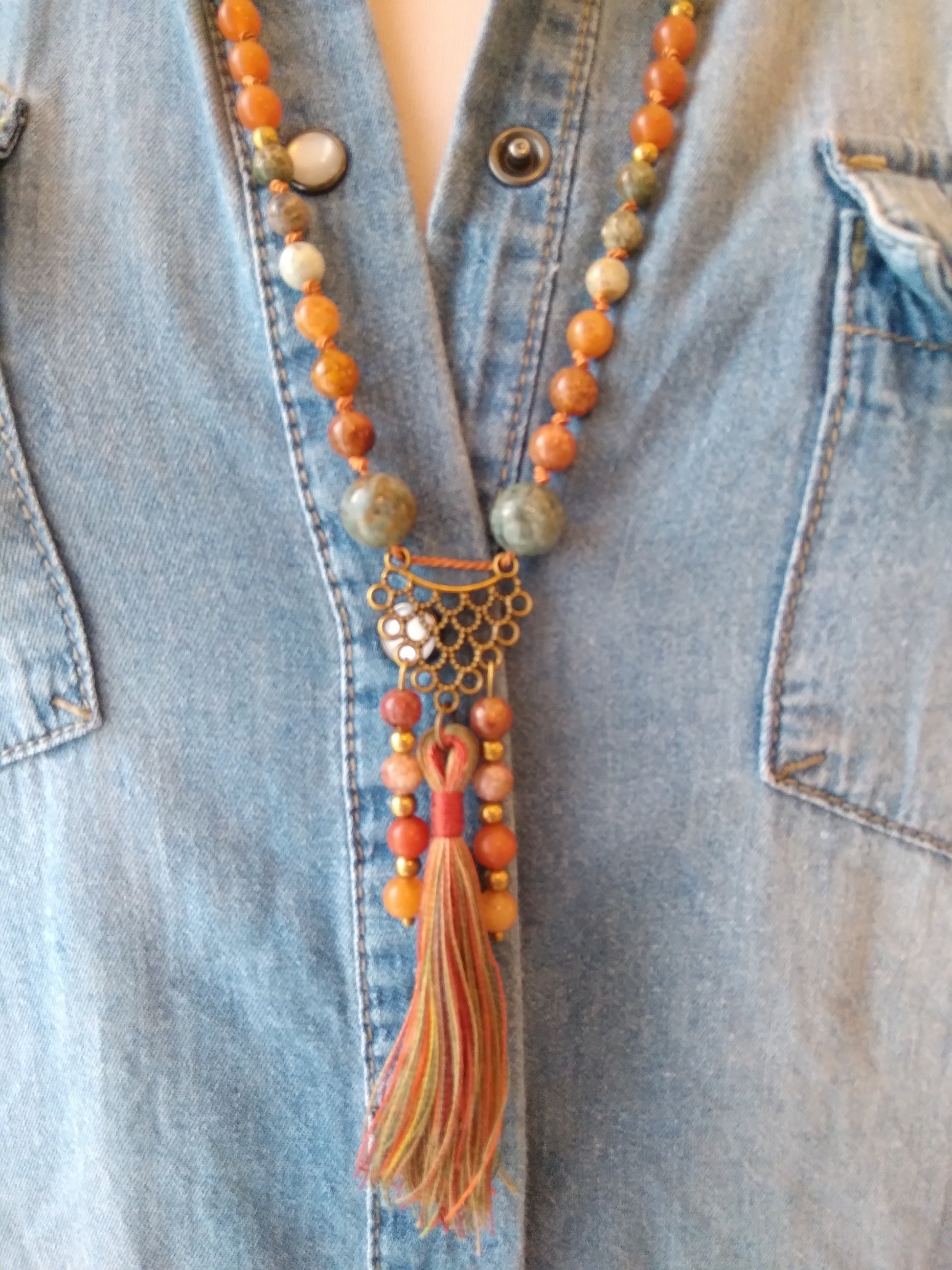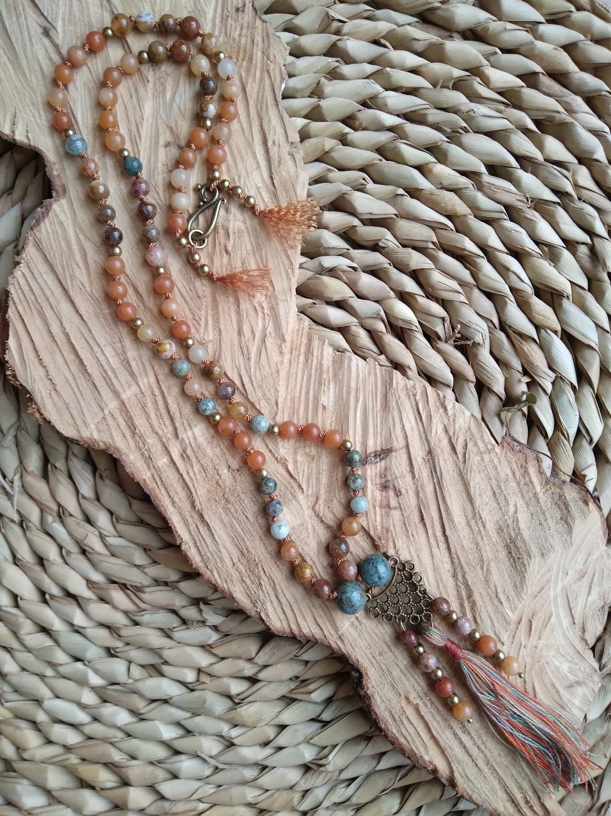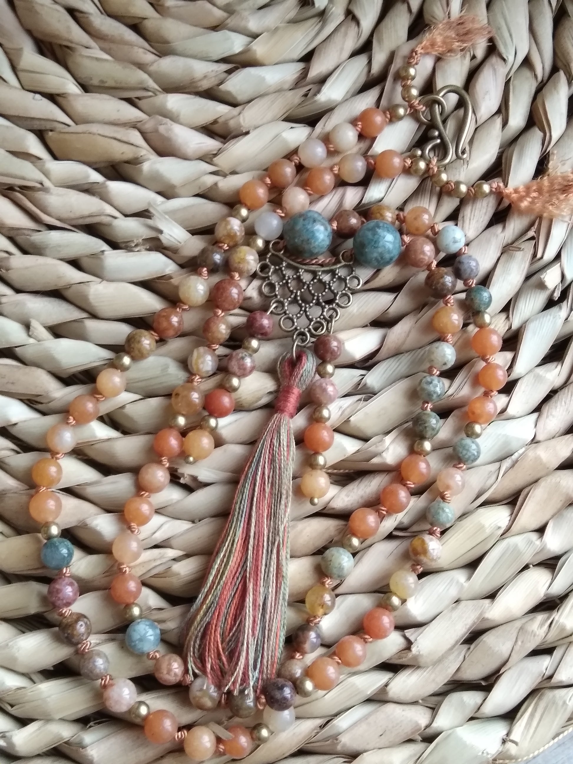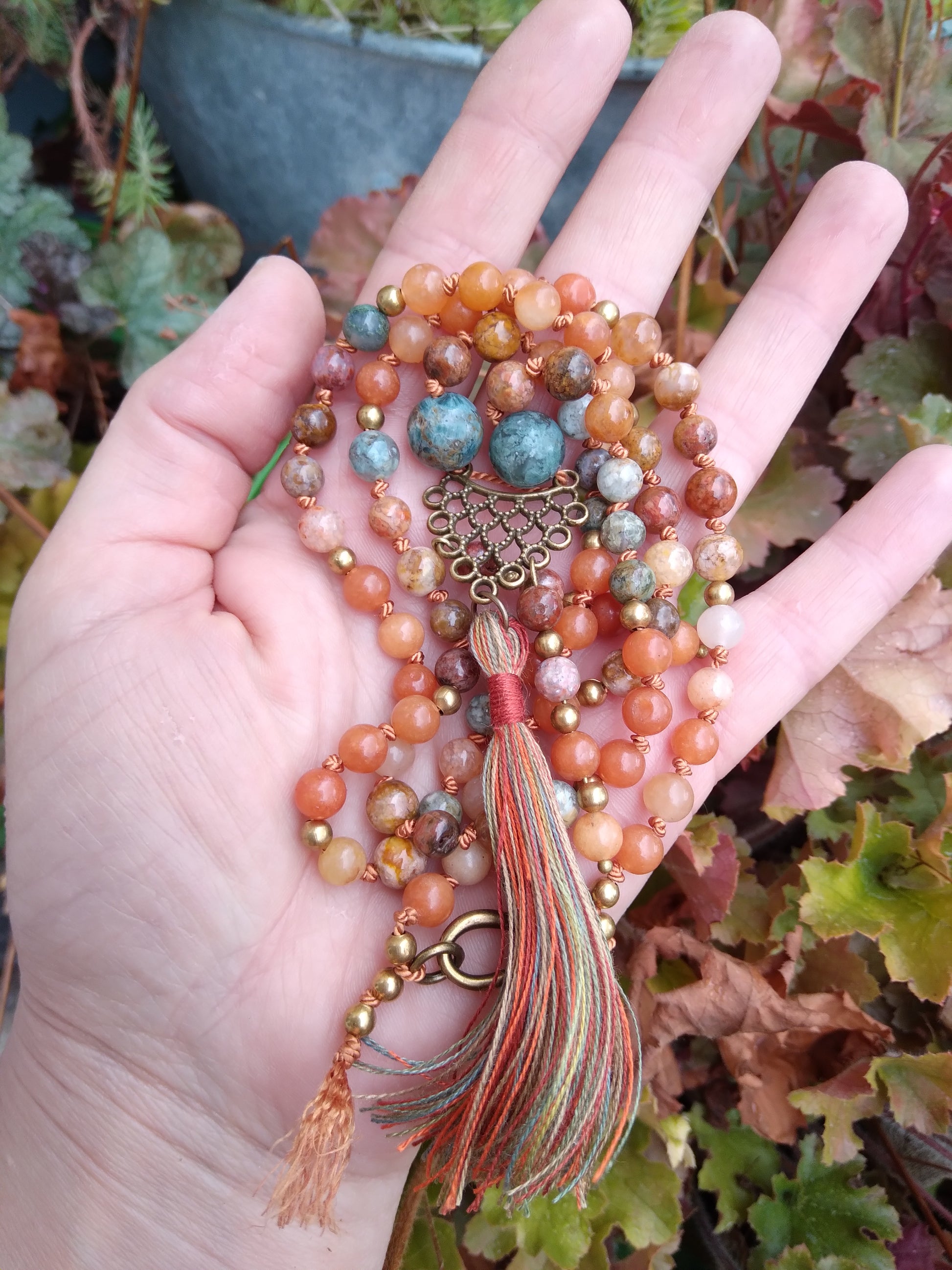 Mala en jaspe océan et aventurine orange "Carpe diem"