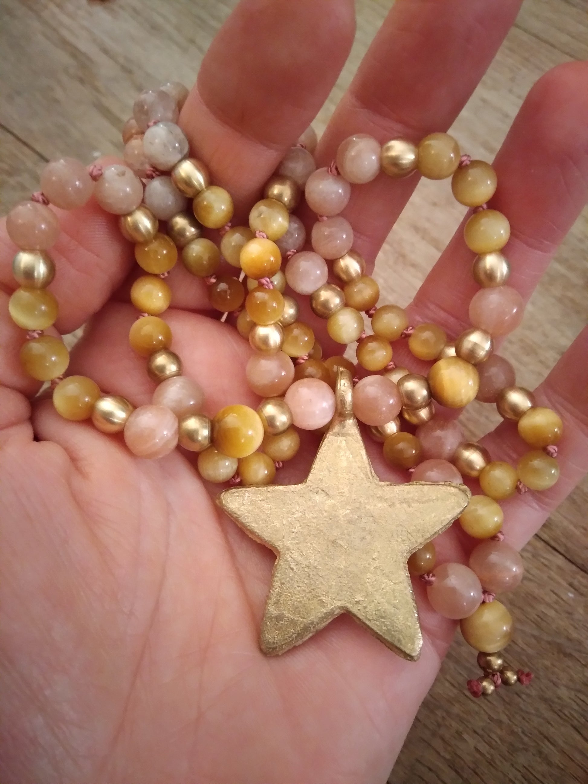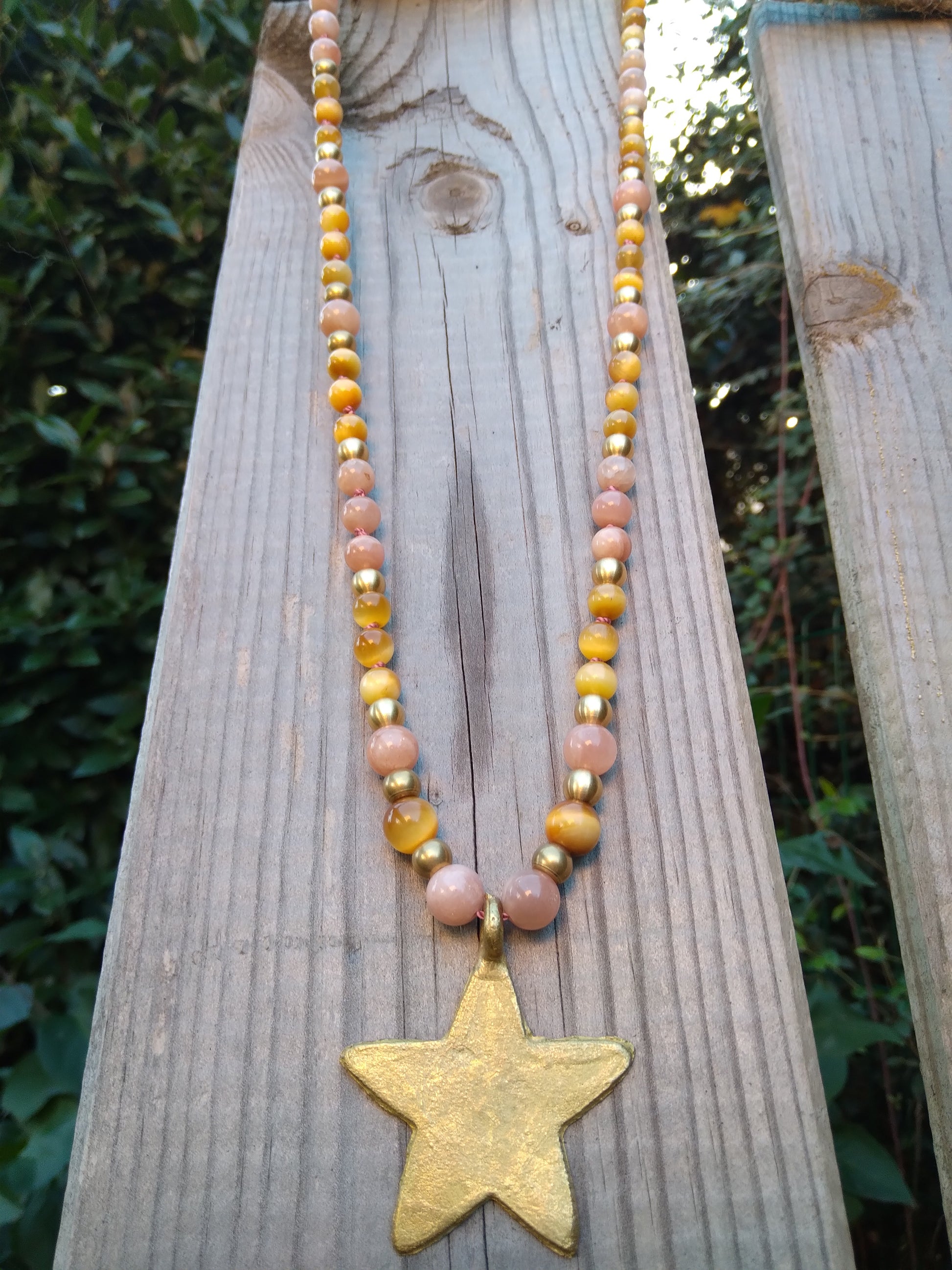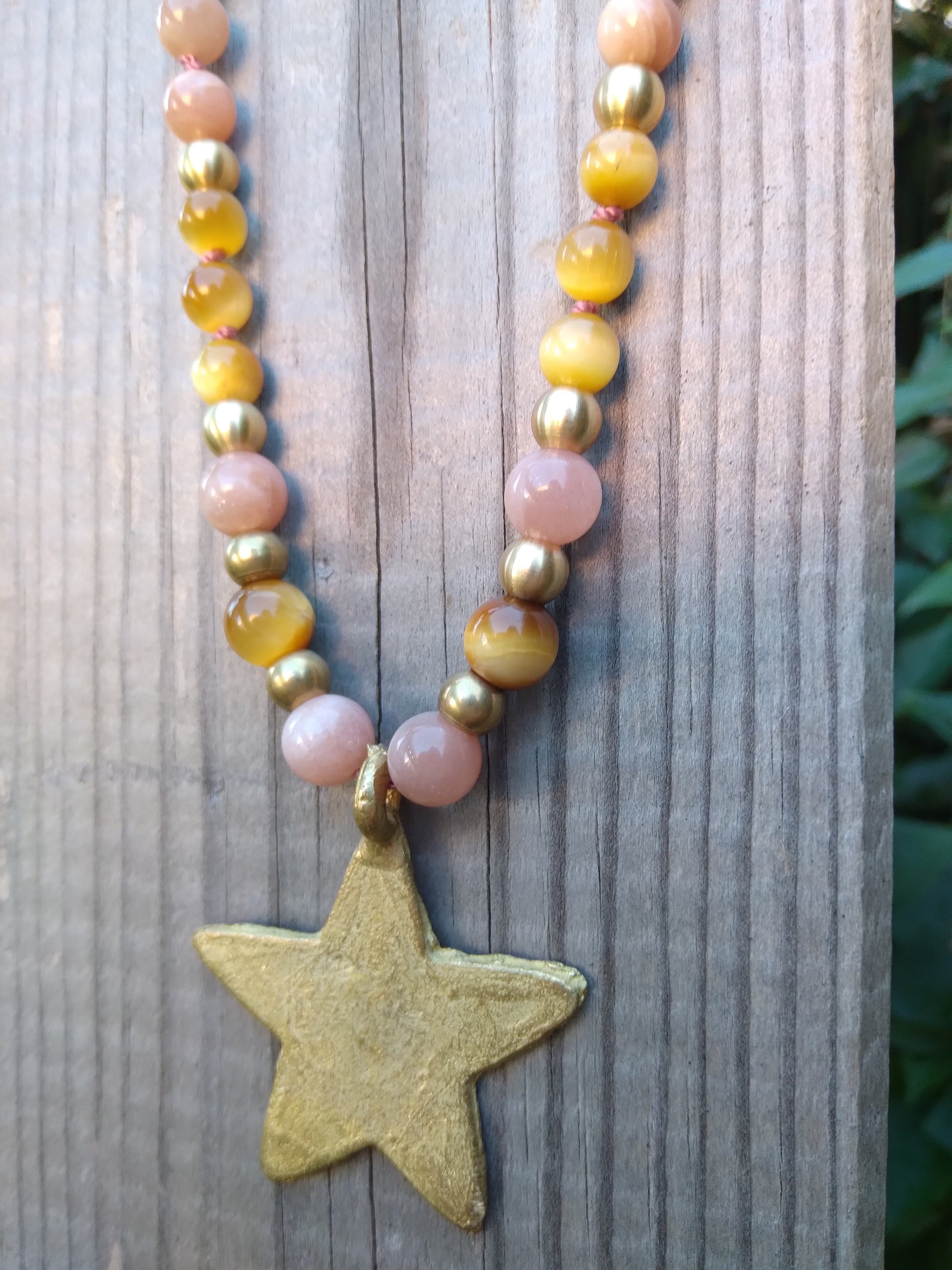 These beautiful stones are combined with raw brass beads and an African bronze star handcrafted using the lost wax technique ♥