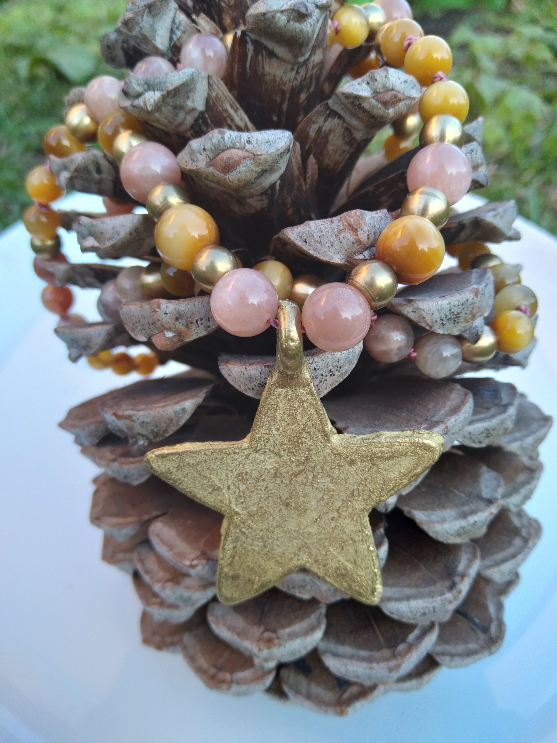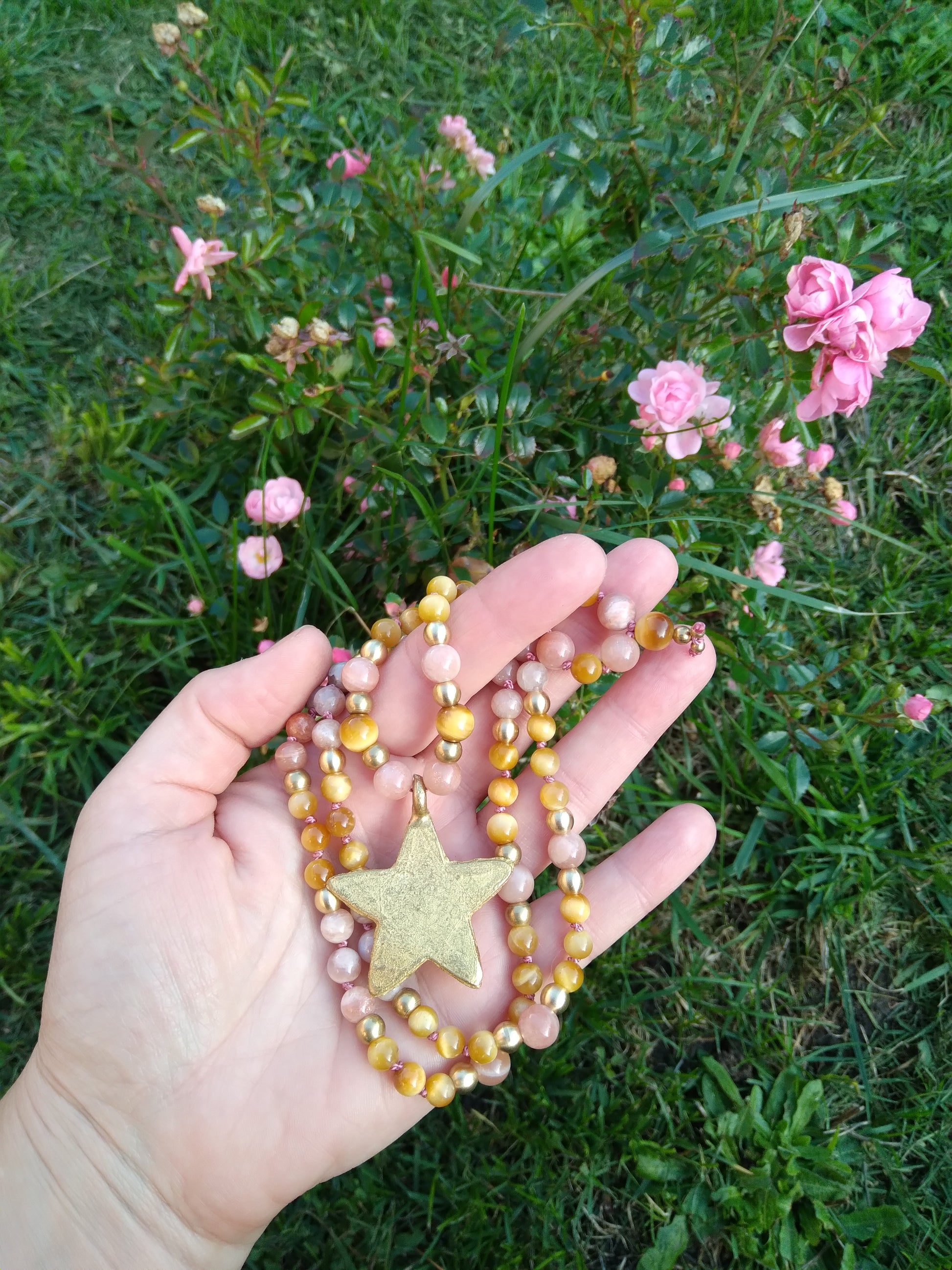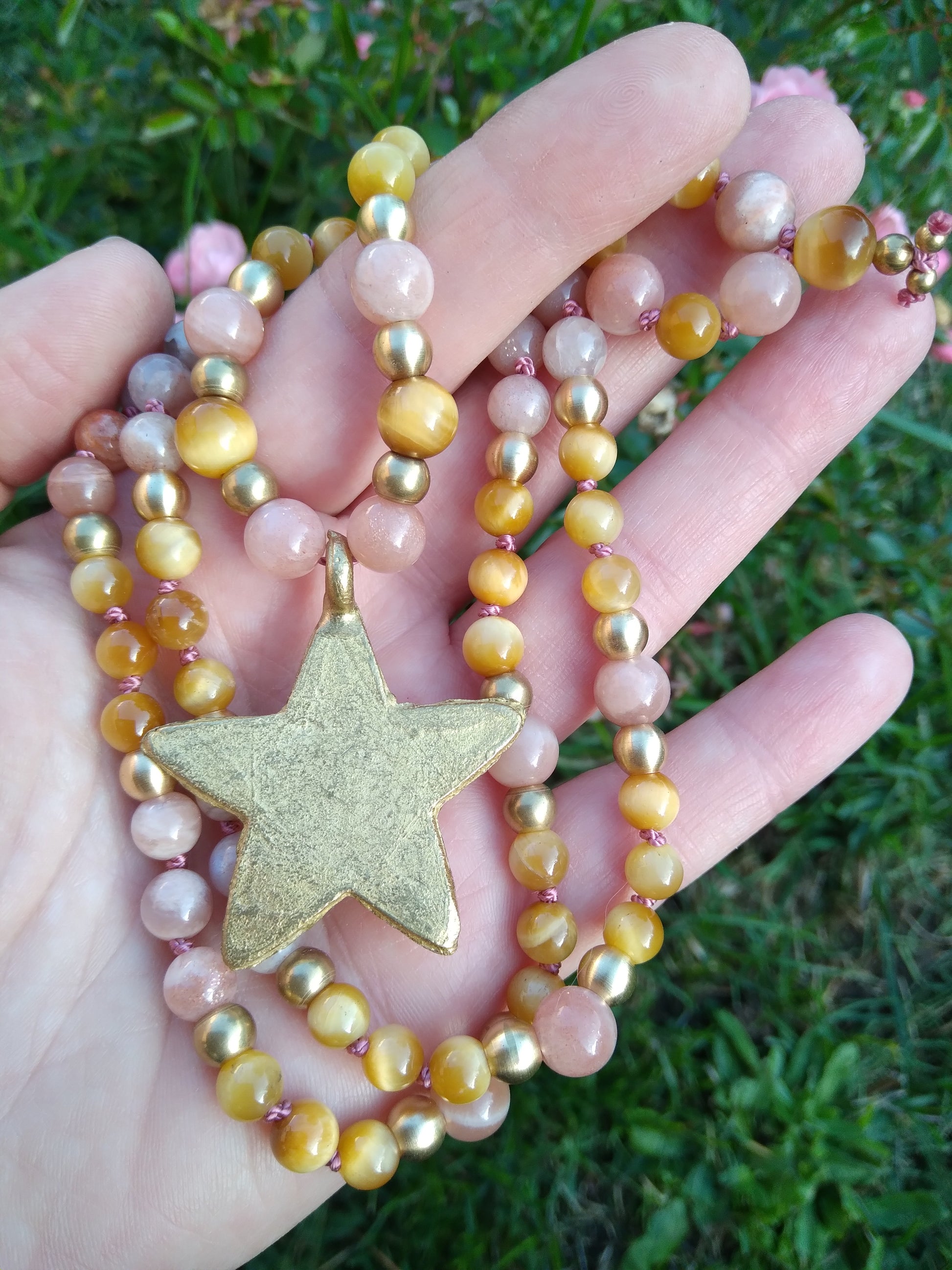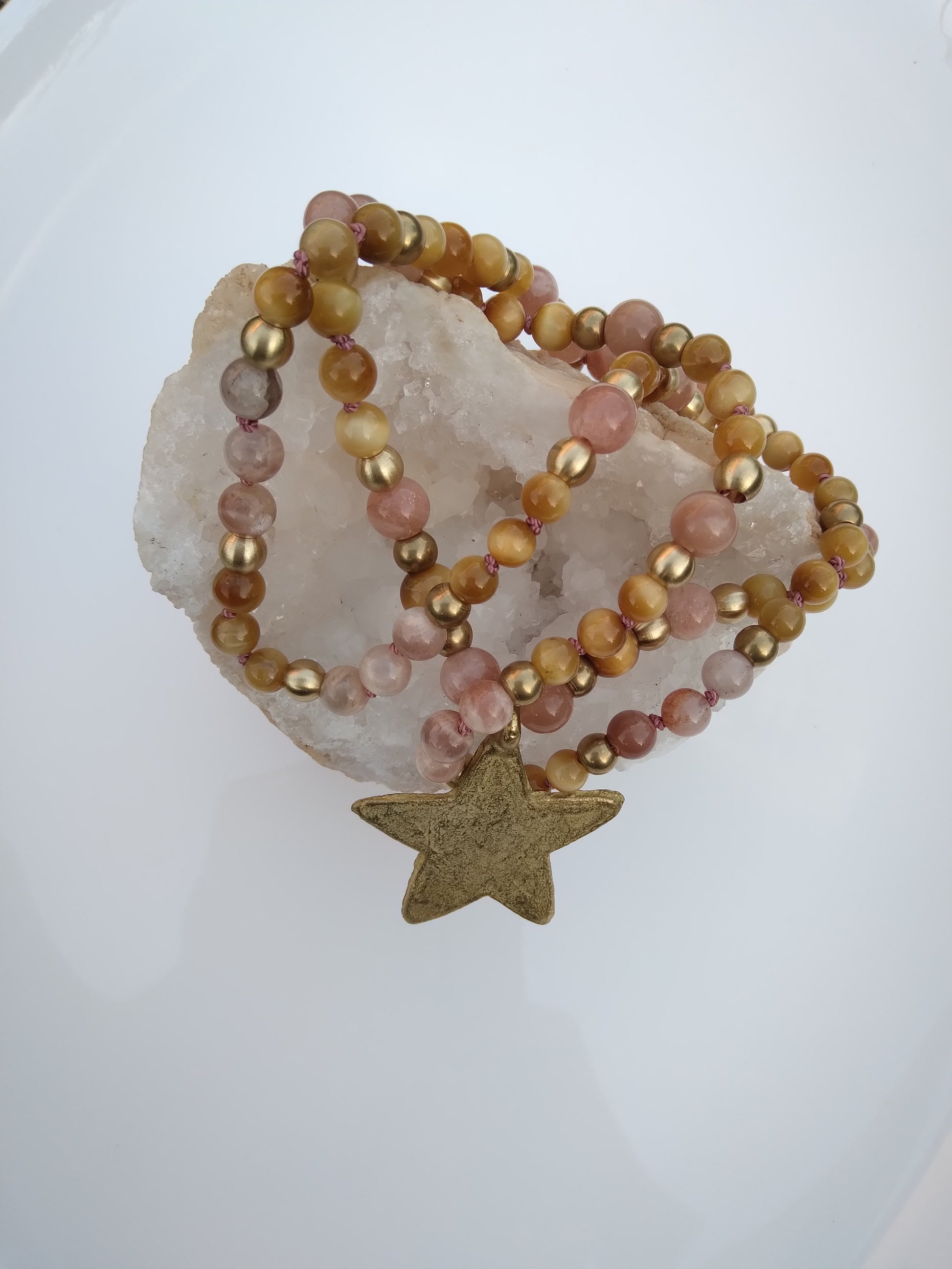 These beautiful stones are combined with raw brass beads and an African bronze star handcrafted using the lost wax technique ♥