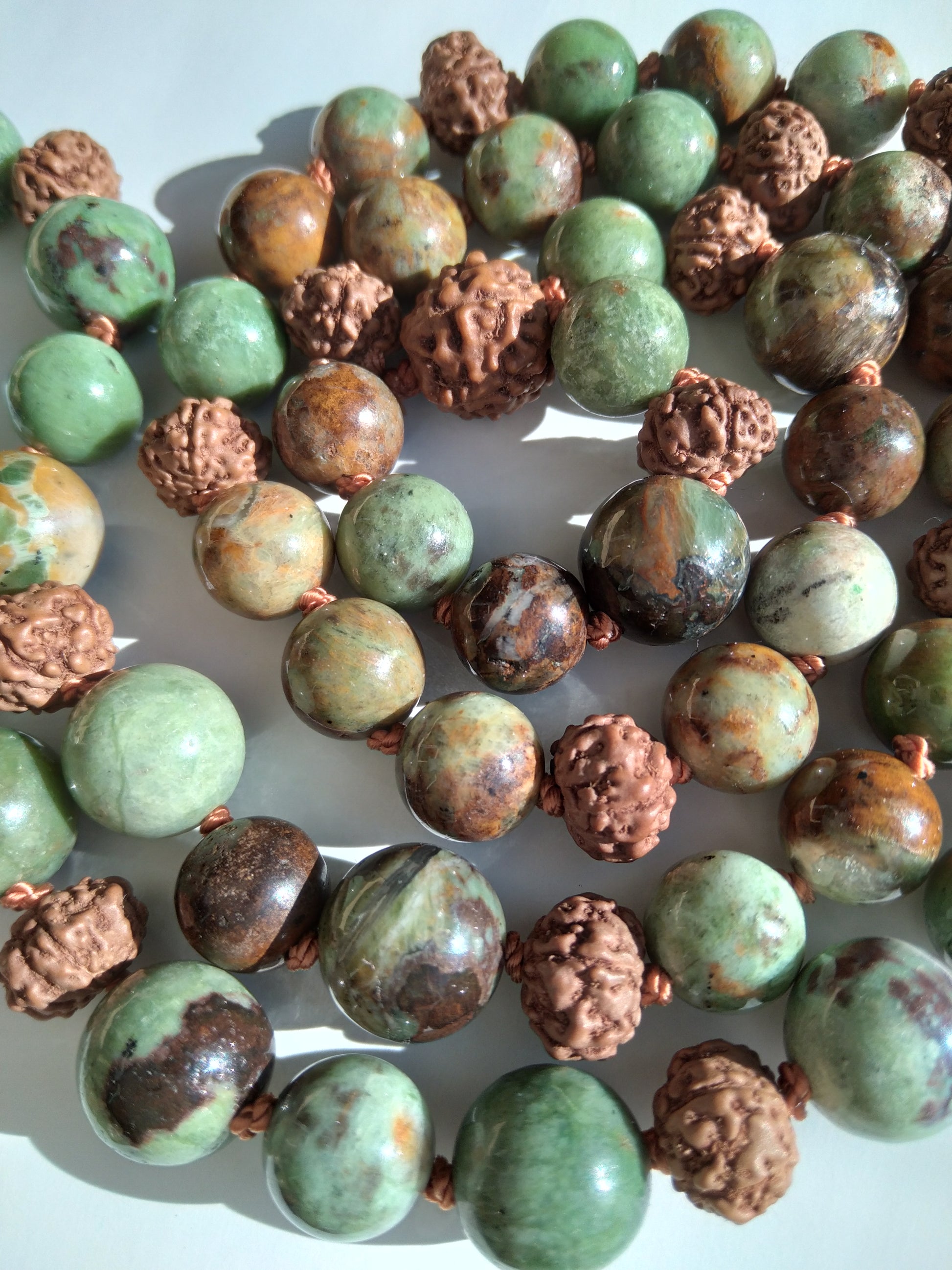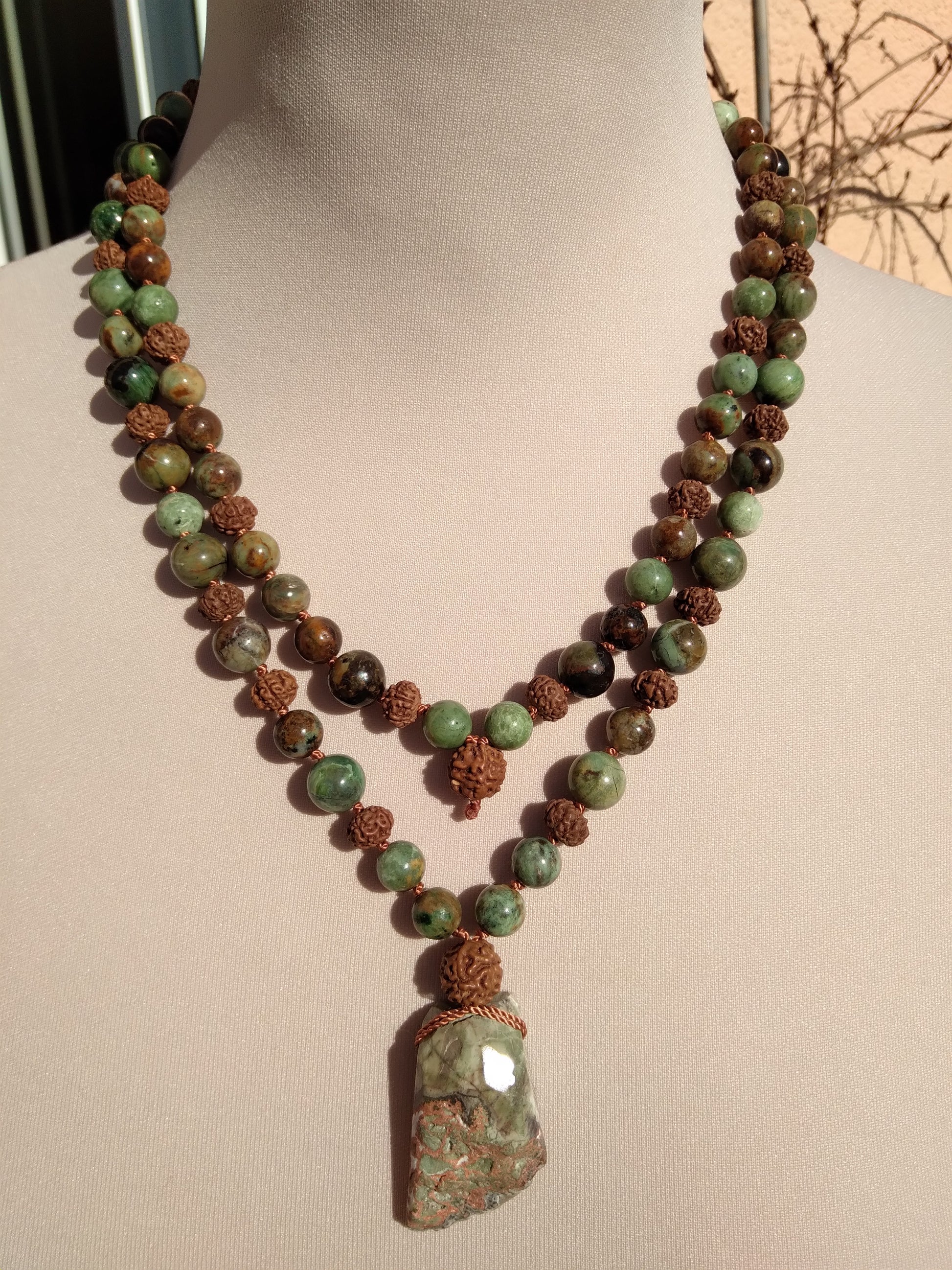 Beautiful connection to the earth and its inner strength with this mala necklace made up of 108 natural stone beads