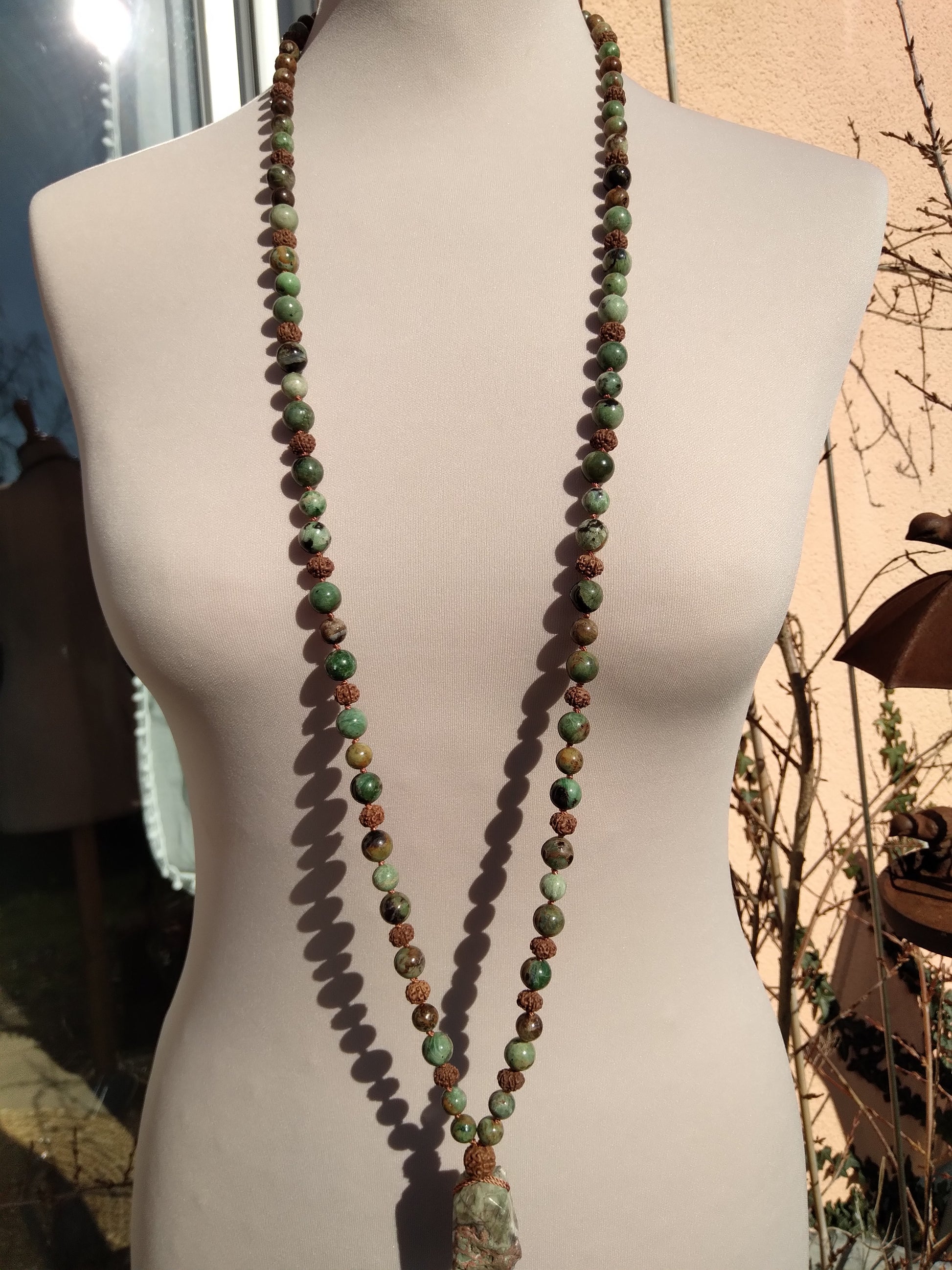 Belle reliance à la terre et à sa force intérieure avec ce collier mala composé de 108 perles en pierre naturelle
