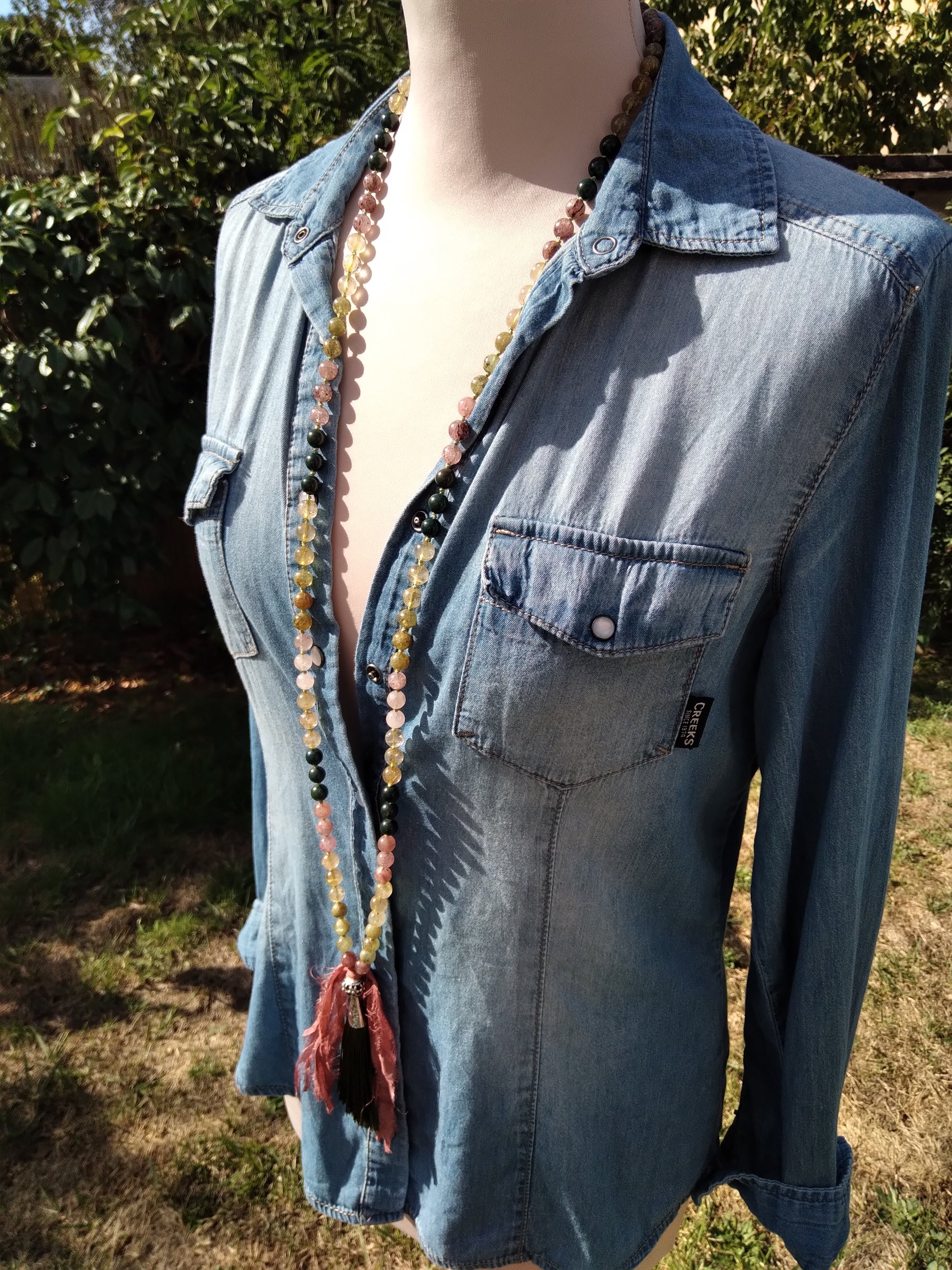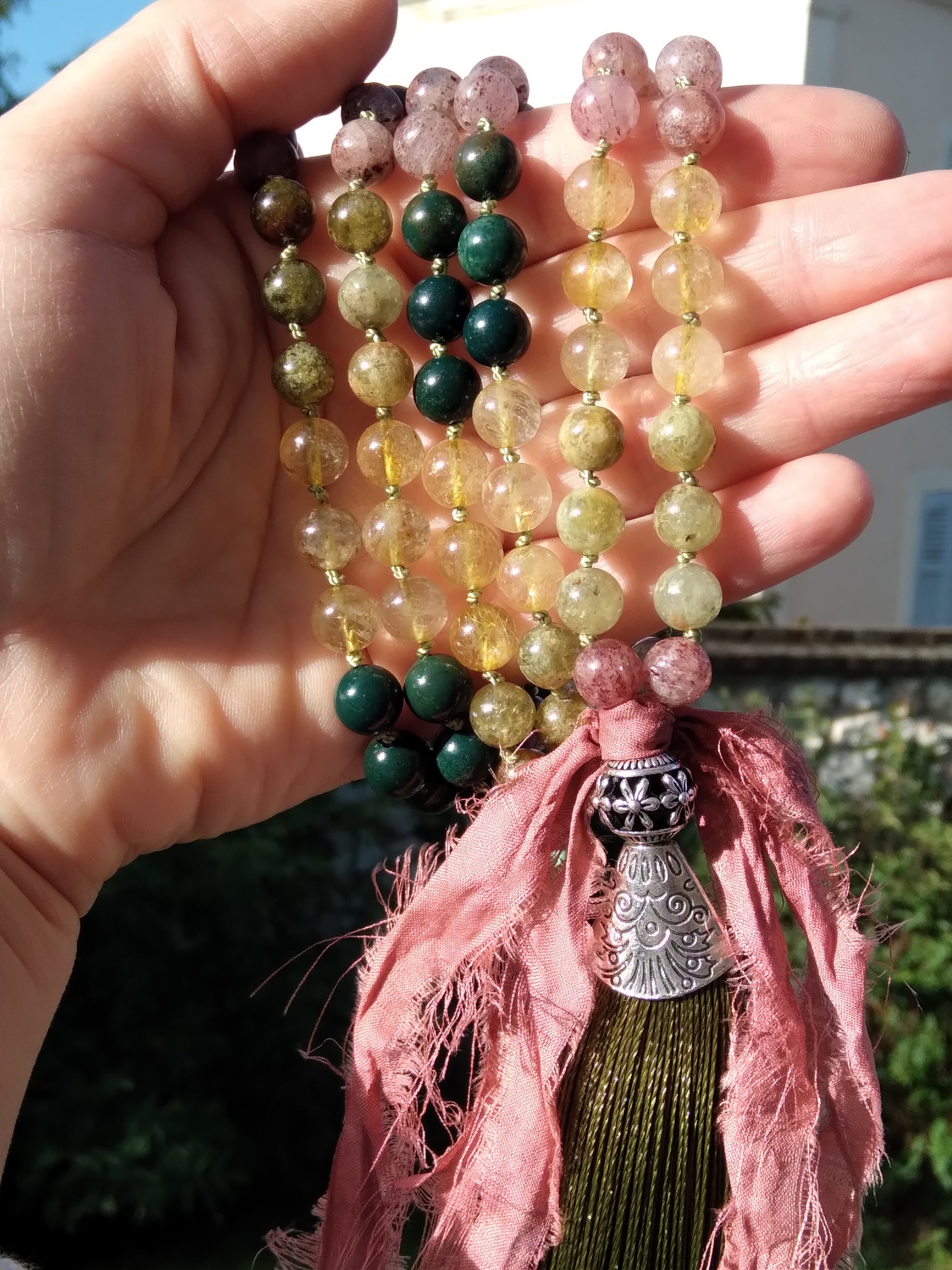 Mala "Résilience heureuse" composé de 108 perles en pierre naturelle