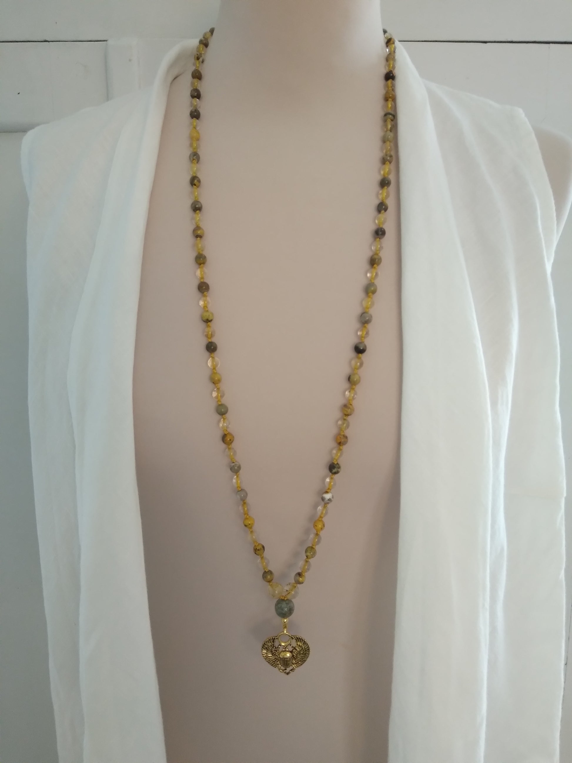 Mala en quartz rutile et jaspe bourdon "Nouveau départ"