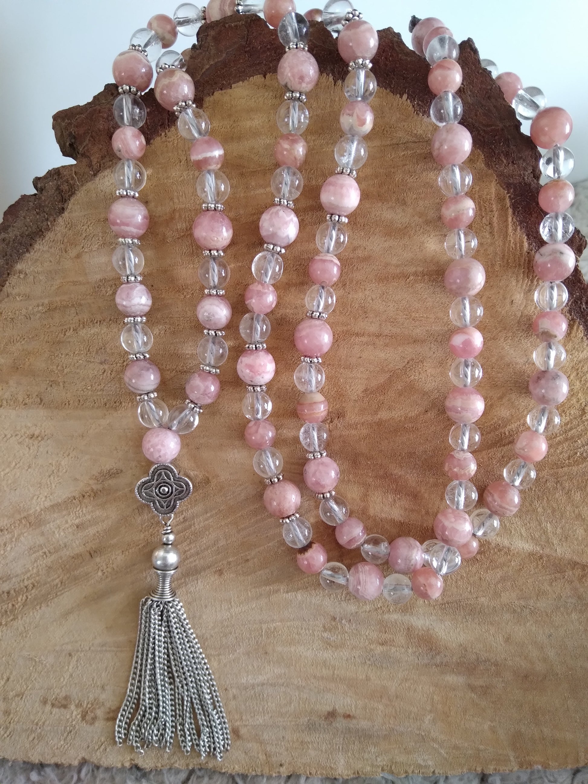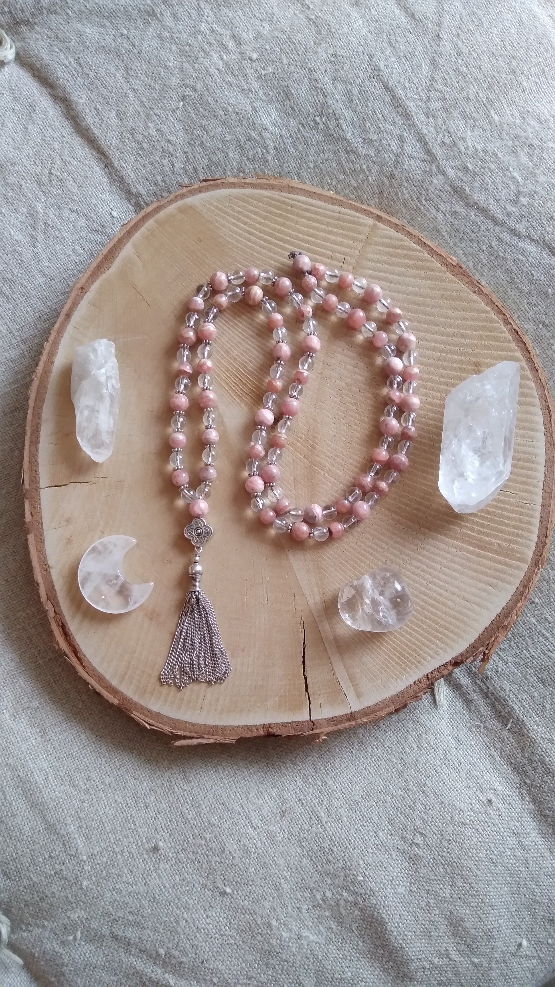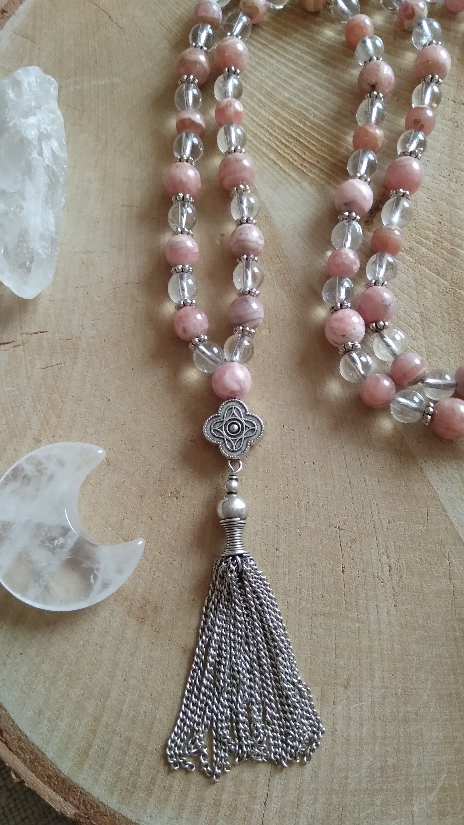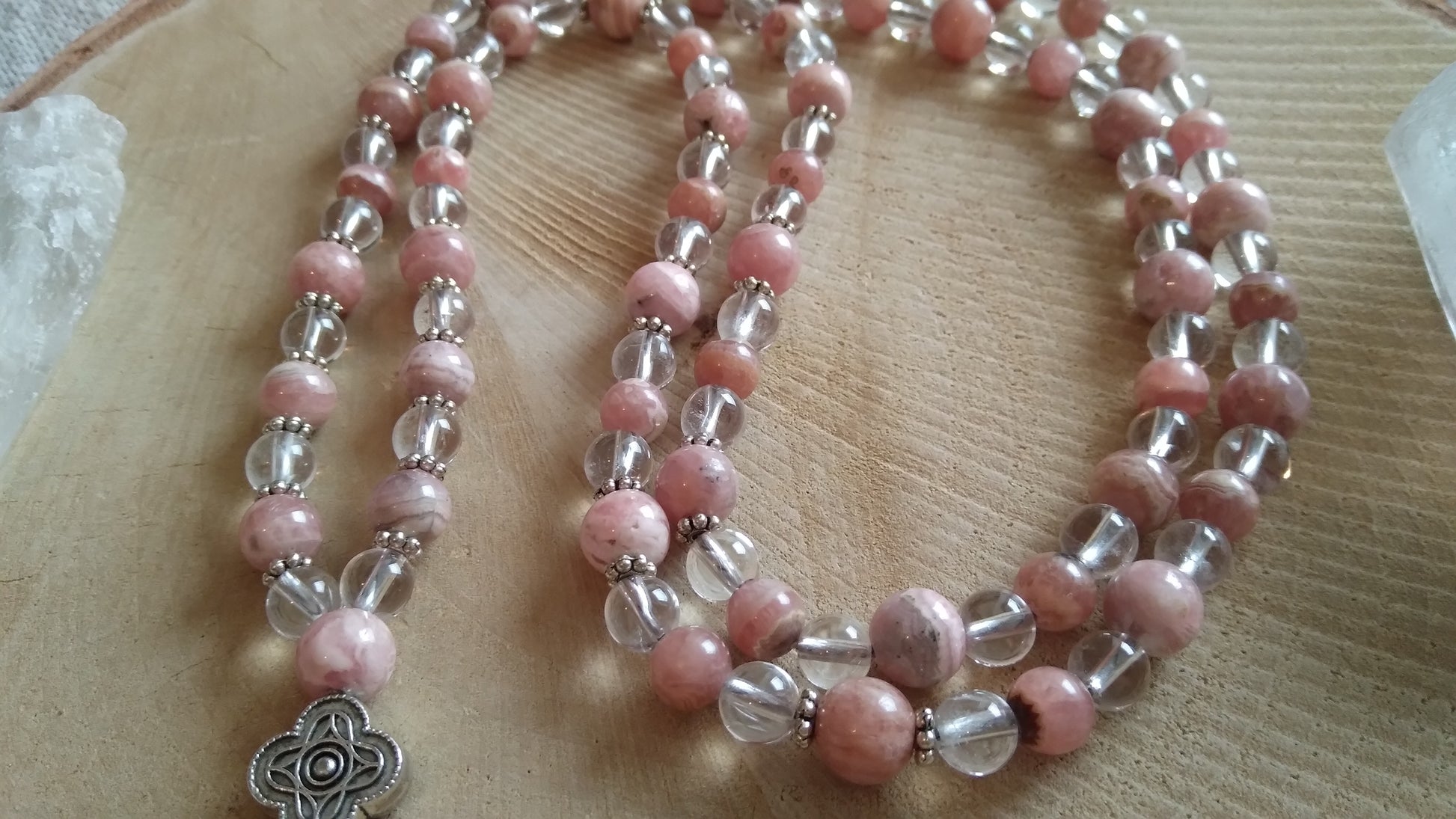 Découvre ici les malas en rhodochrosite et les malas en cristal de roche