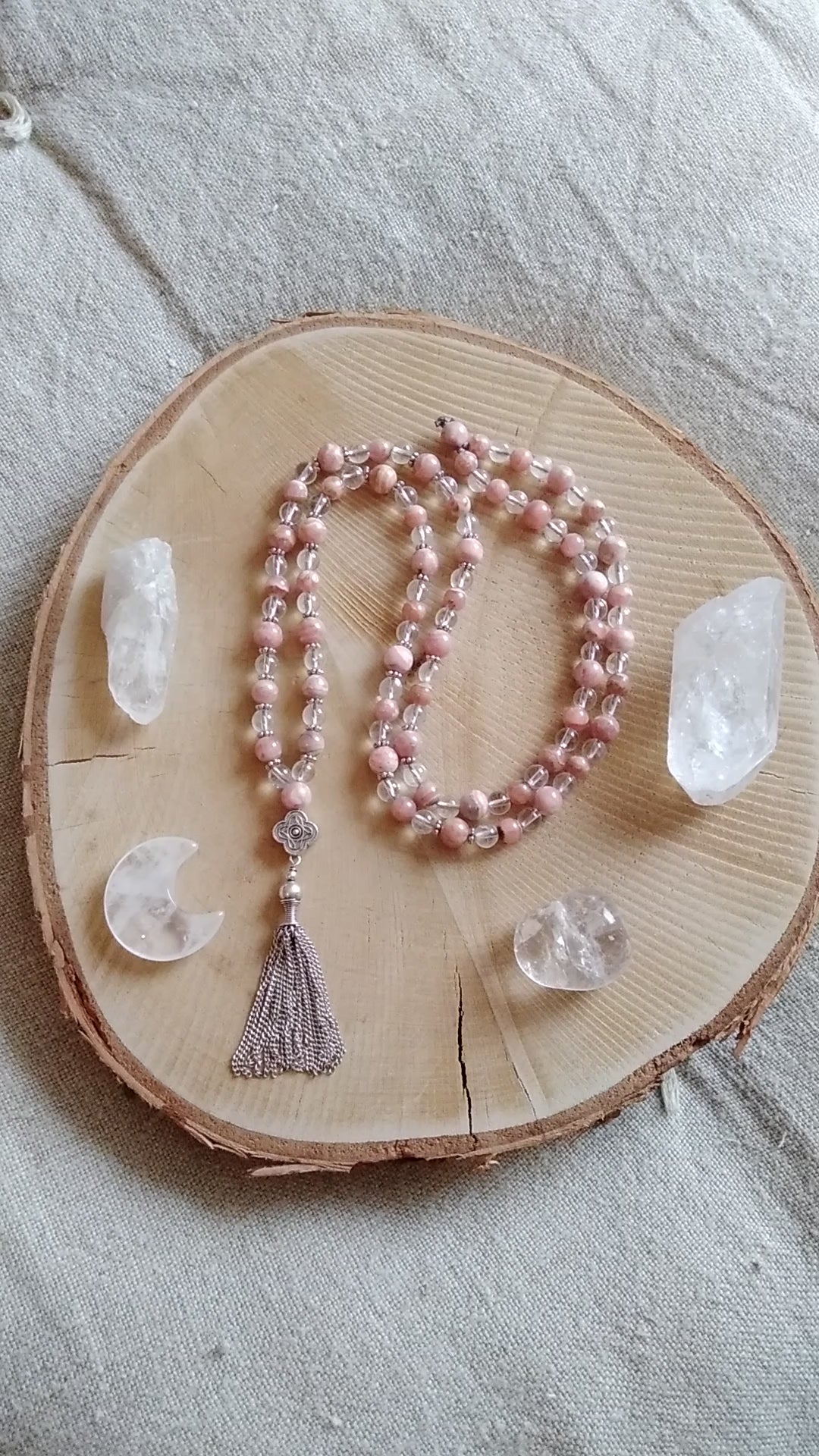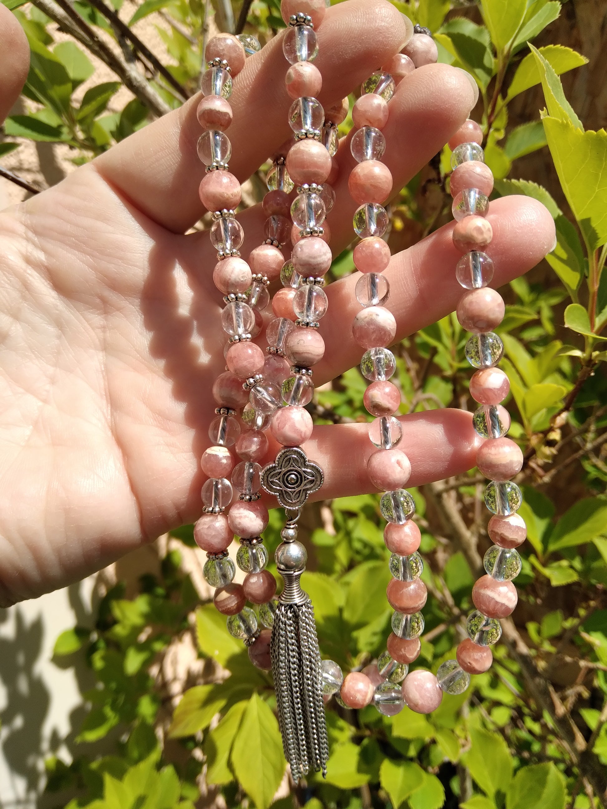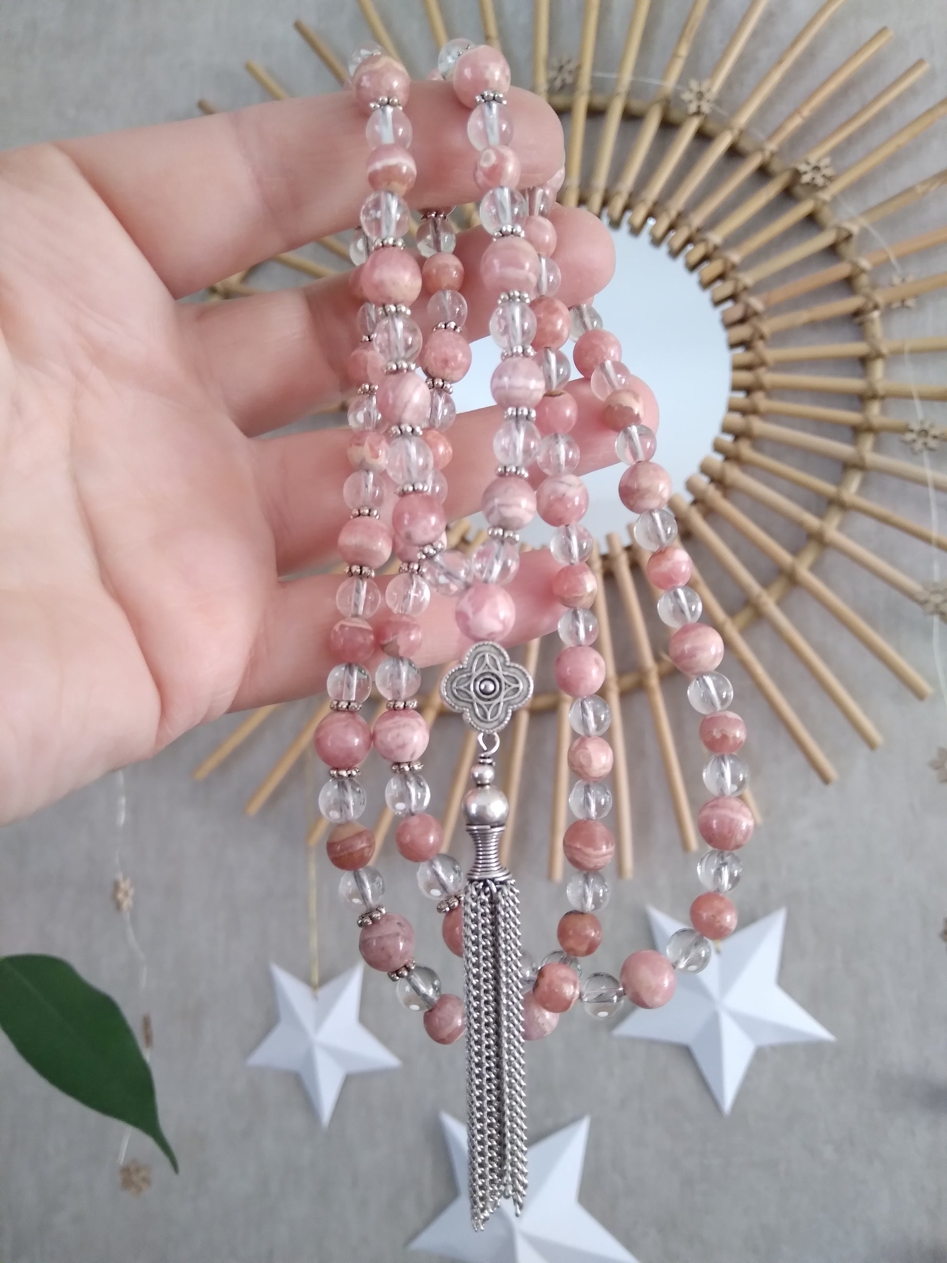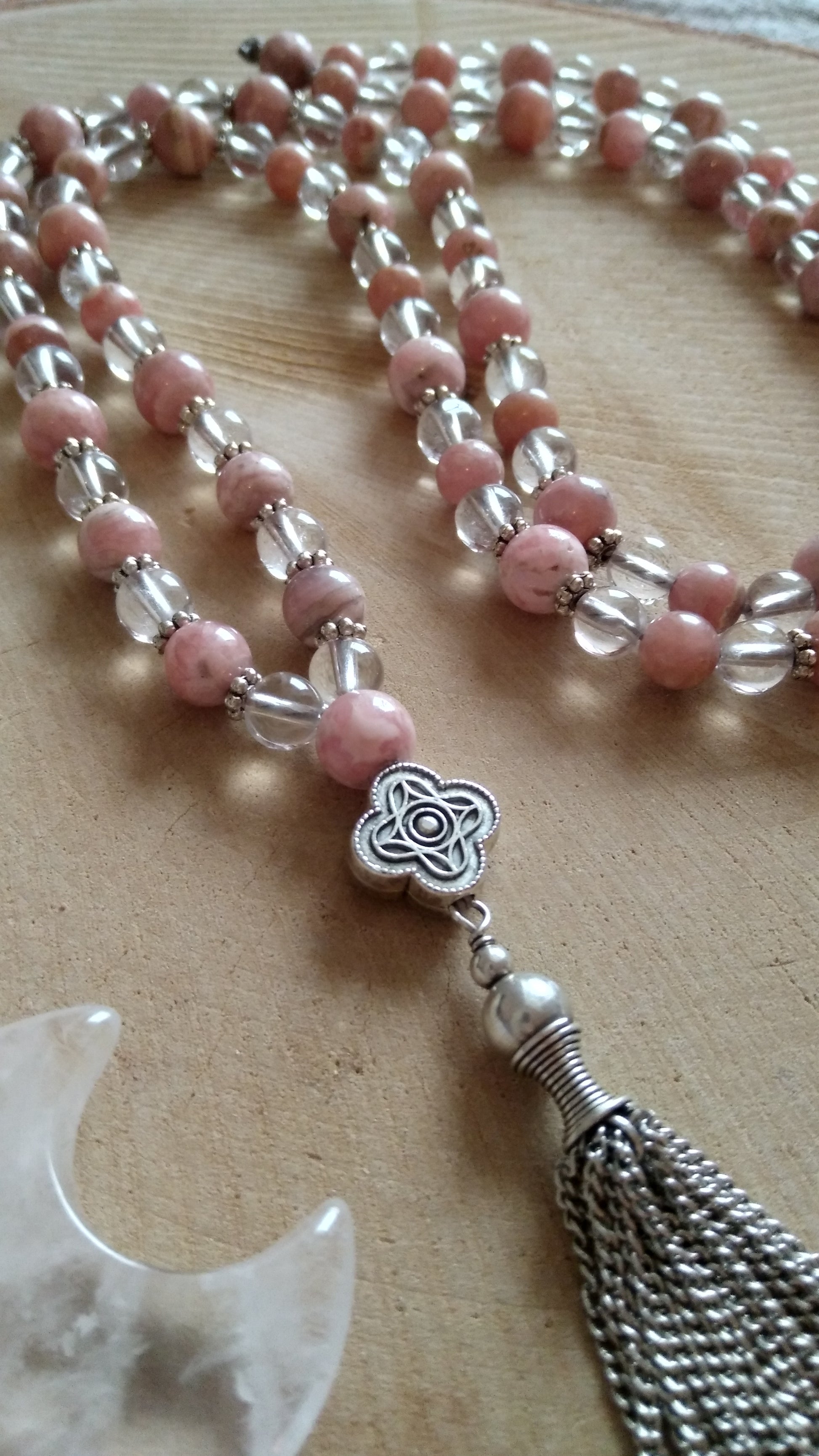Découvre ici les malas en rhodochrosite et les malas en cristal de roche