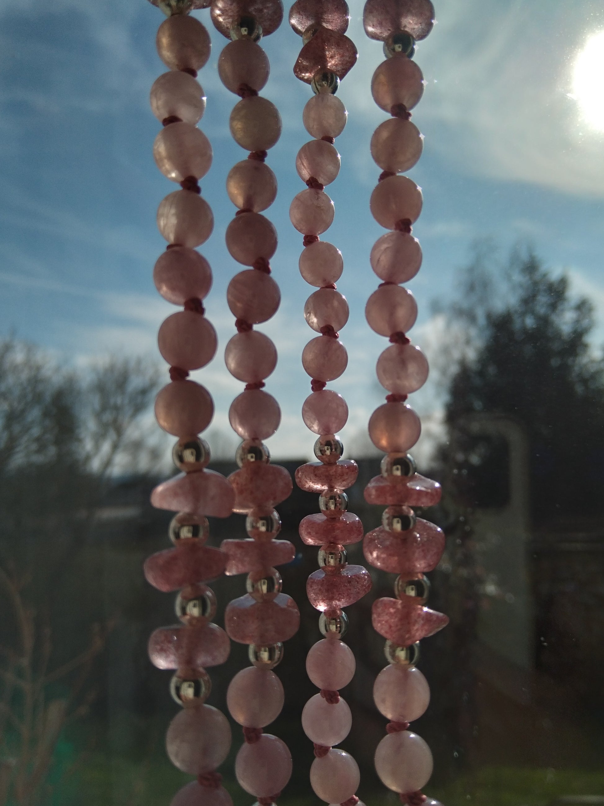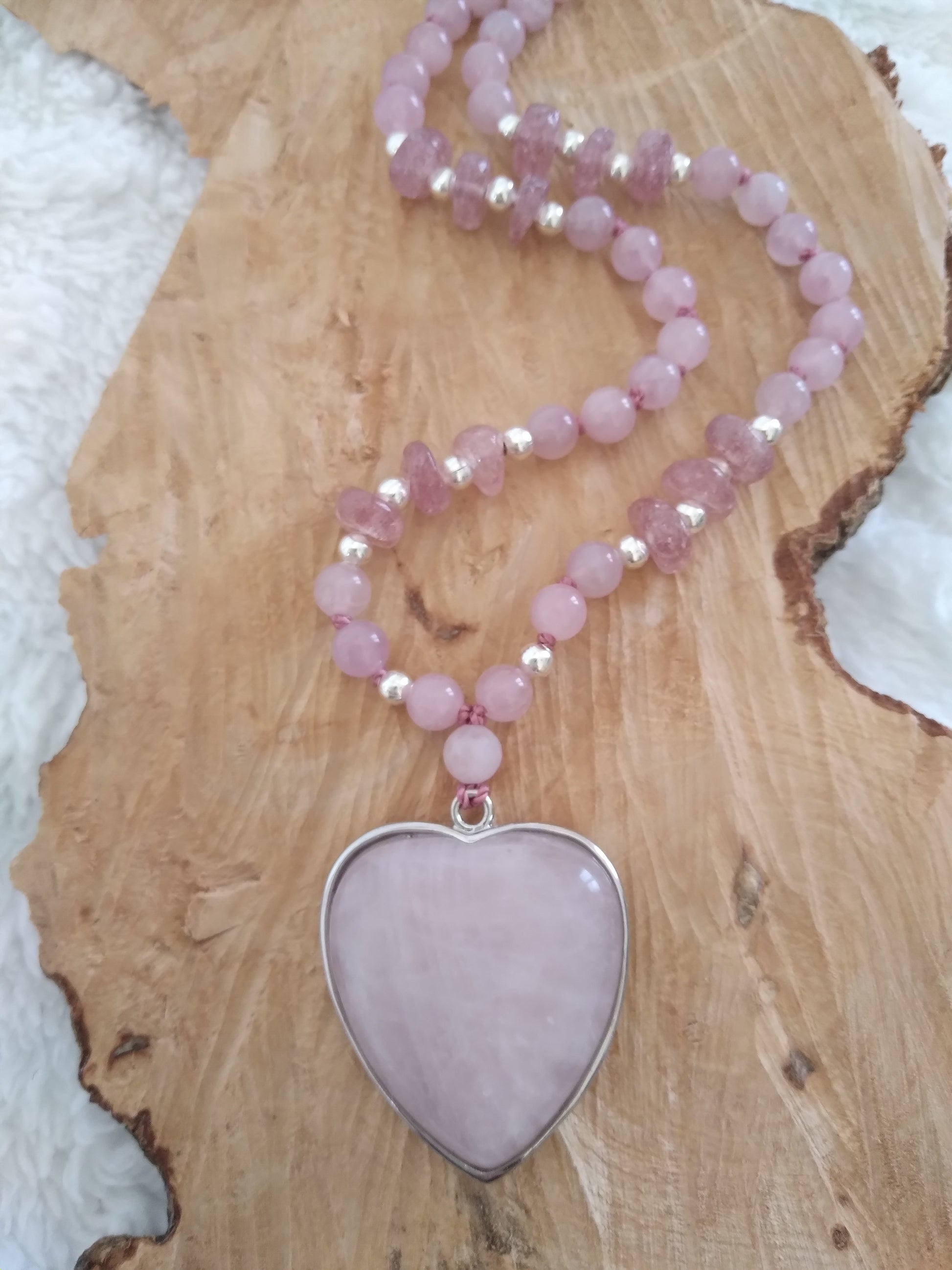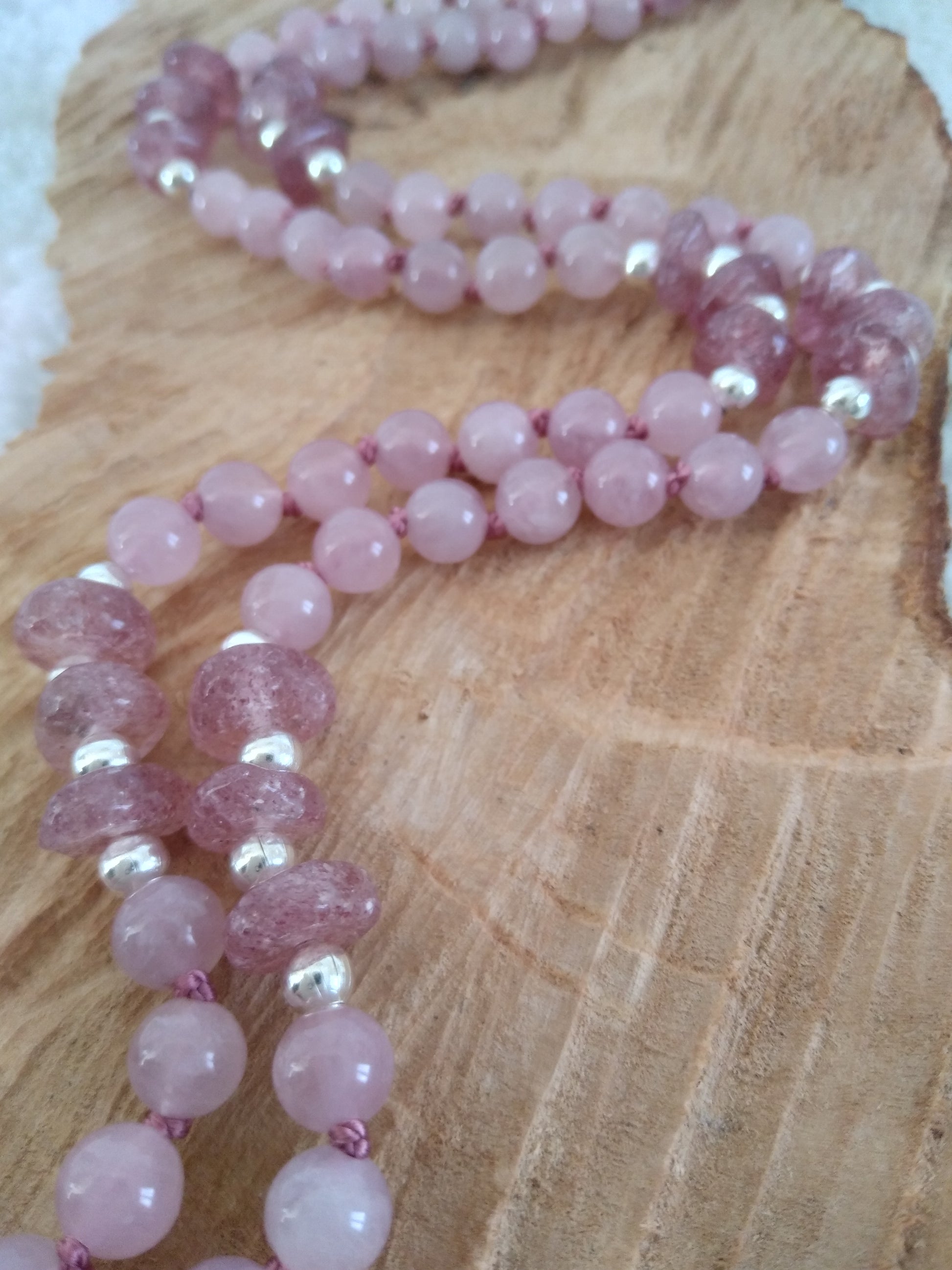 Mala en quartz rose et quartz fraise "Je me chéris"