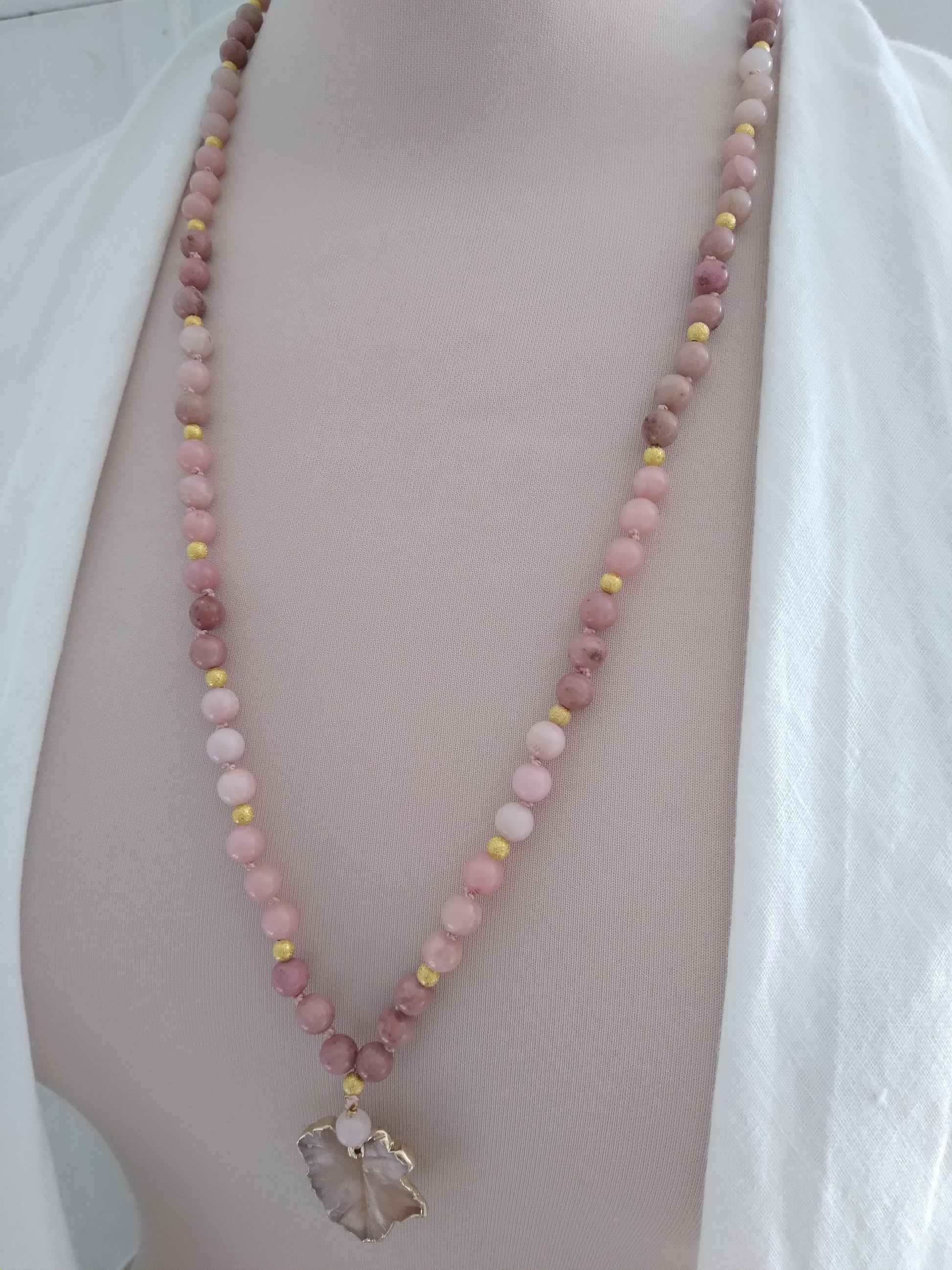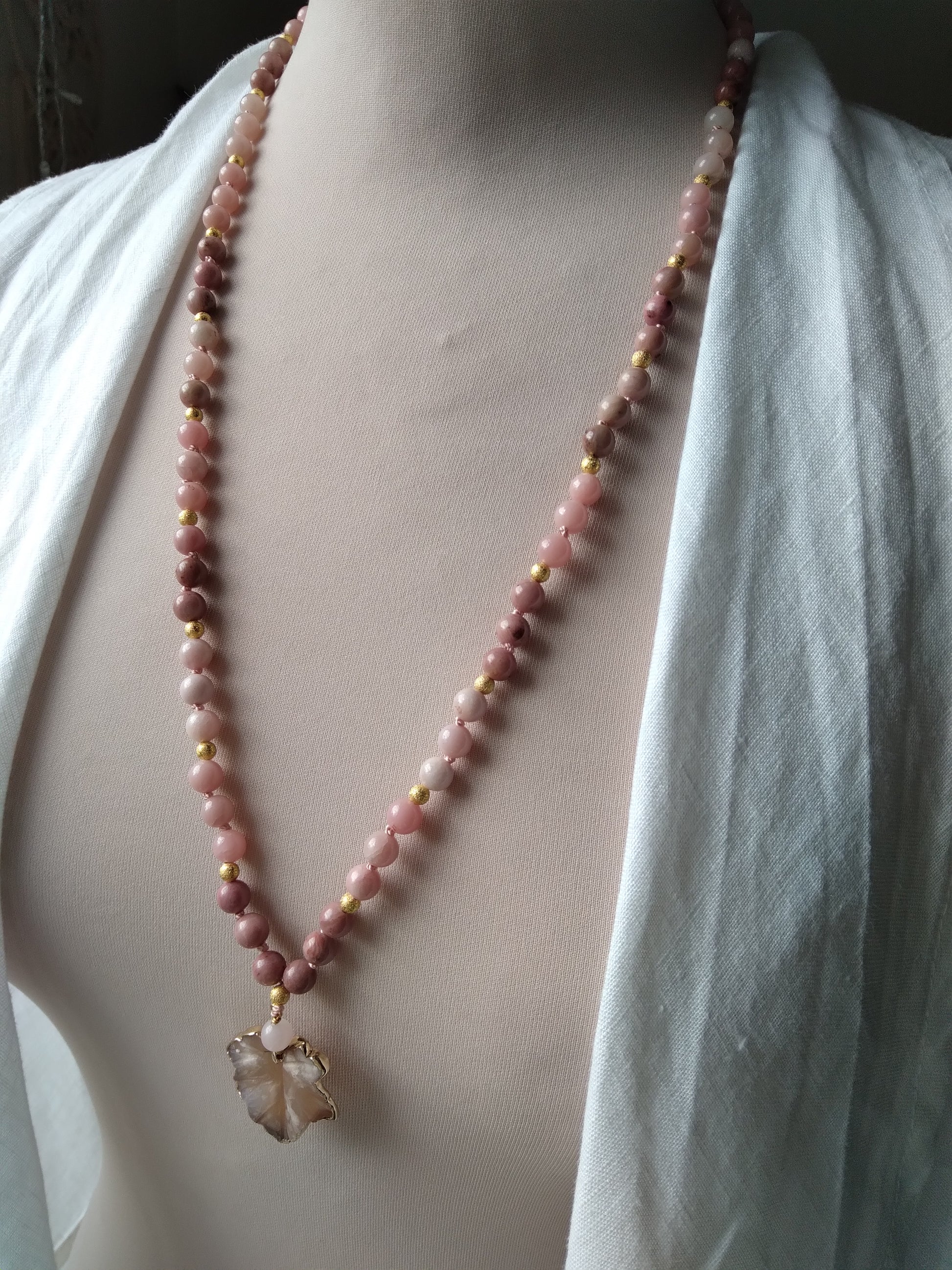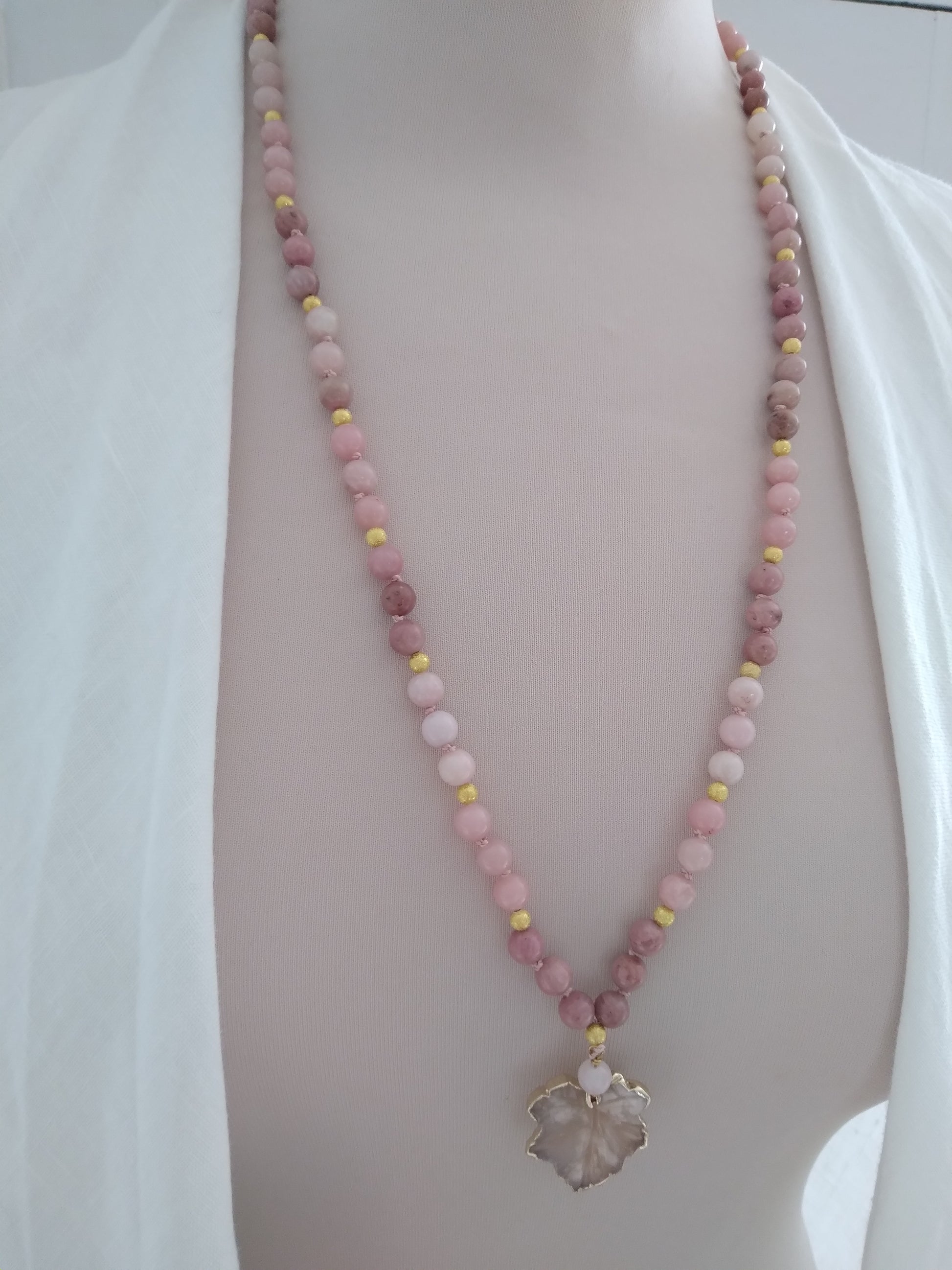 Mala "Je me choisis" en opale rose, rhodonite et fleur de cerisier