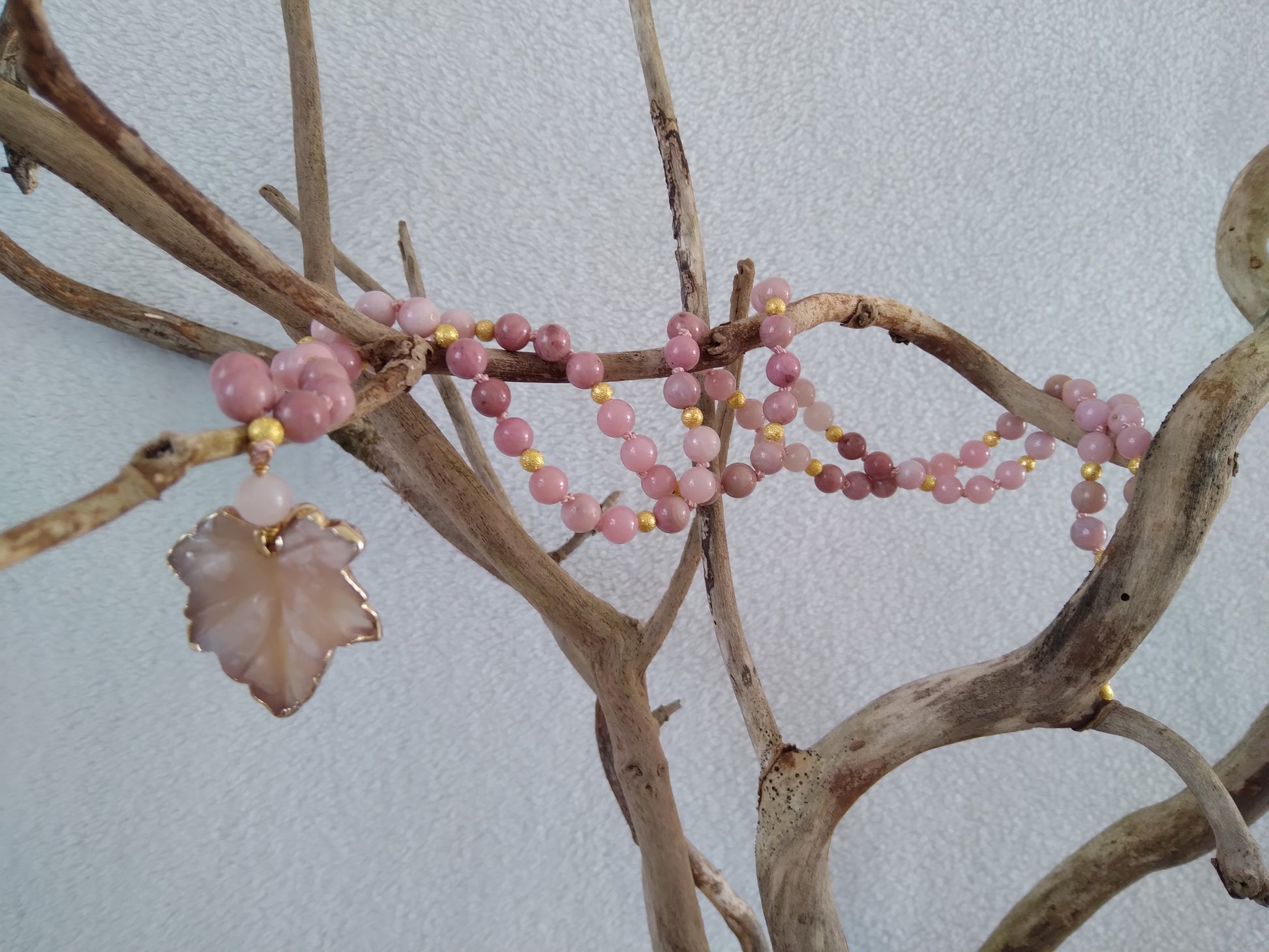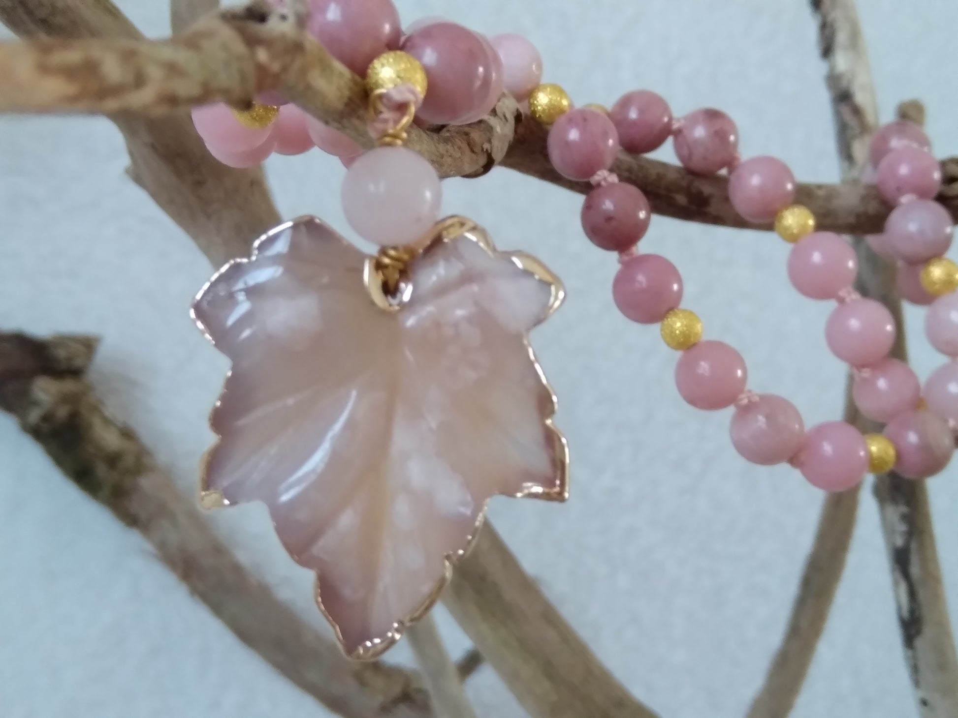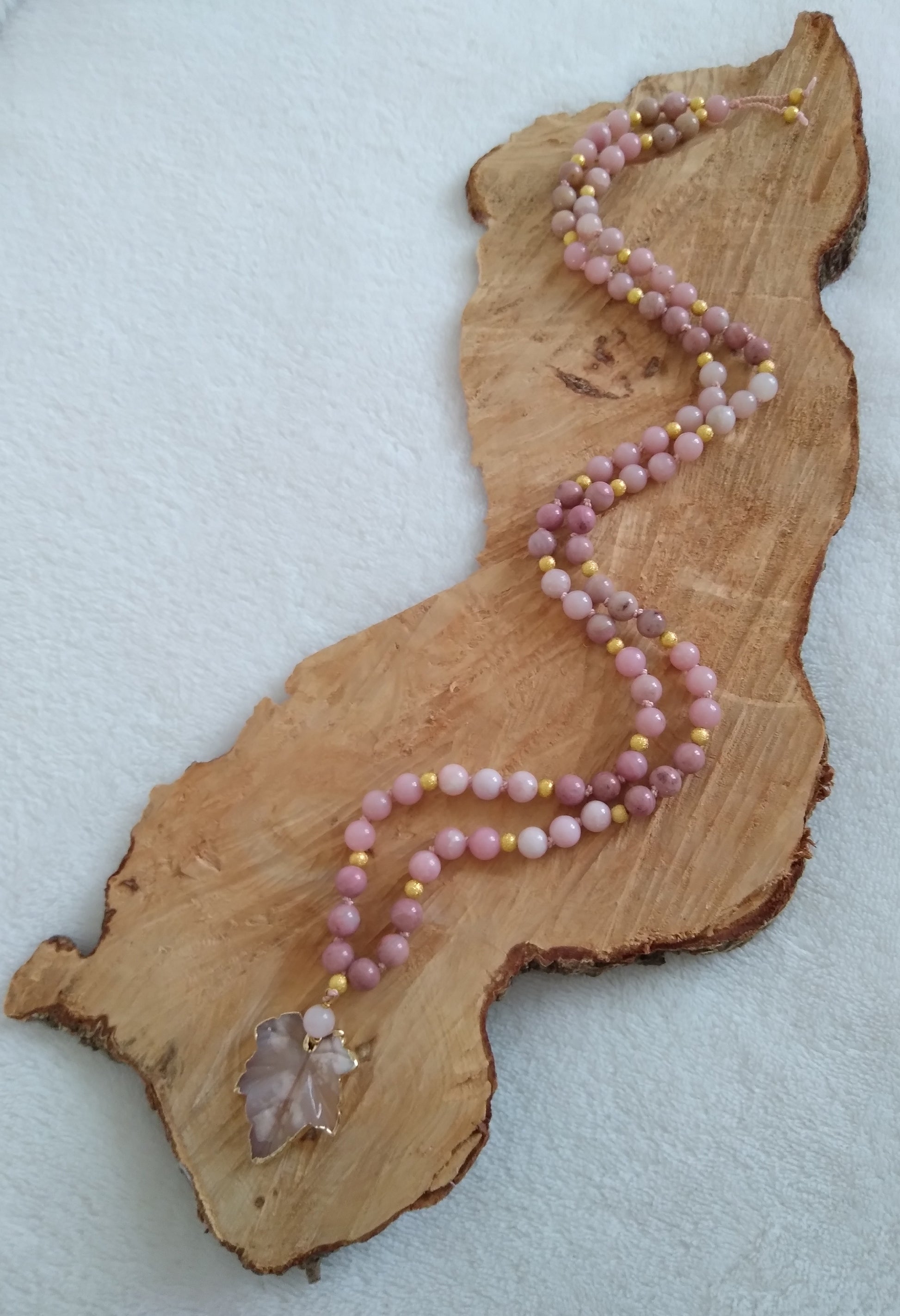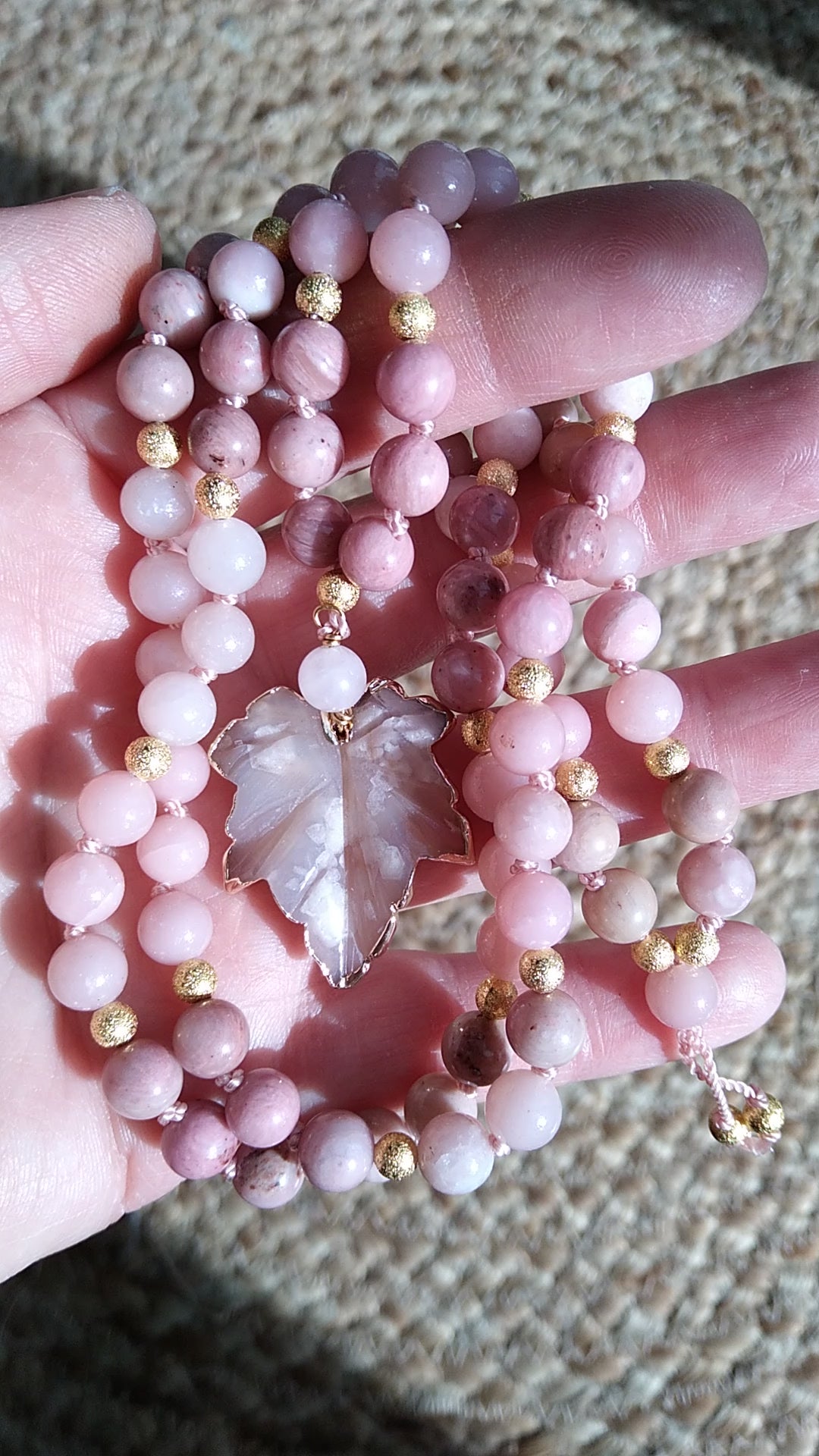 Mala "Je me choisis" en opale rose, rhodonite et fleur de cerisier