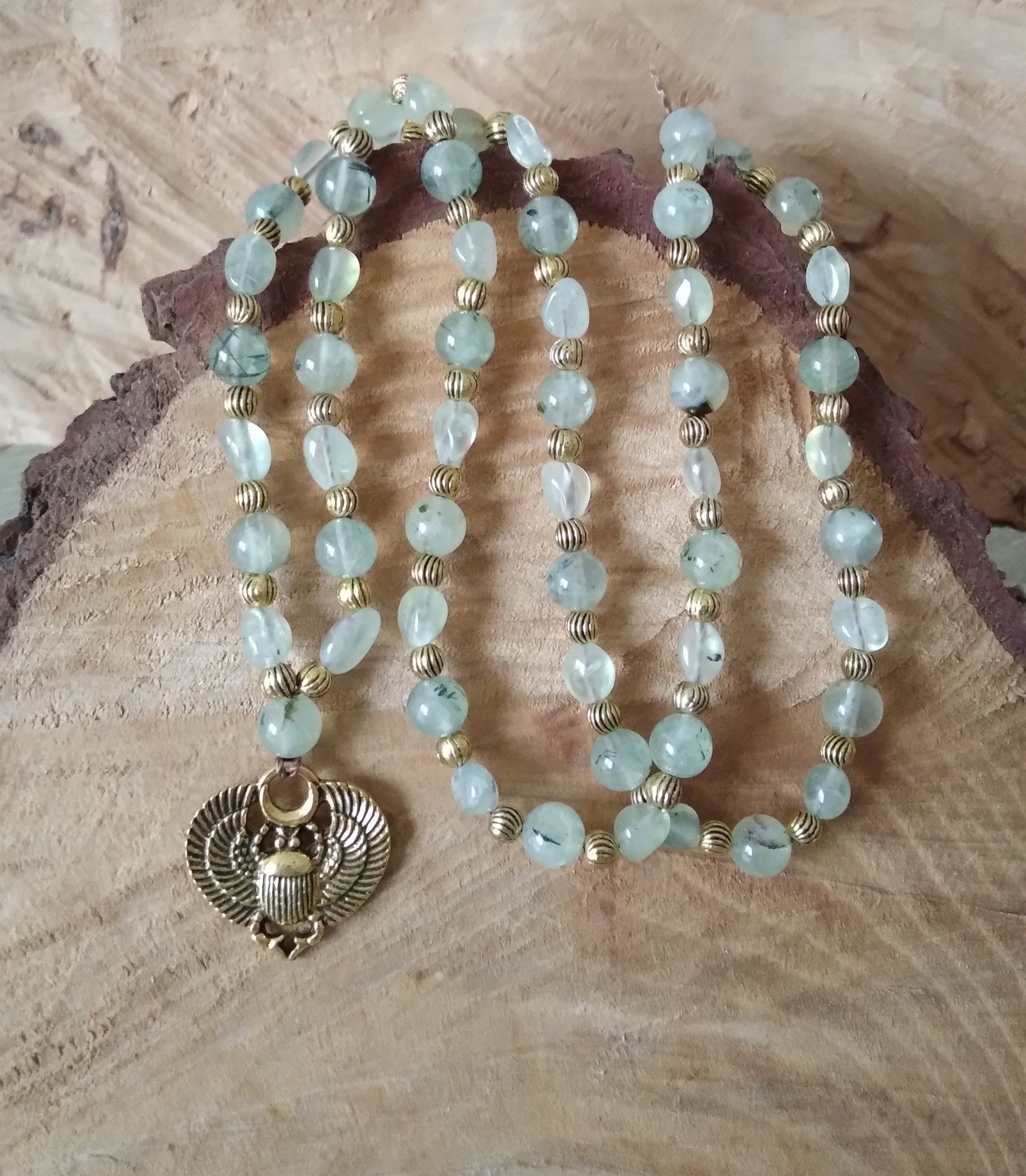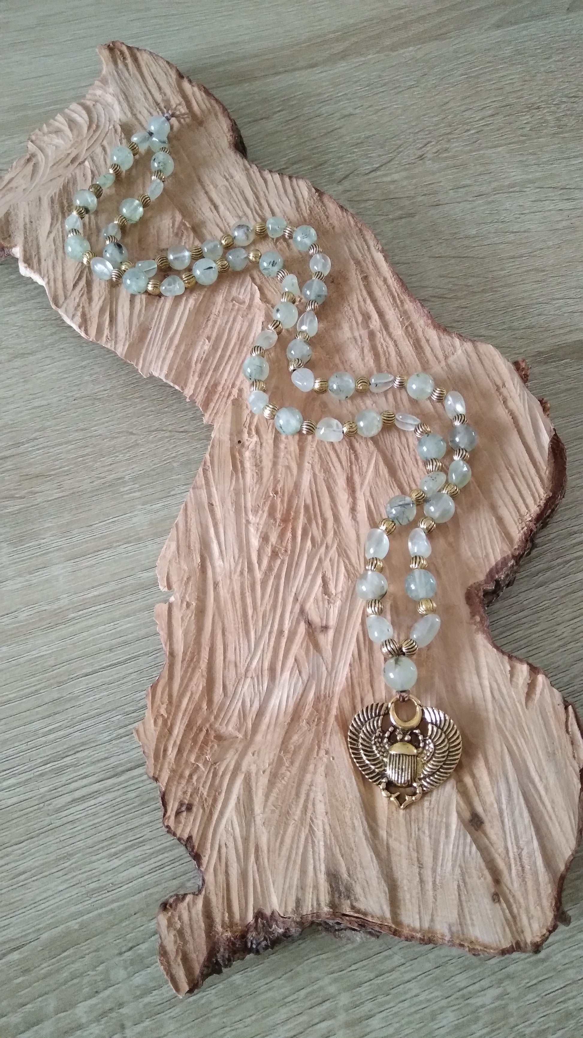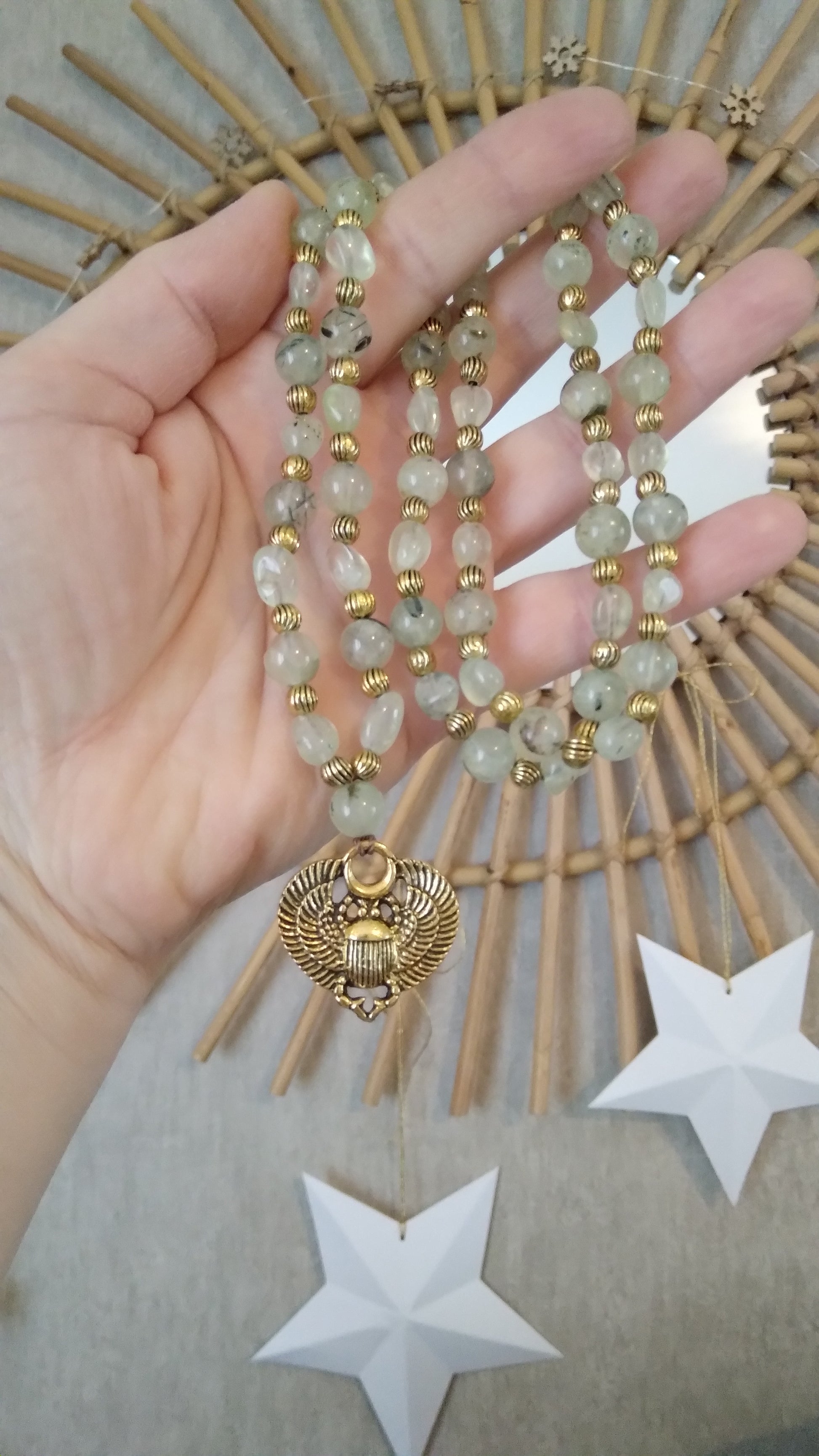 Tous les malas auxquels je donne vie comportent des pierres naturelles rigoureusement sélectionnées. Si tu en as envie, tu peux faire un tour du côté des malas en préhnite 💚 et des malas scarabée🪲